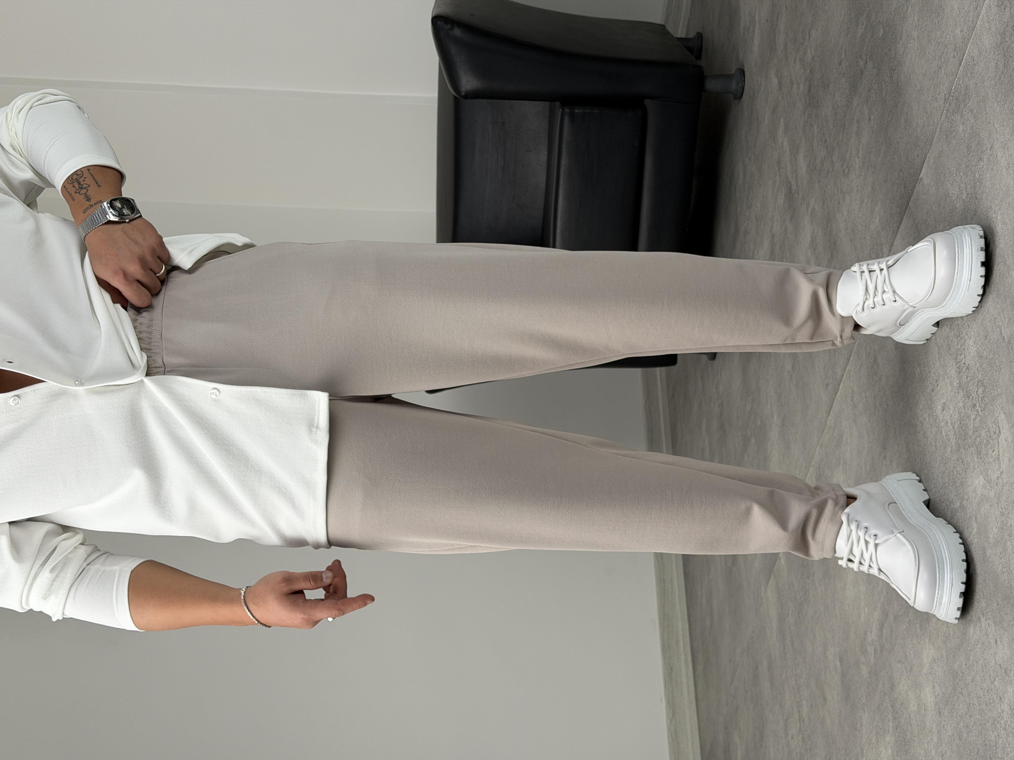BELİ TAM LASTİK KREP BOYFRİEND PANTOLON GRİ