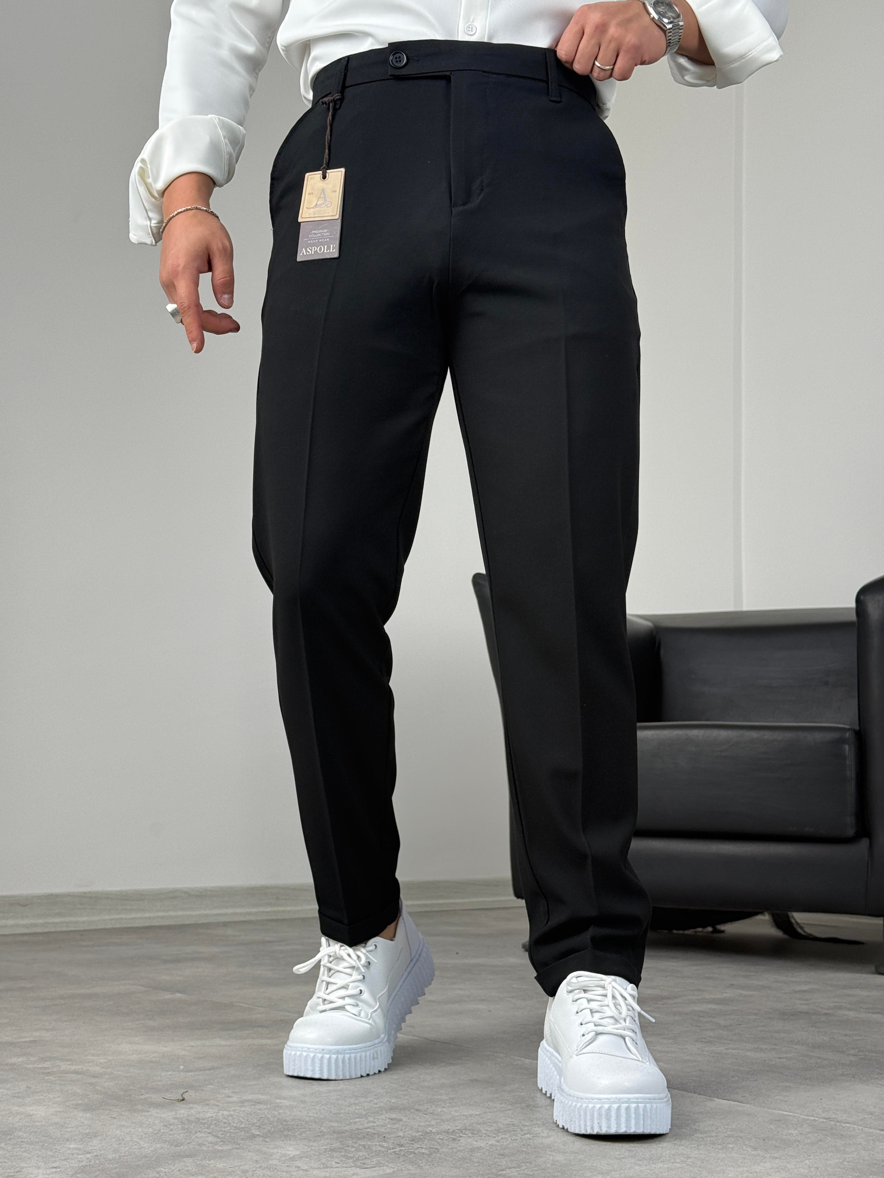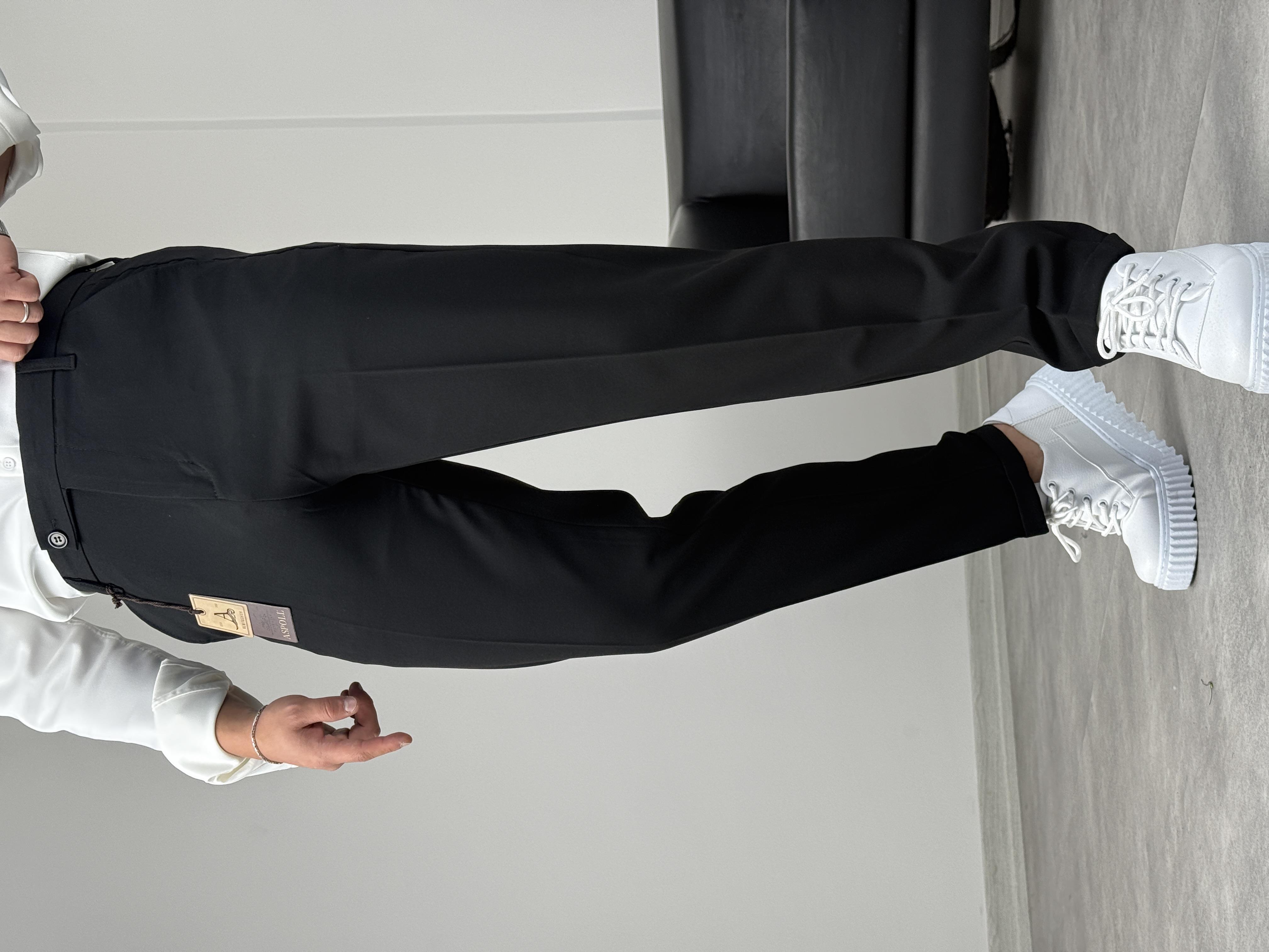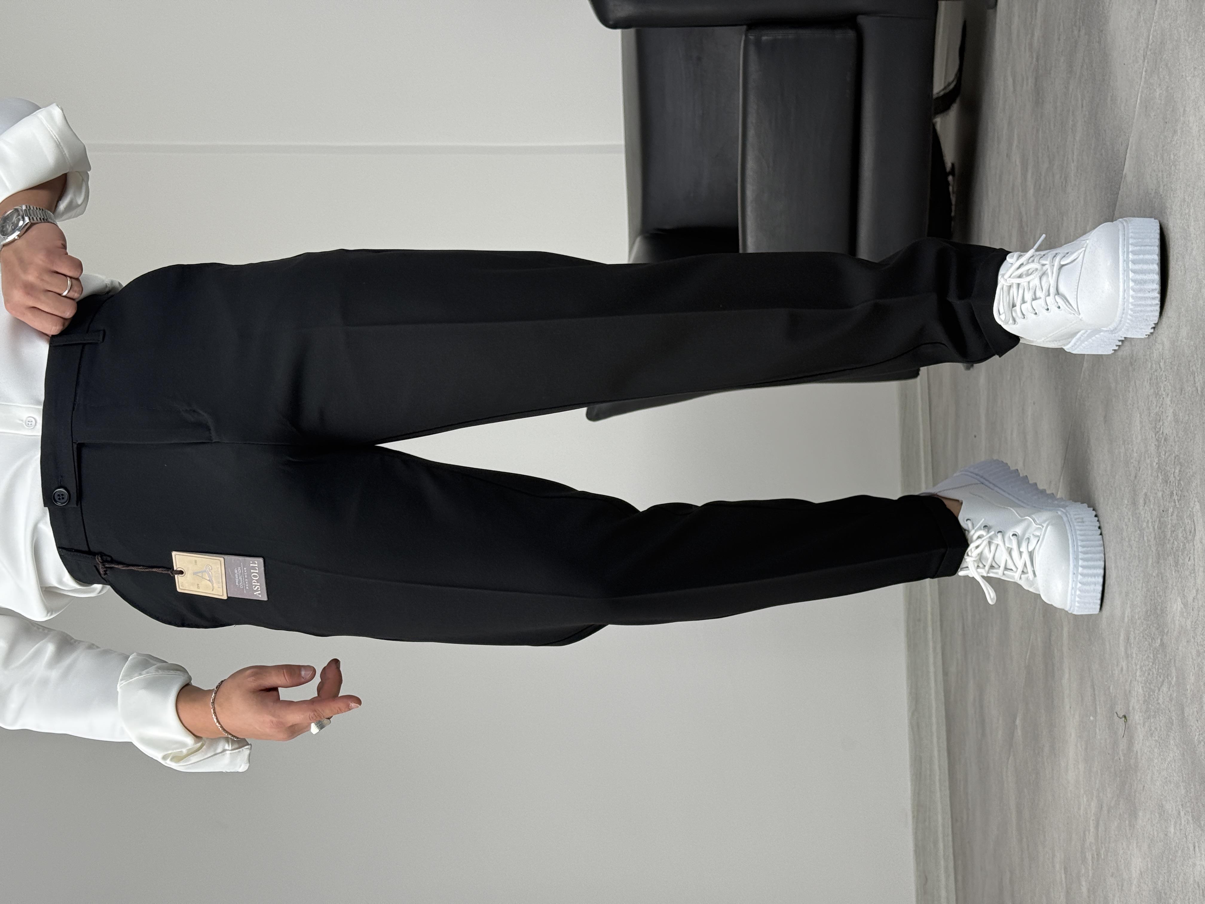 BOYFİREND KALIP DUBLE PAÇA DİLLİ KUMAŞ PANTOLON SİYAH