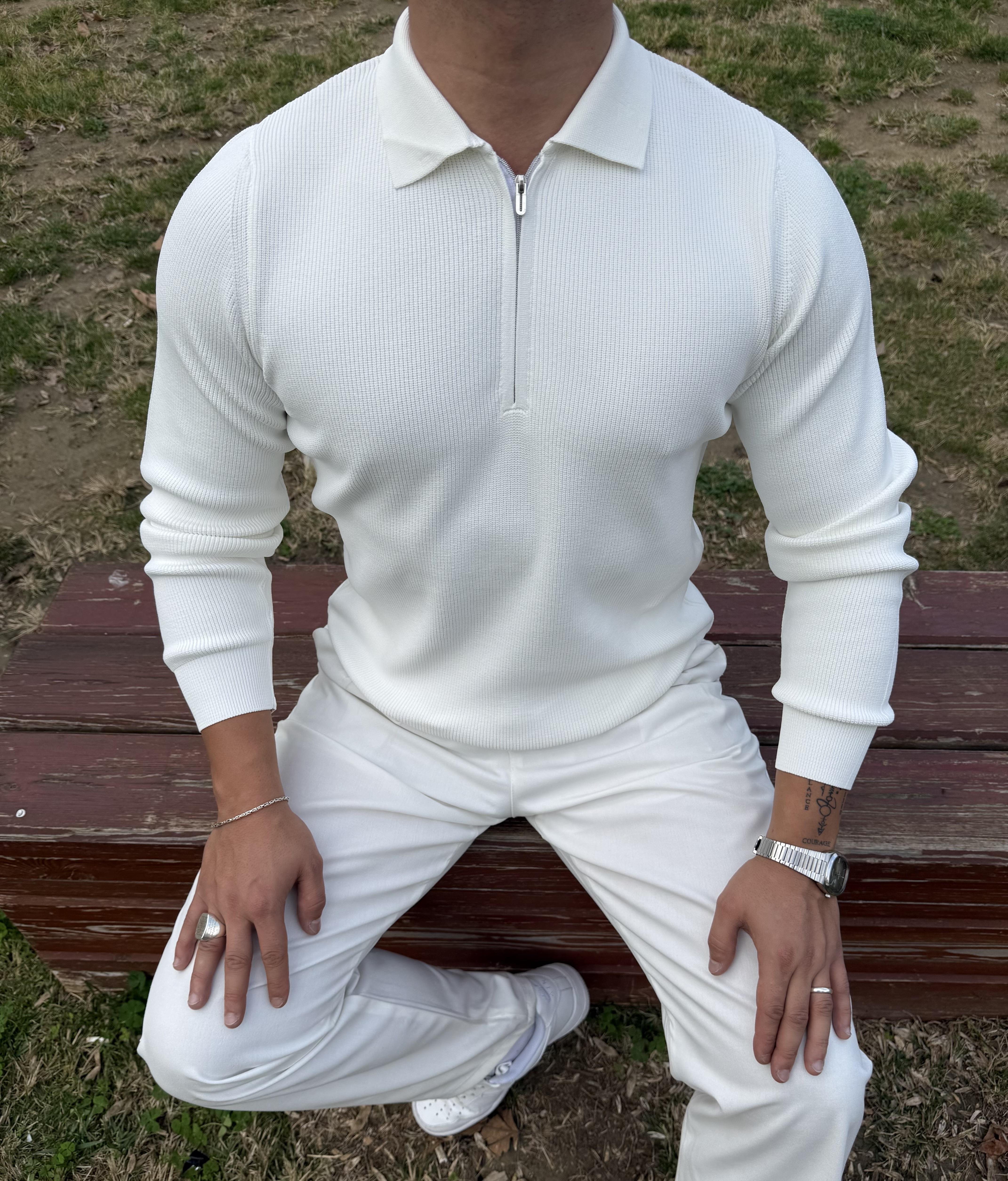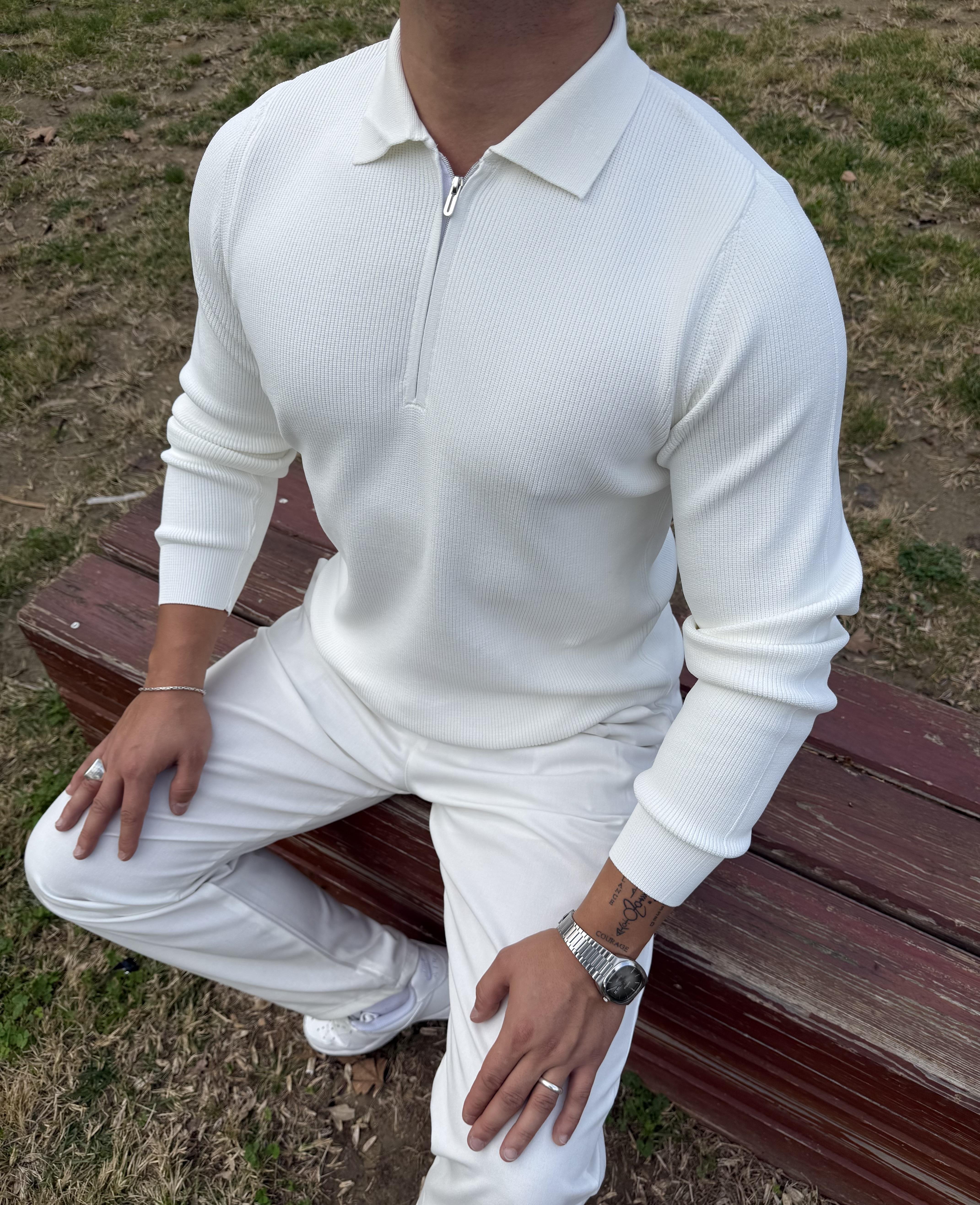 ÇELİK ÖRME TRİKO POLO YAKA YARIM FERMUAR BEYAZ
