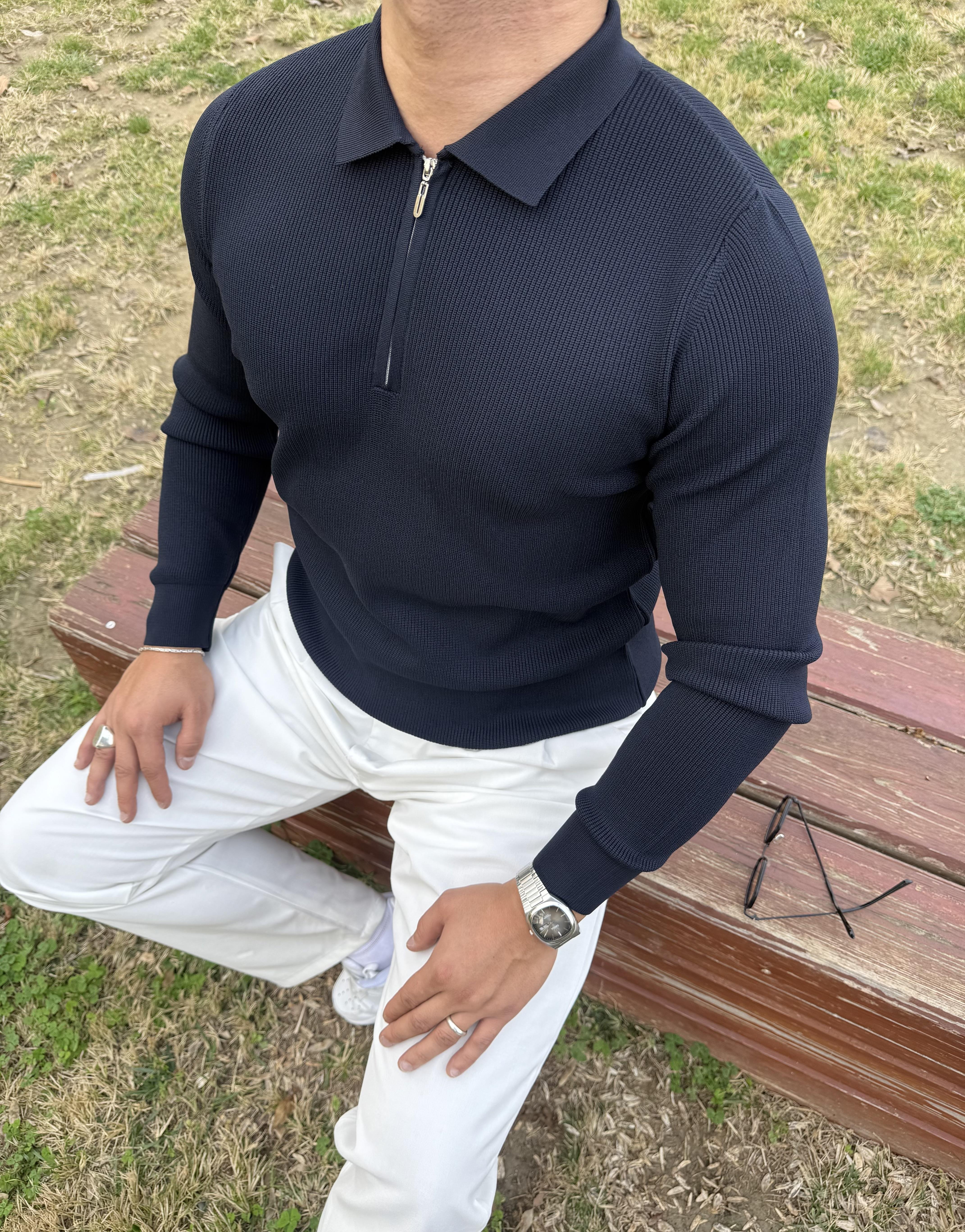 ÇELİK ÖRME TRİKO POLO YAKA YARIM FERMUAR LACİVERT