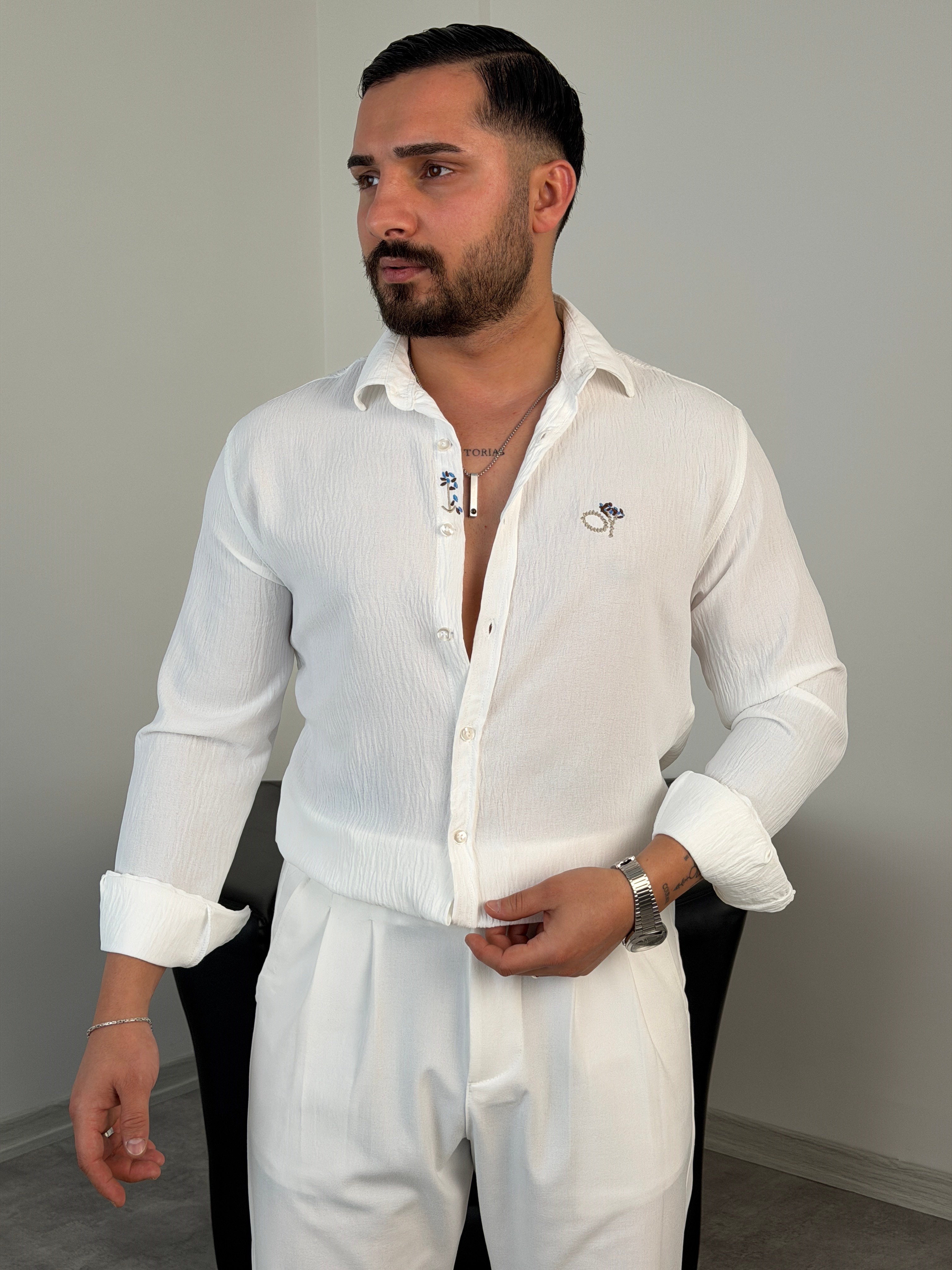 ÇİÇEK NAKIŞLI UZUNKOL GÖMLEK BEYAZ