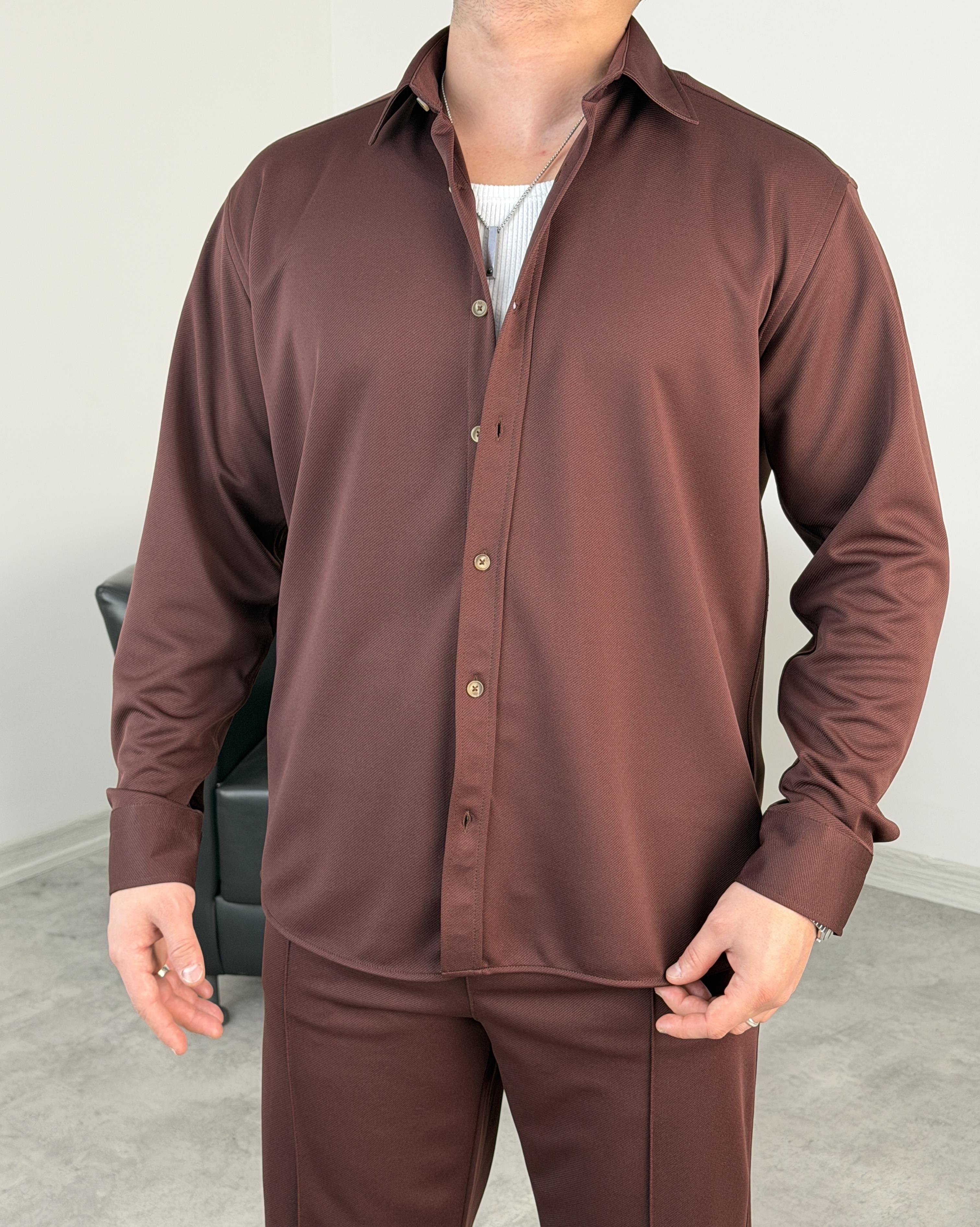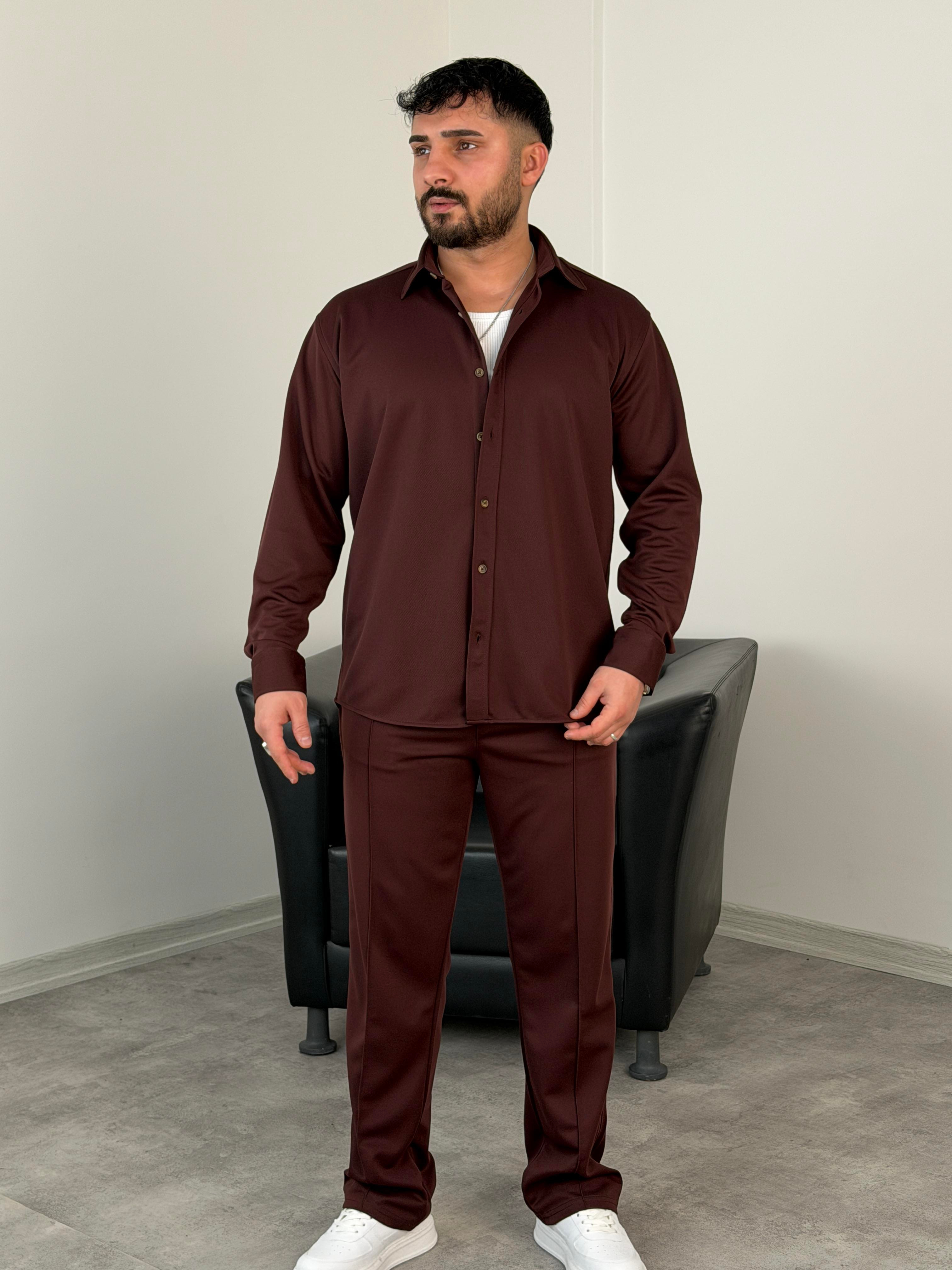 ÇIMA DETALI PREMİUM ÖRME TAKIM ACI KAHVE