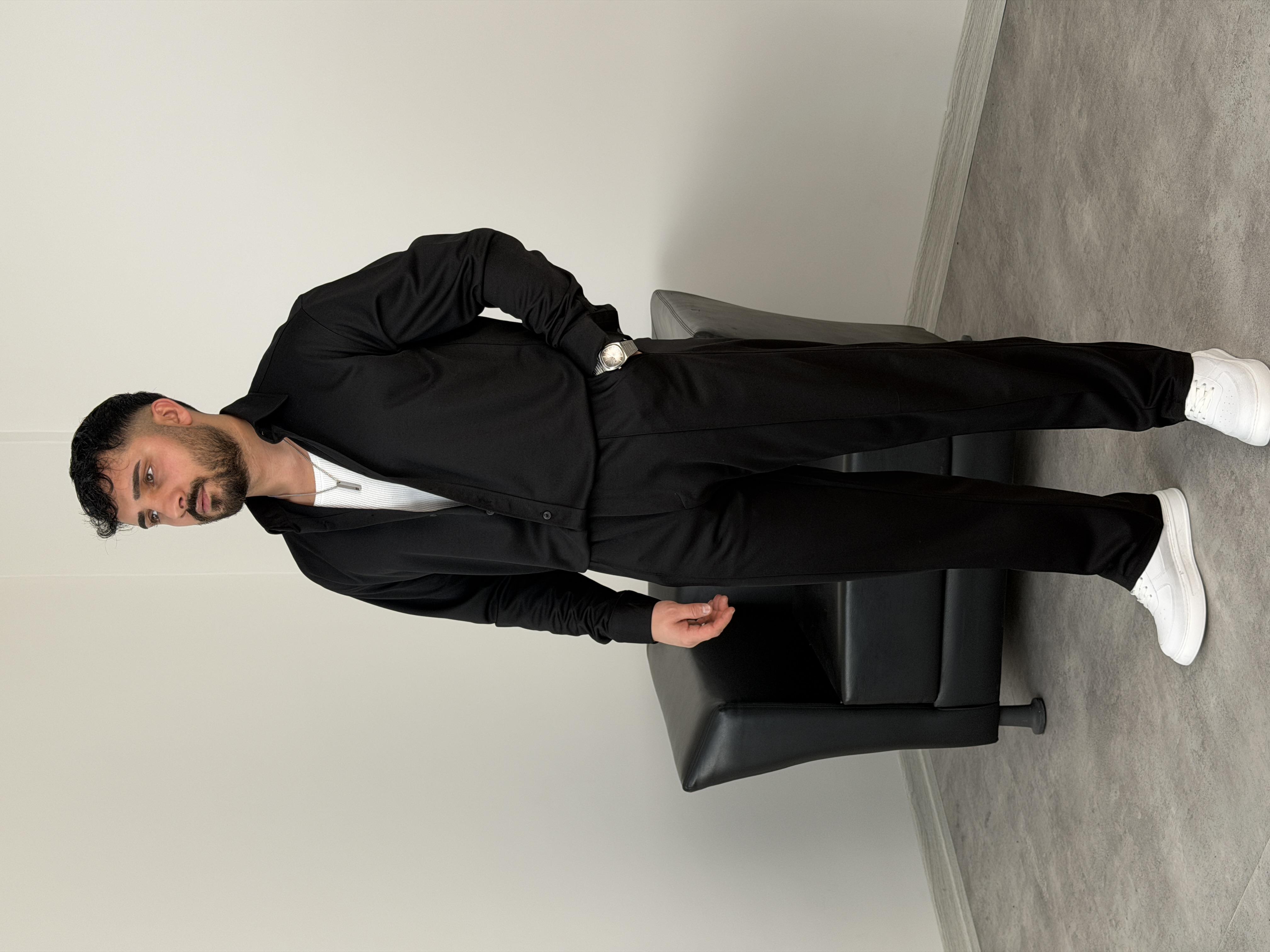 ÇIMA DETALI PREMİUM ÖRME TAKIM SİYAH