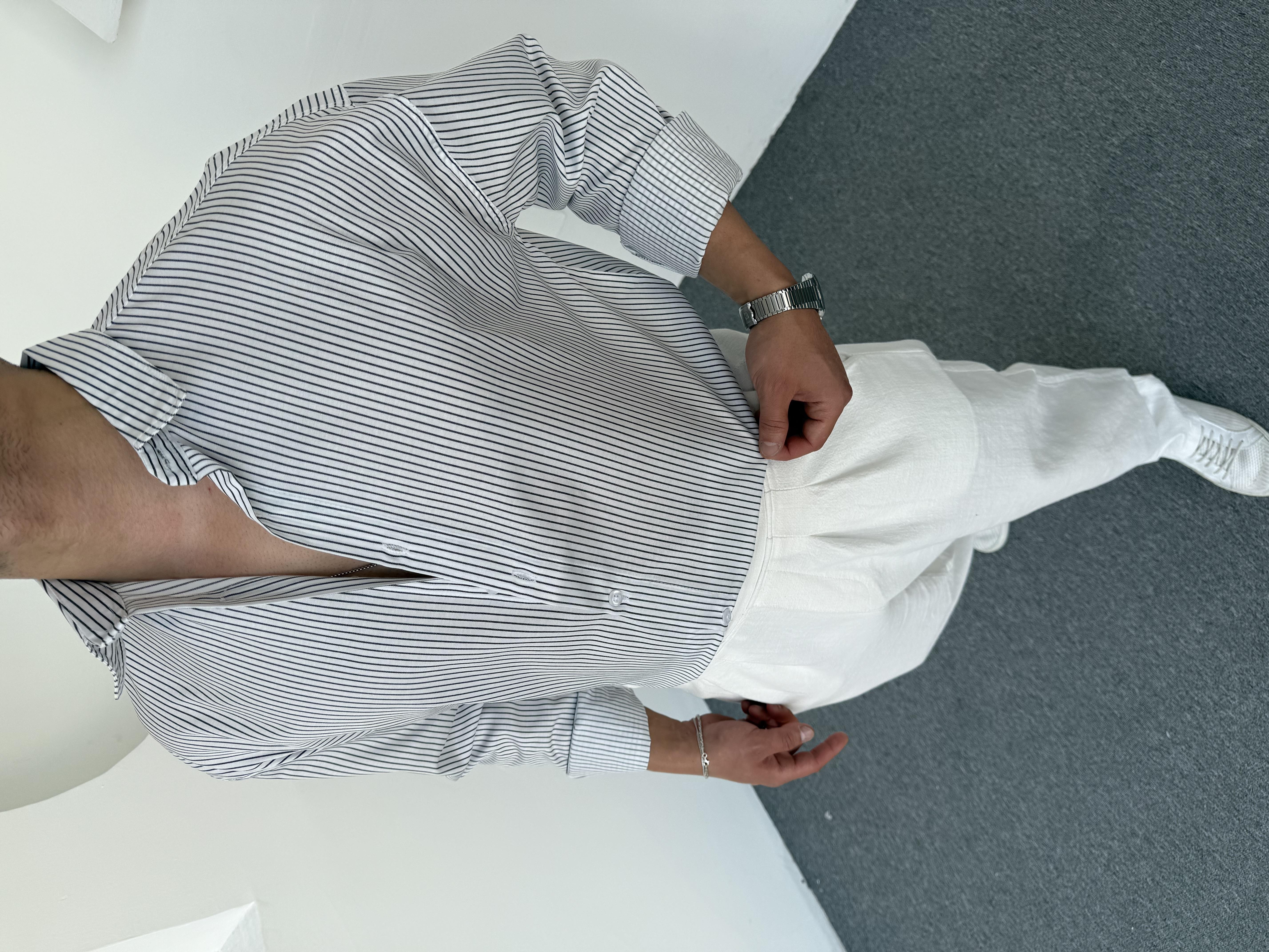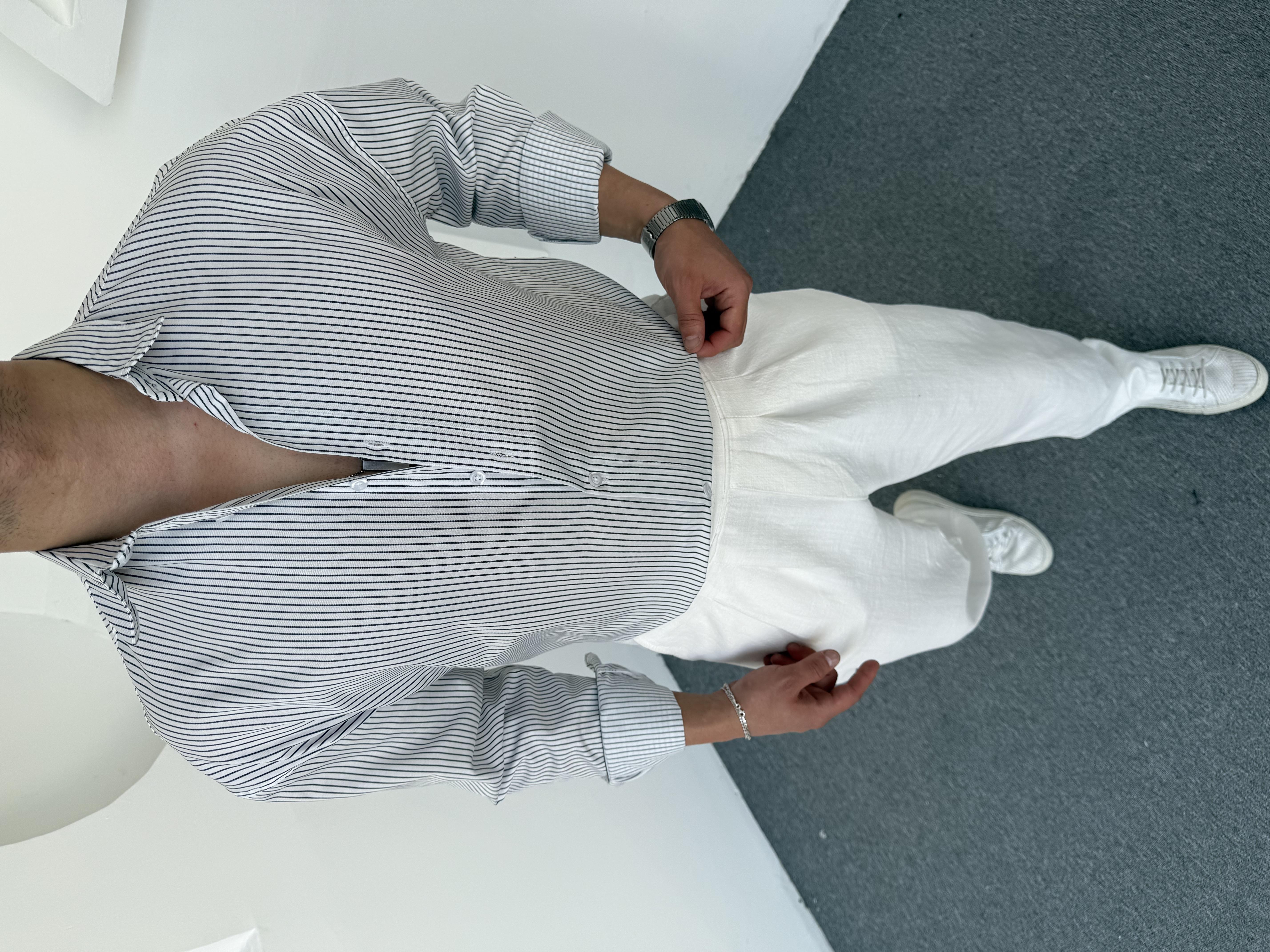 Çizgi Detay Keten Gömlek Beyaz