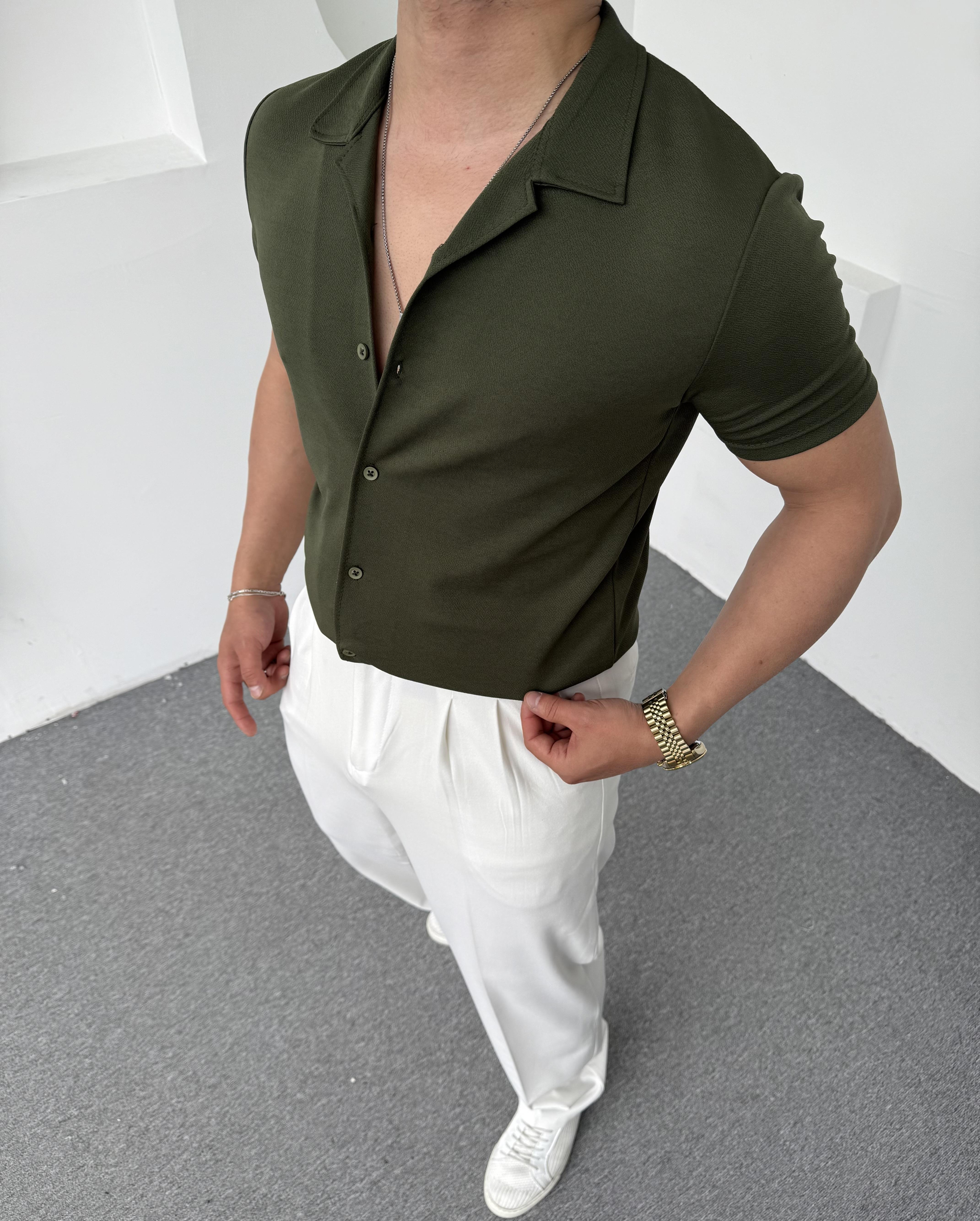 Crap Kumaş Kısakol Gömlek Haki