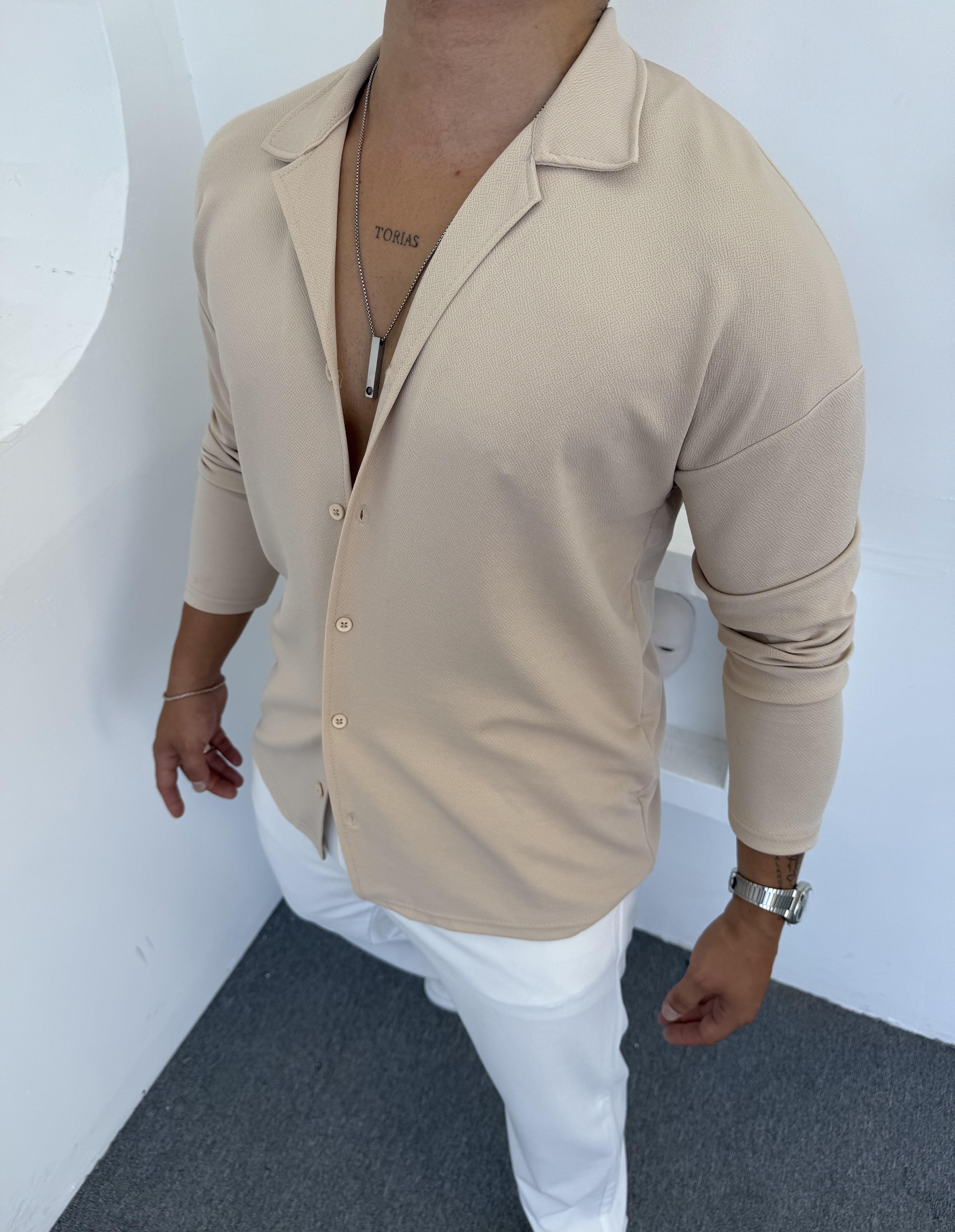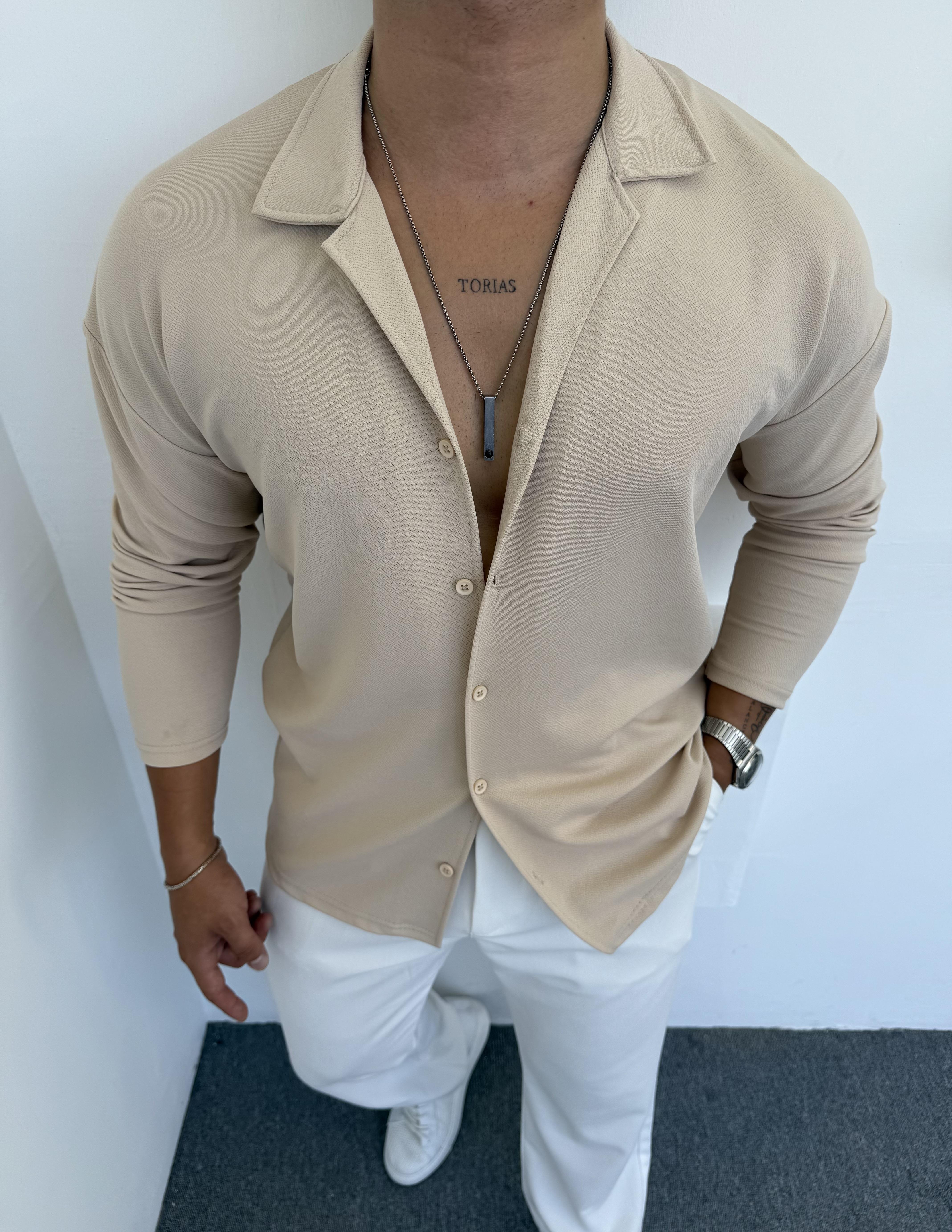 Crap Kumaş Uzun Kol Pamuk Gömlek Krem