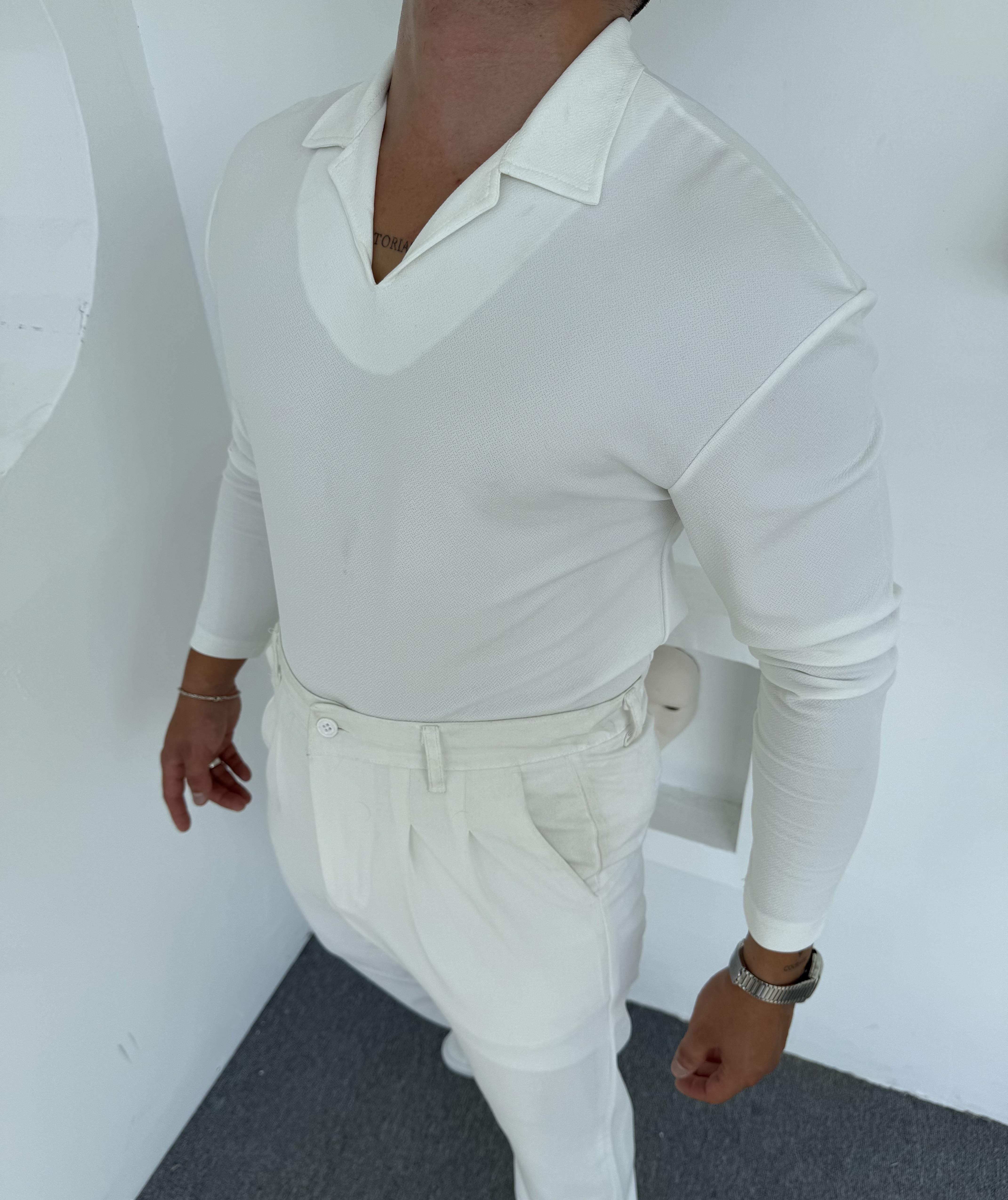 CRAP UZUNKOL HEMŞİRE YAKA SWEATSHİRT BEYAZ
