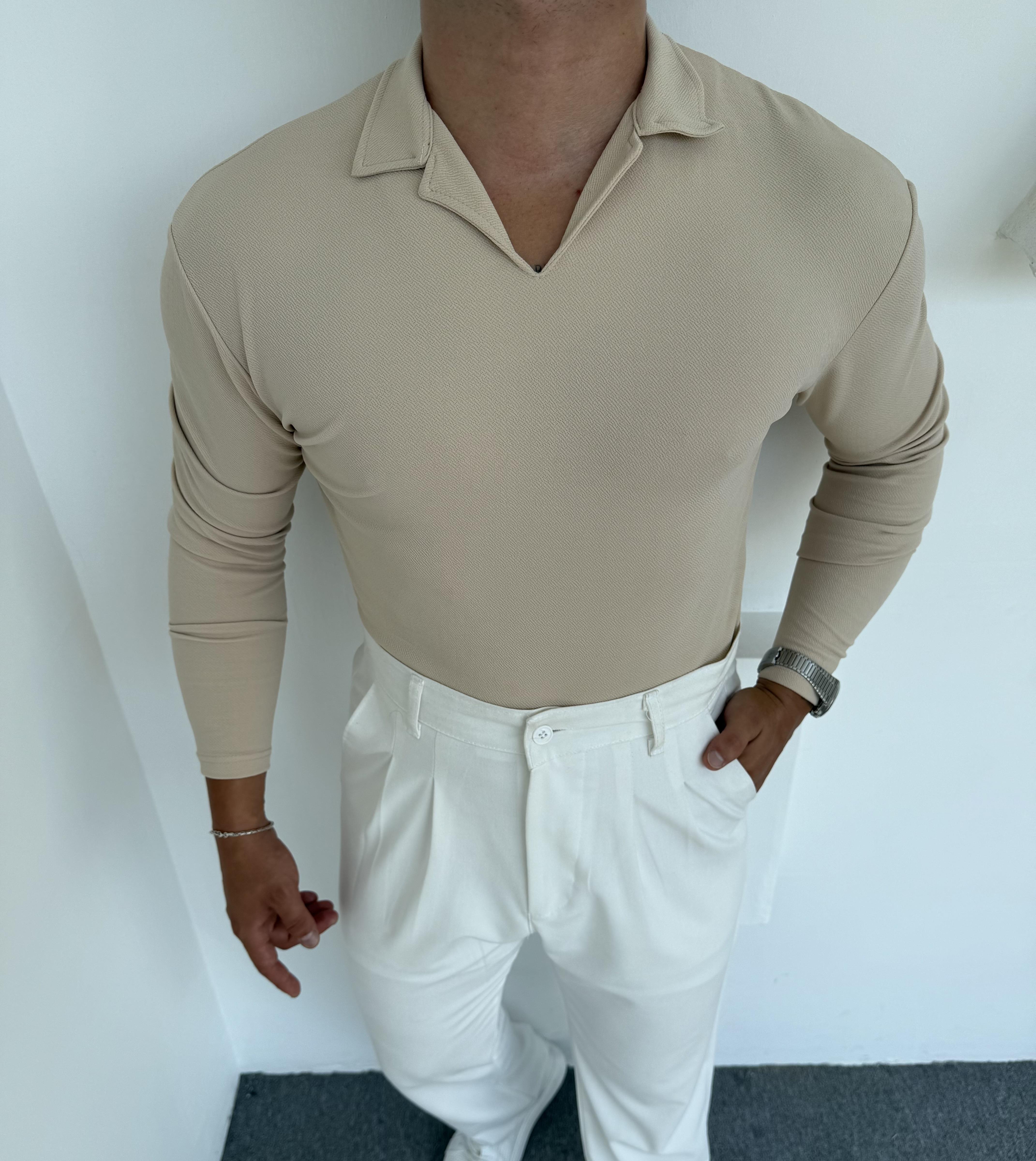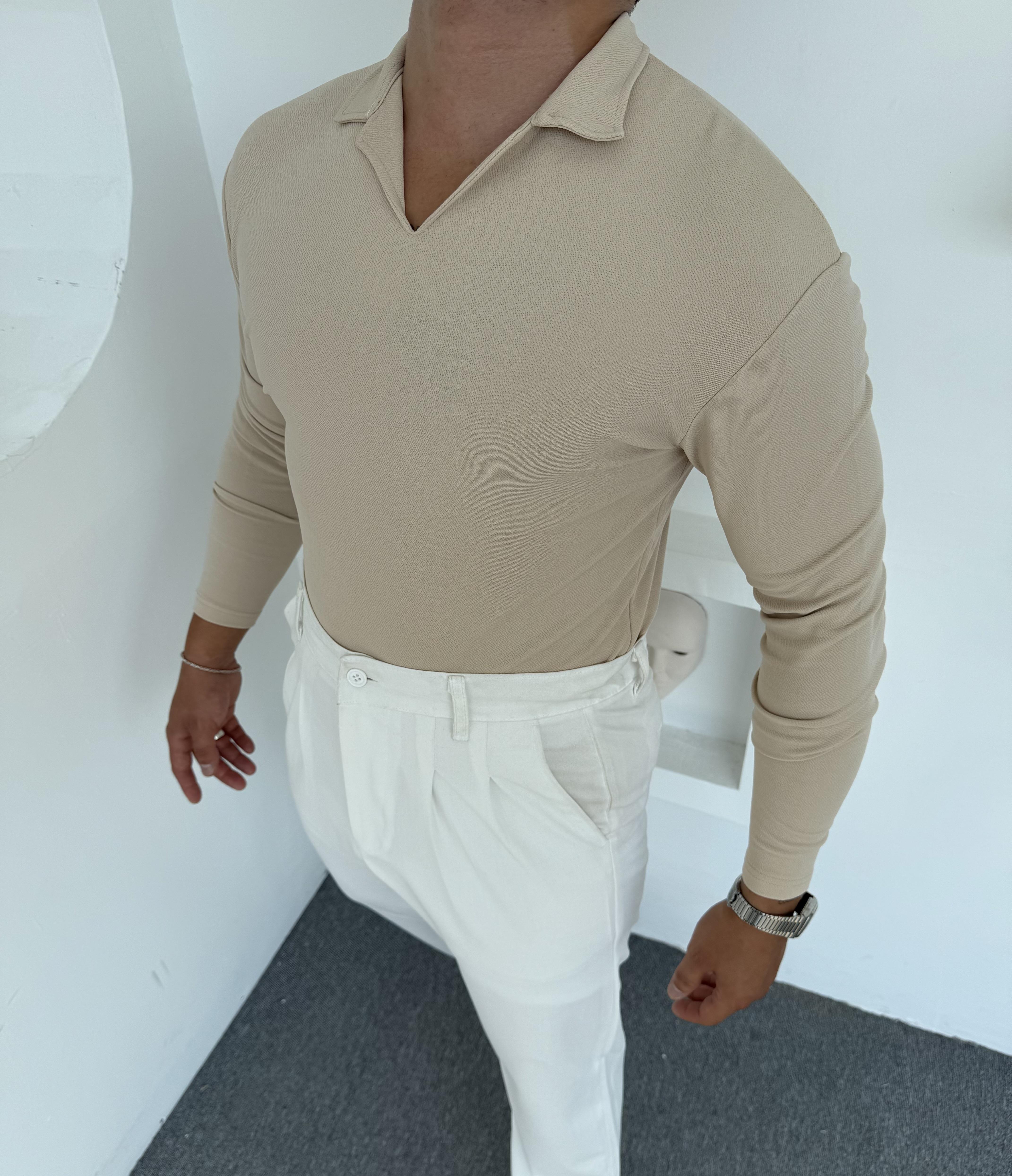 CRAP UZUNKOL HEMŞİRE YAKA SWEATSHİRT KREM