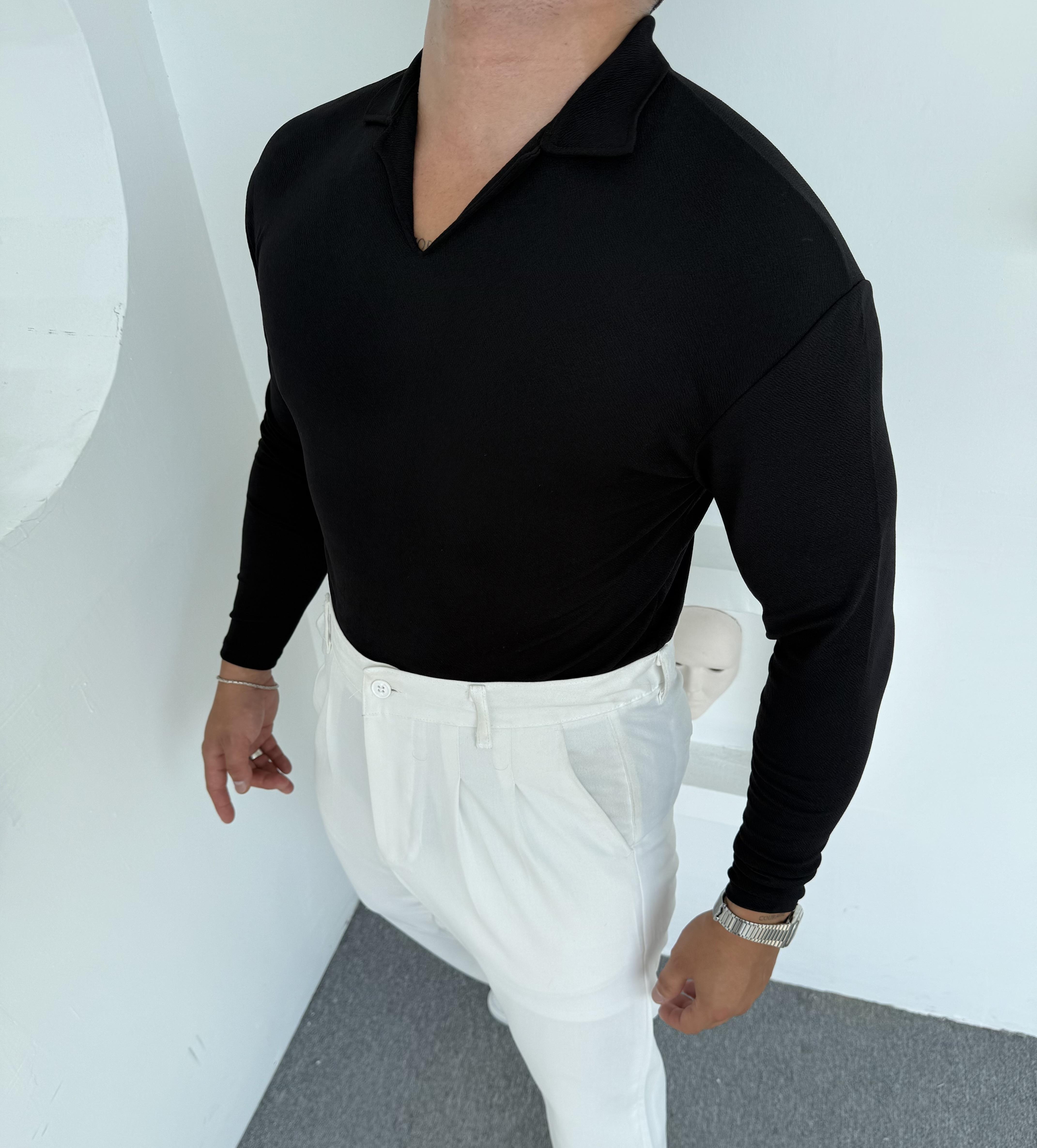 CRAP UZUNKOL HEMŞİRE YAKA SWEATSHİRT SİYAH
