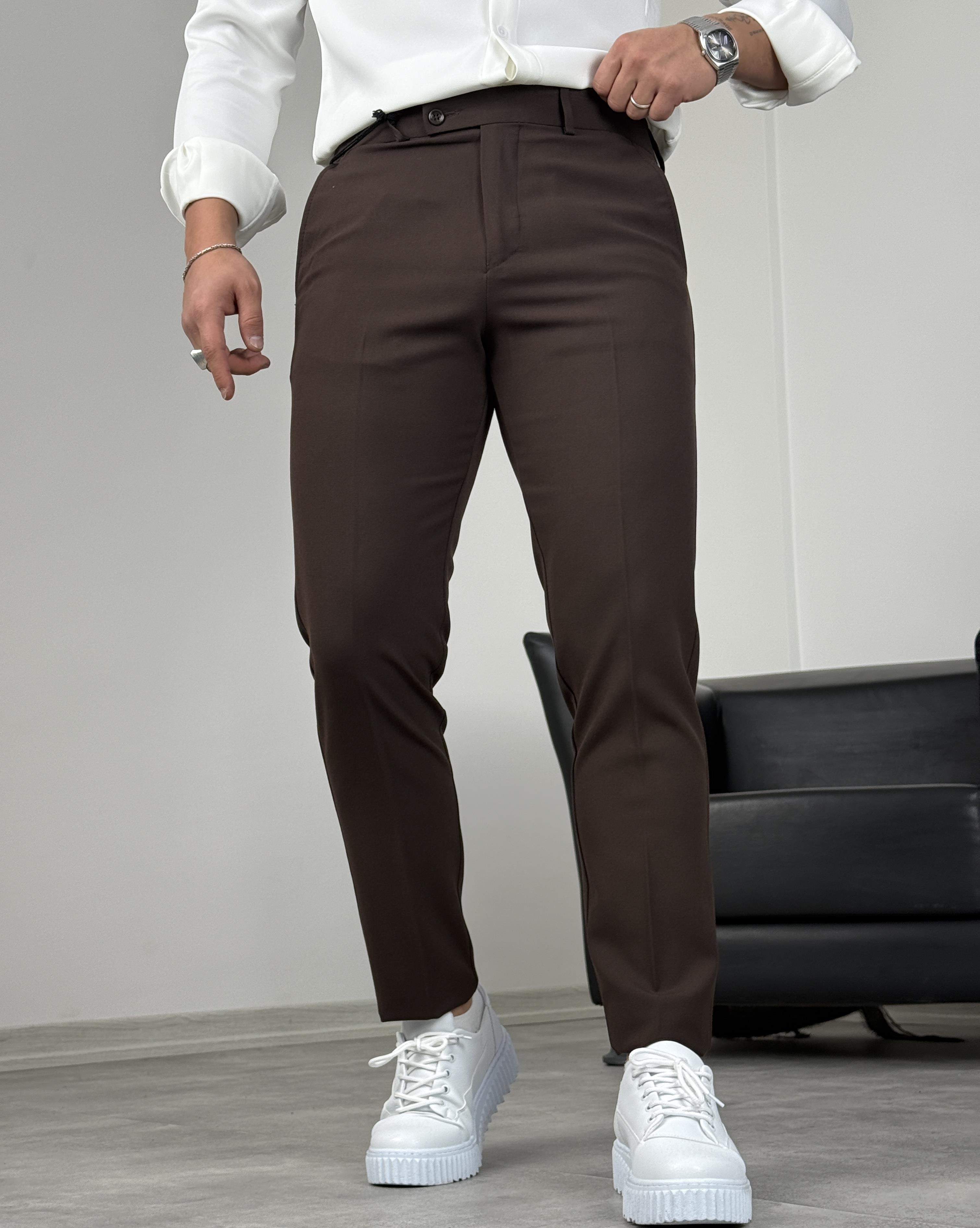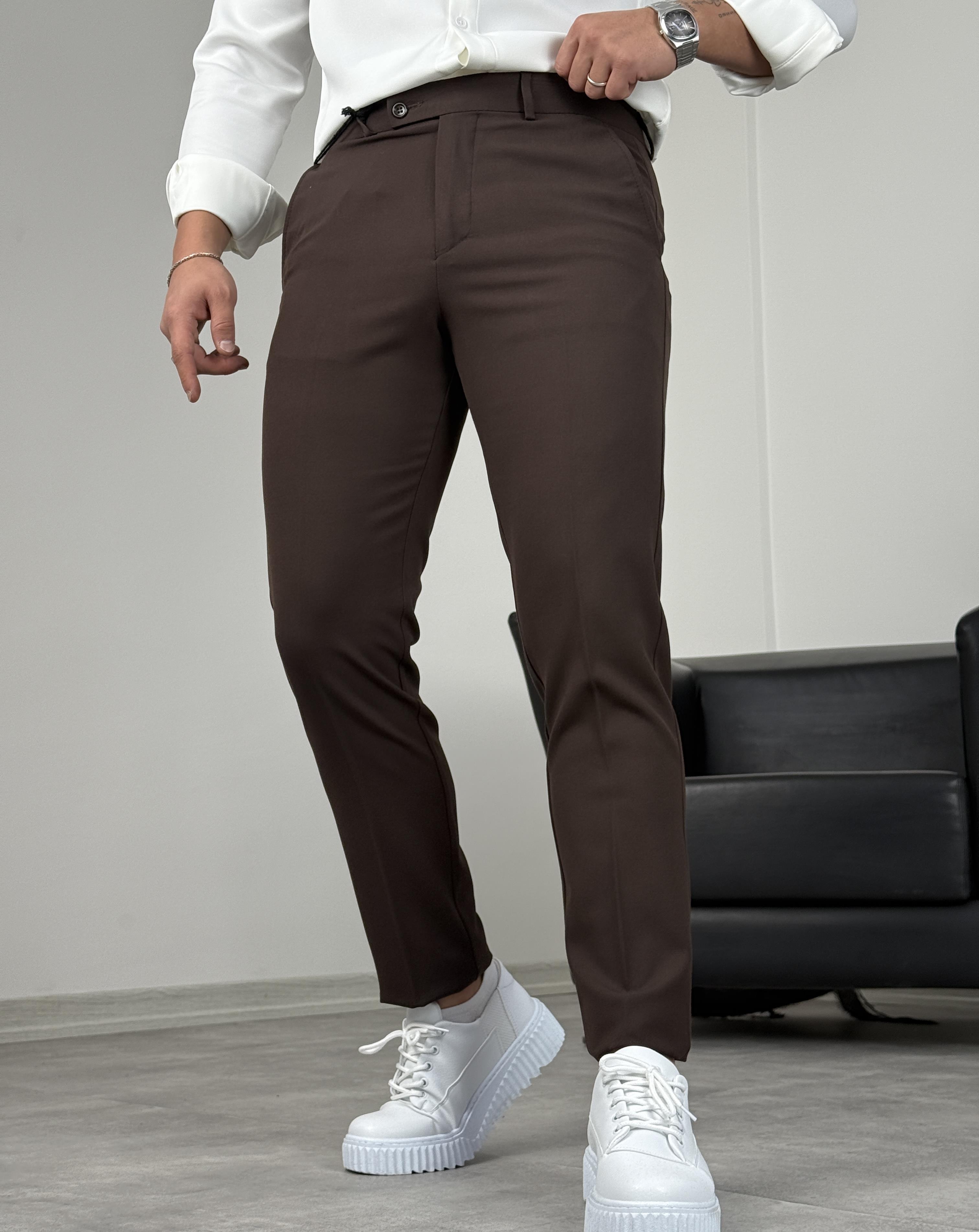 DİL DETAY KANCALI PREMİUM KUMAŞ PANTOLON ACI KAHVE