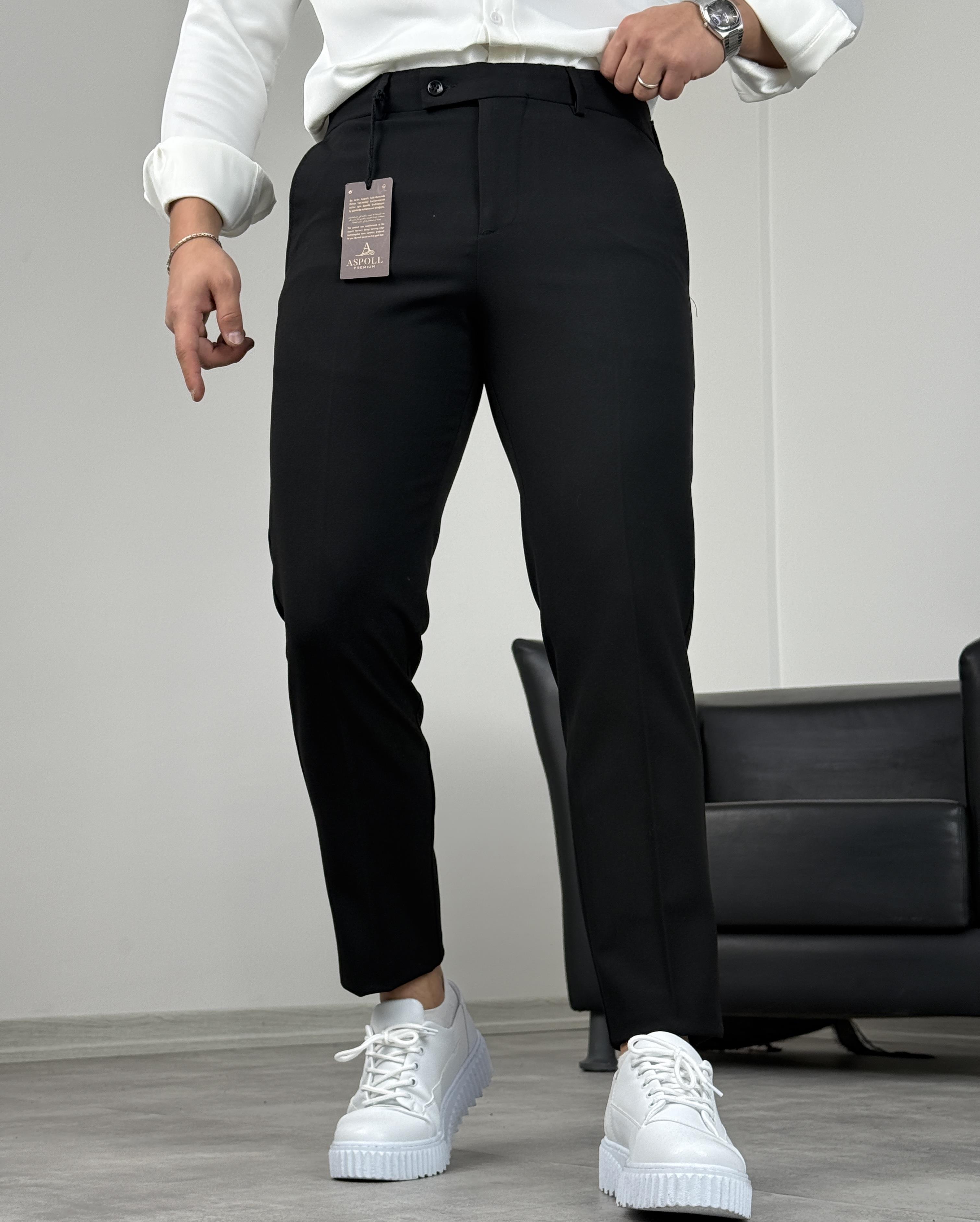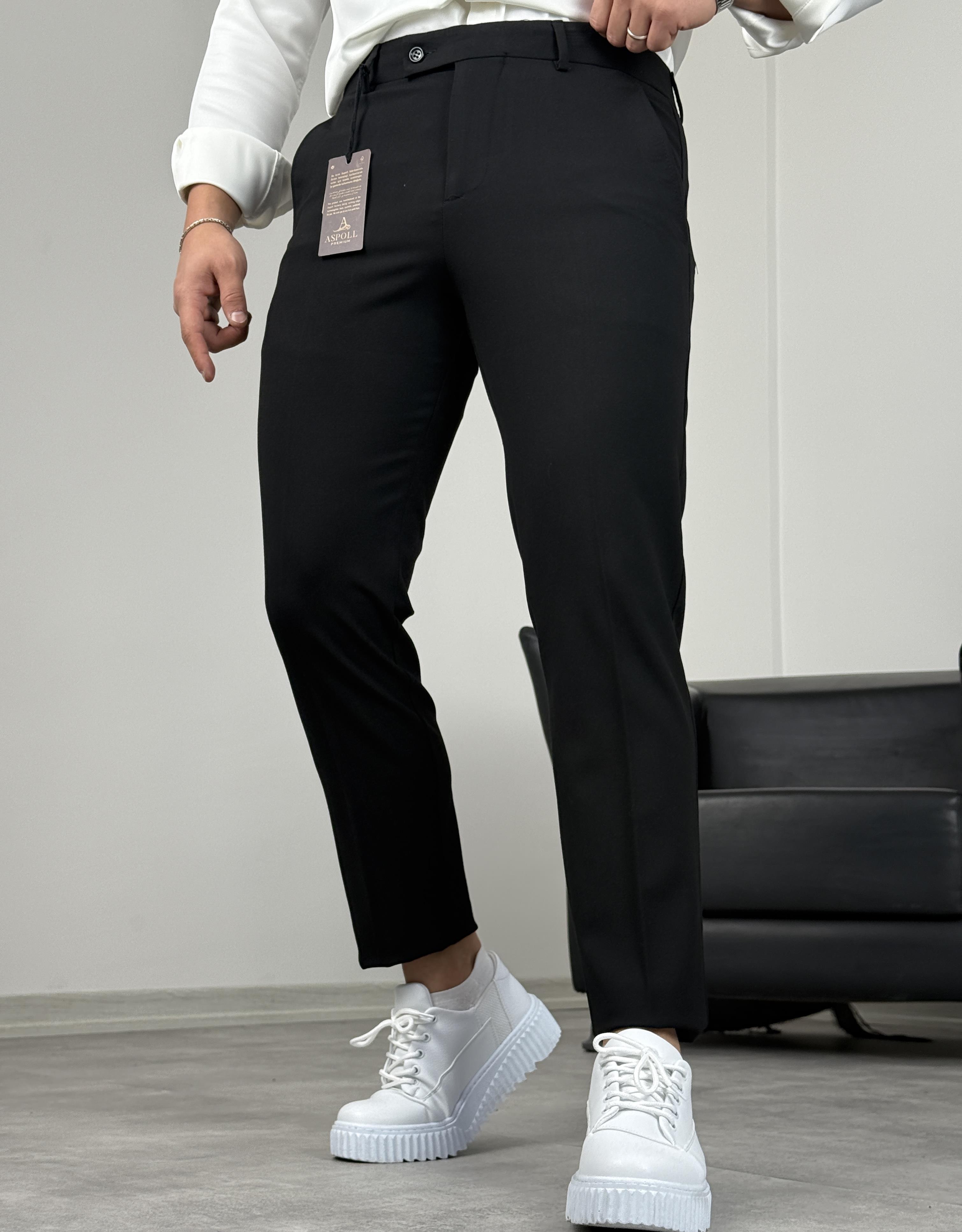 DİL DETAY KANCALI PREMİUM KUMAŞ PANTOLON SİYAH