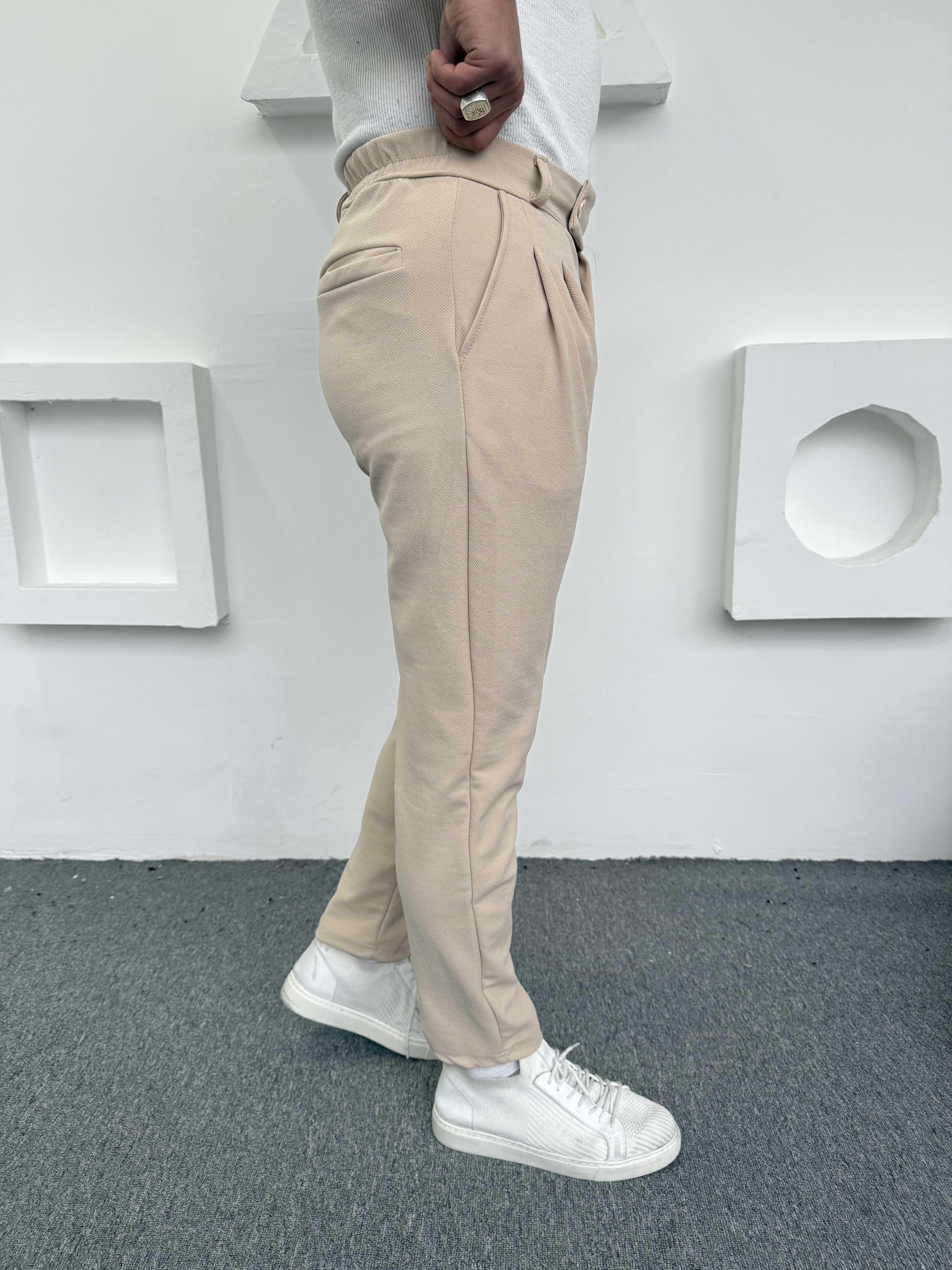 Dilli Pileli Crap Pantolon Krem