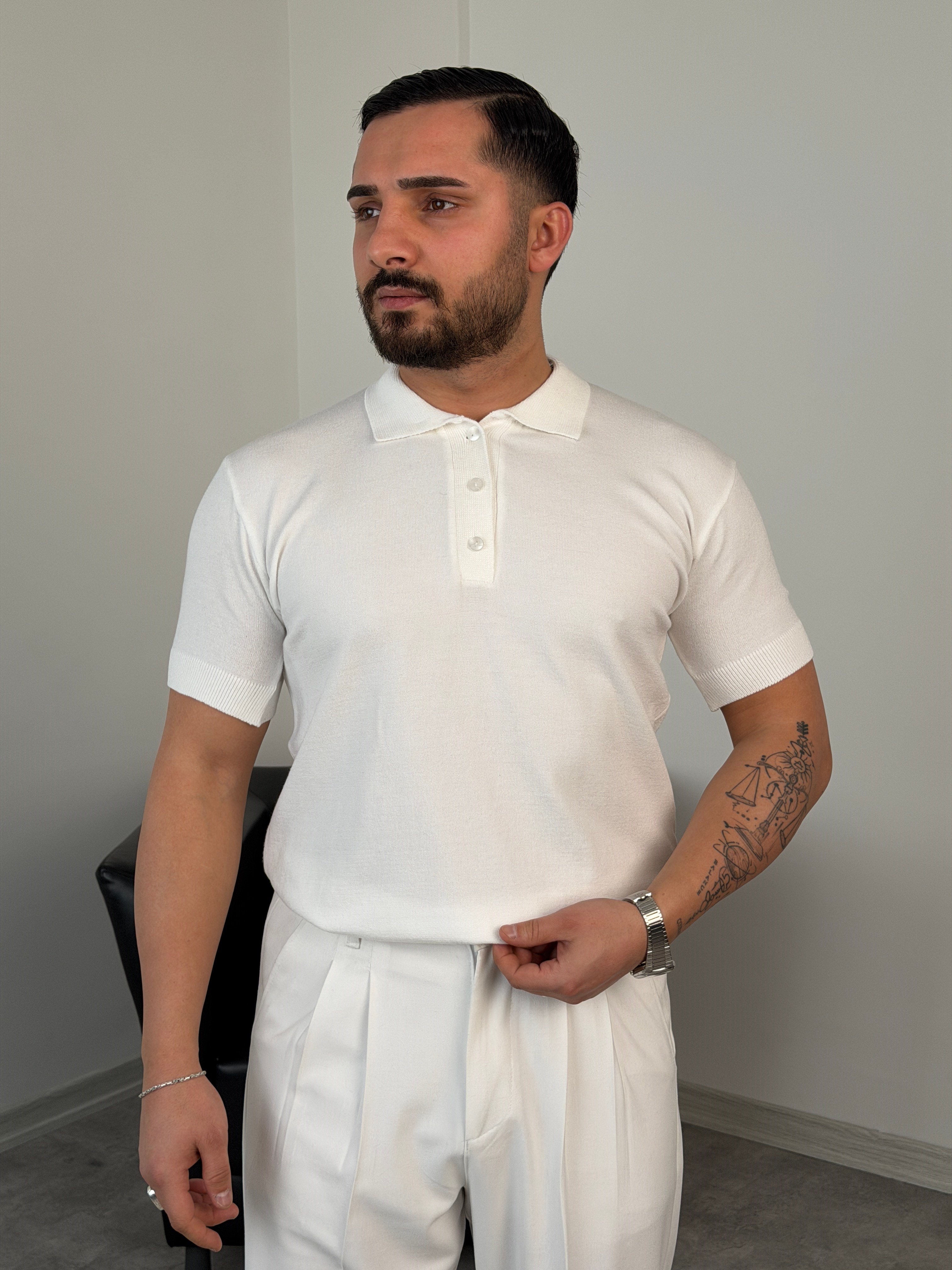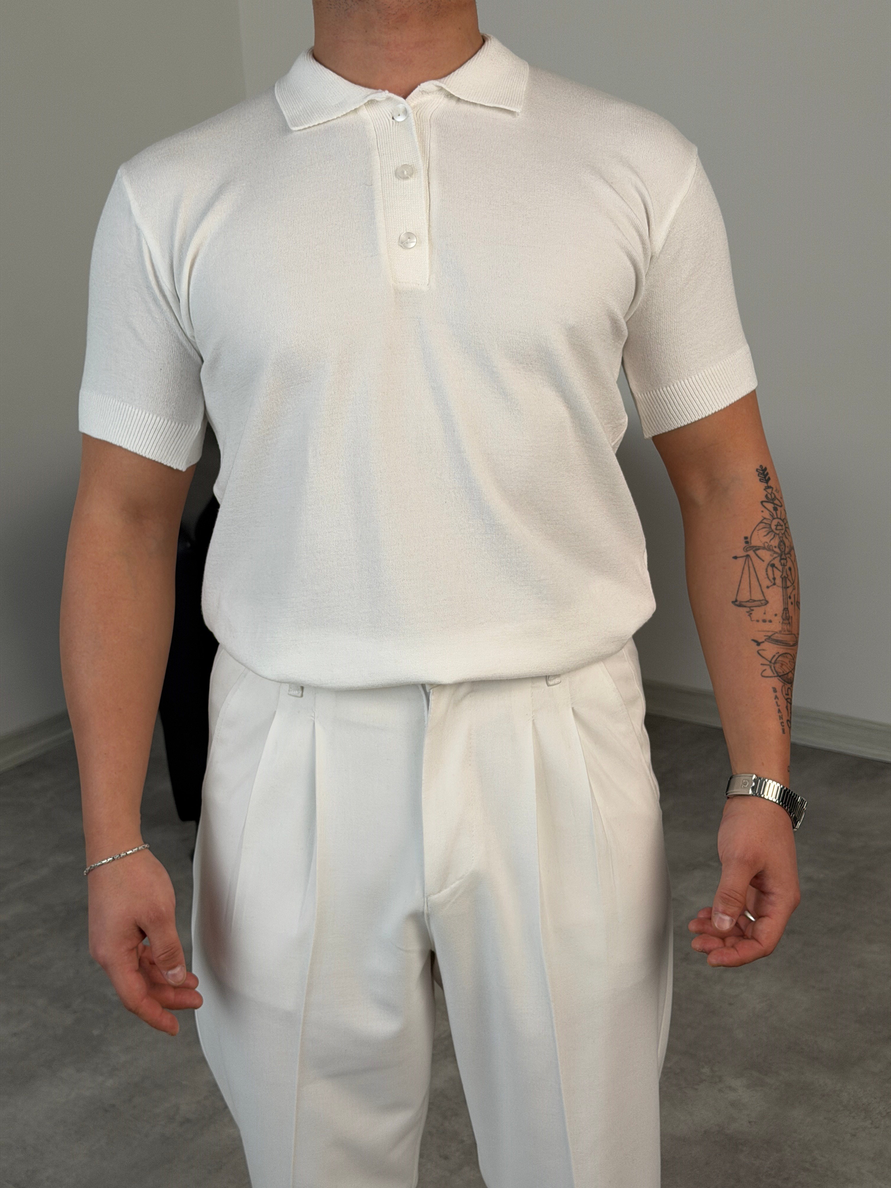 DÖKÜMLÜ TRİKO POLO YAKA TİŞÖRT BEYAZ