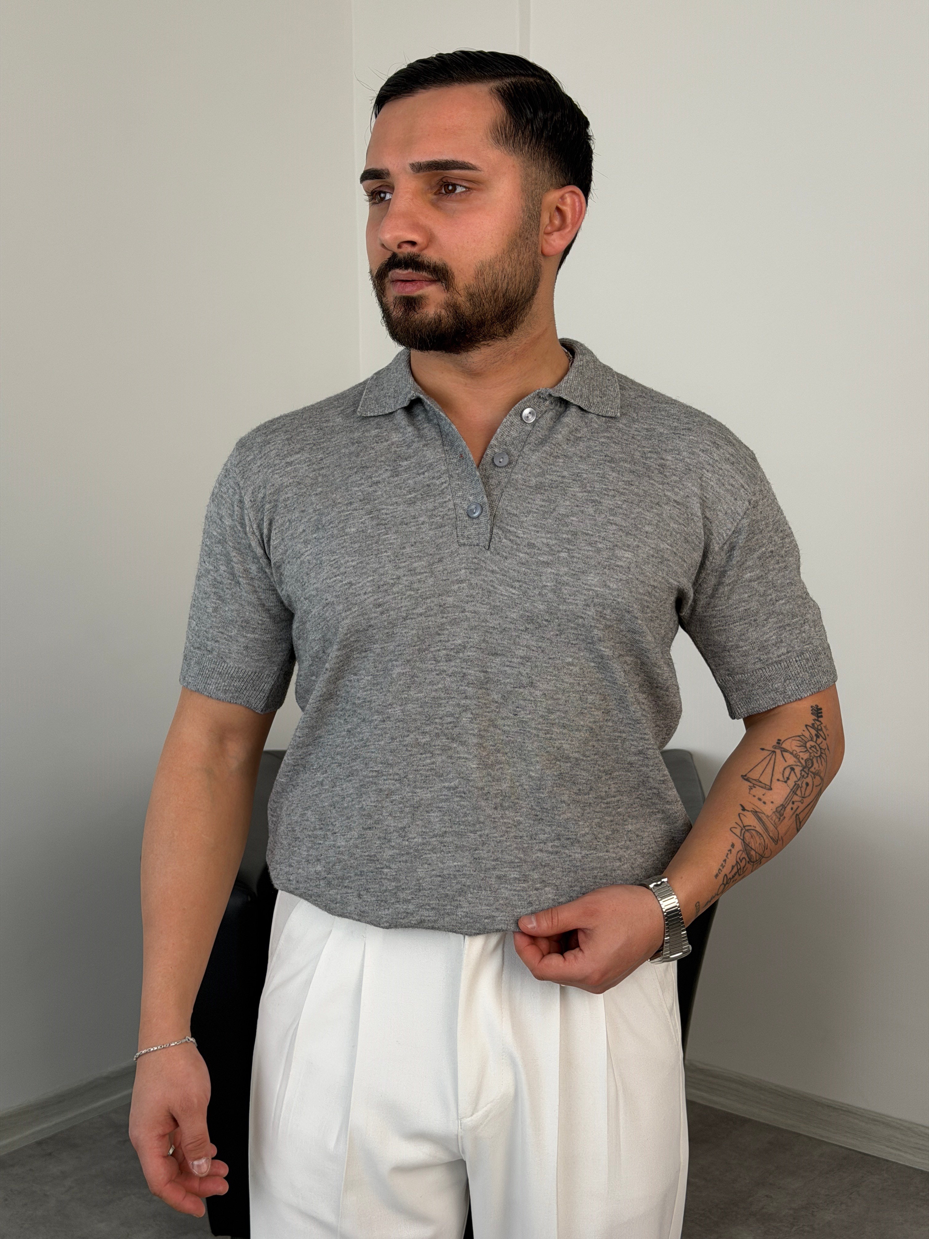 DÖKÜMLÜ TRİKO POLO YAKA TİŞÖRT GRİ