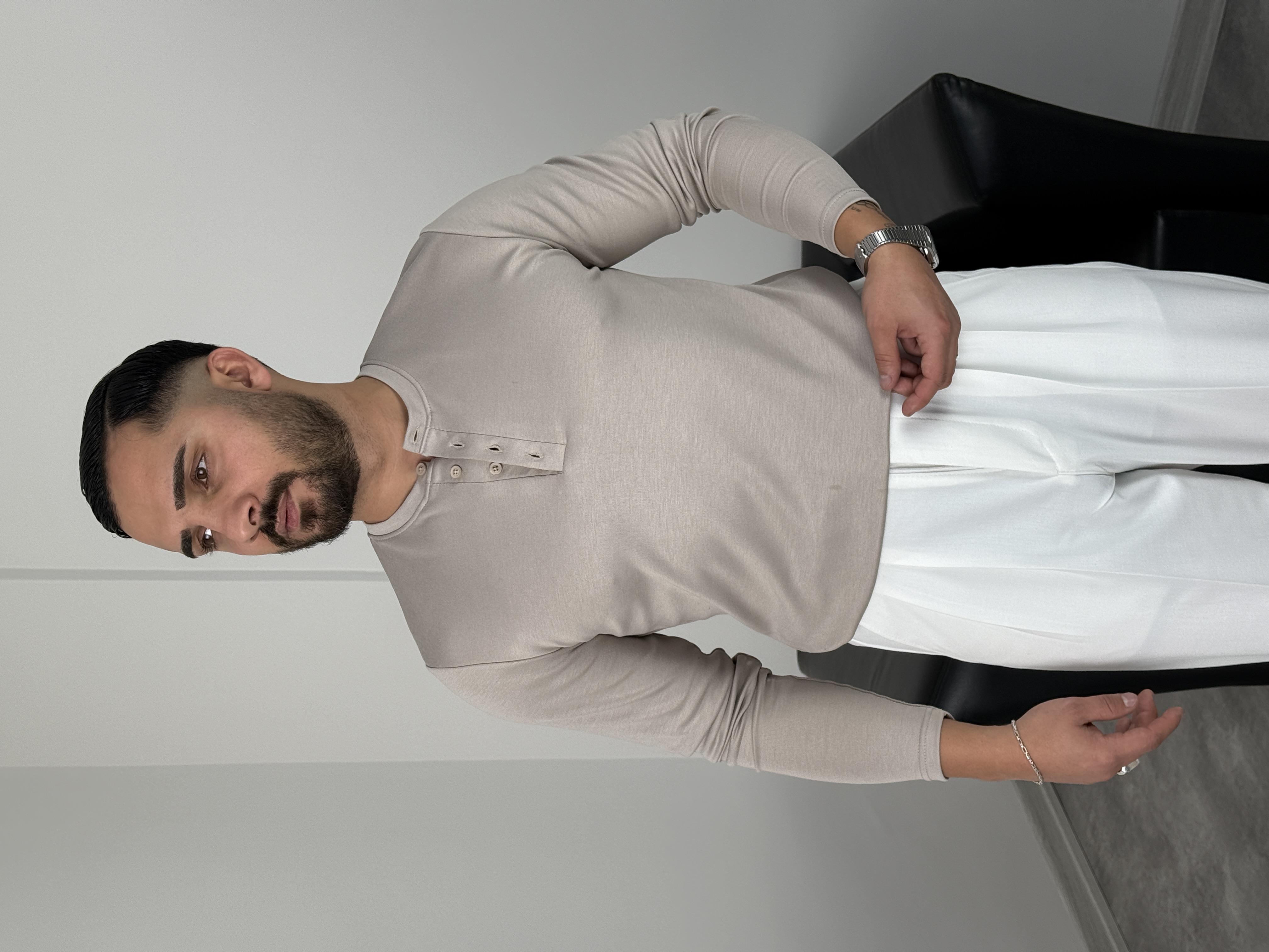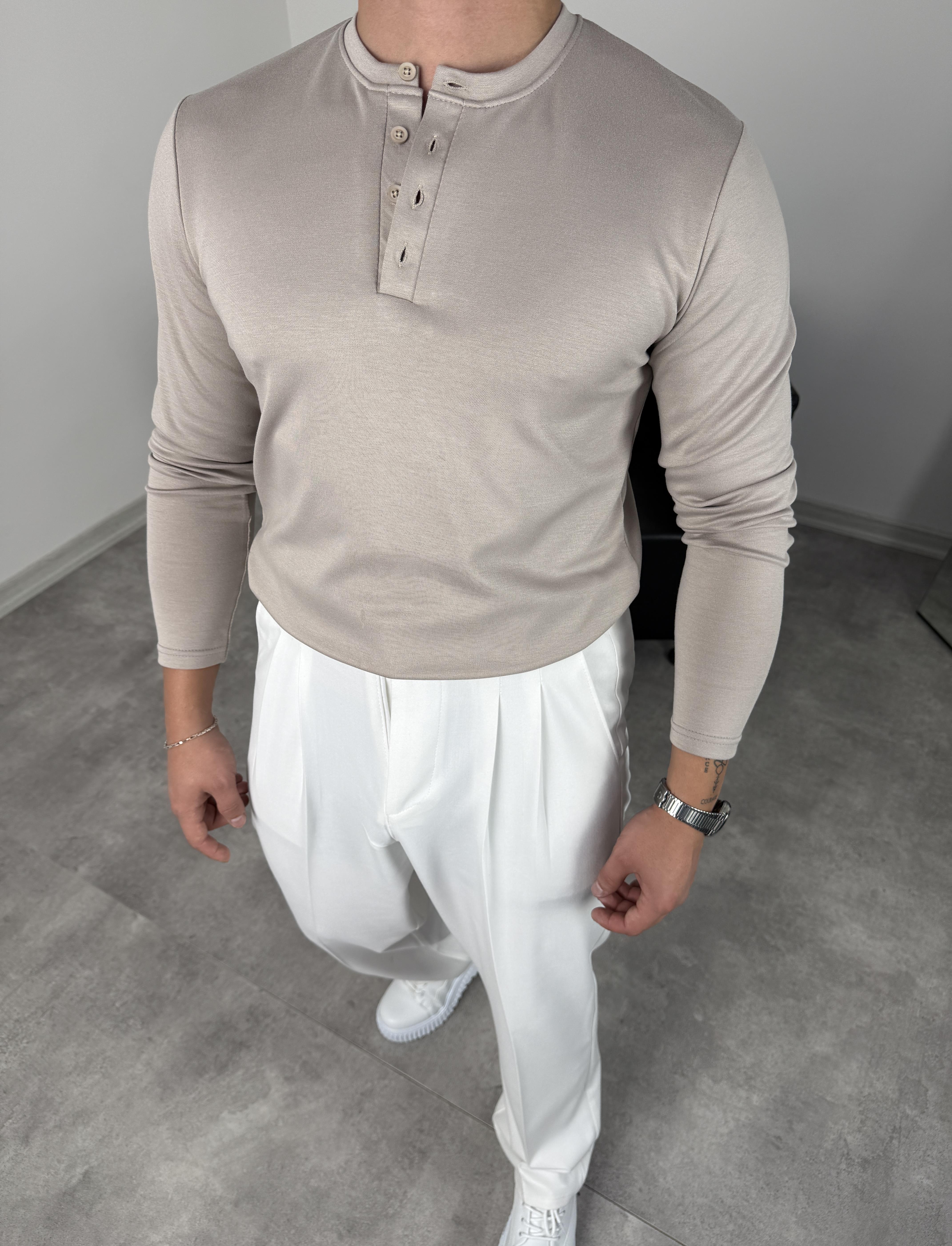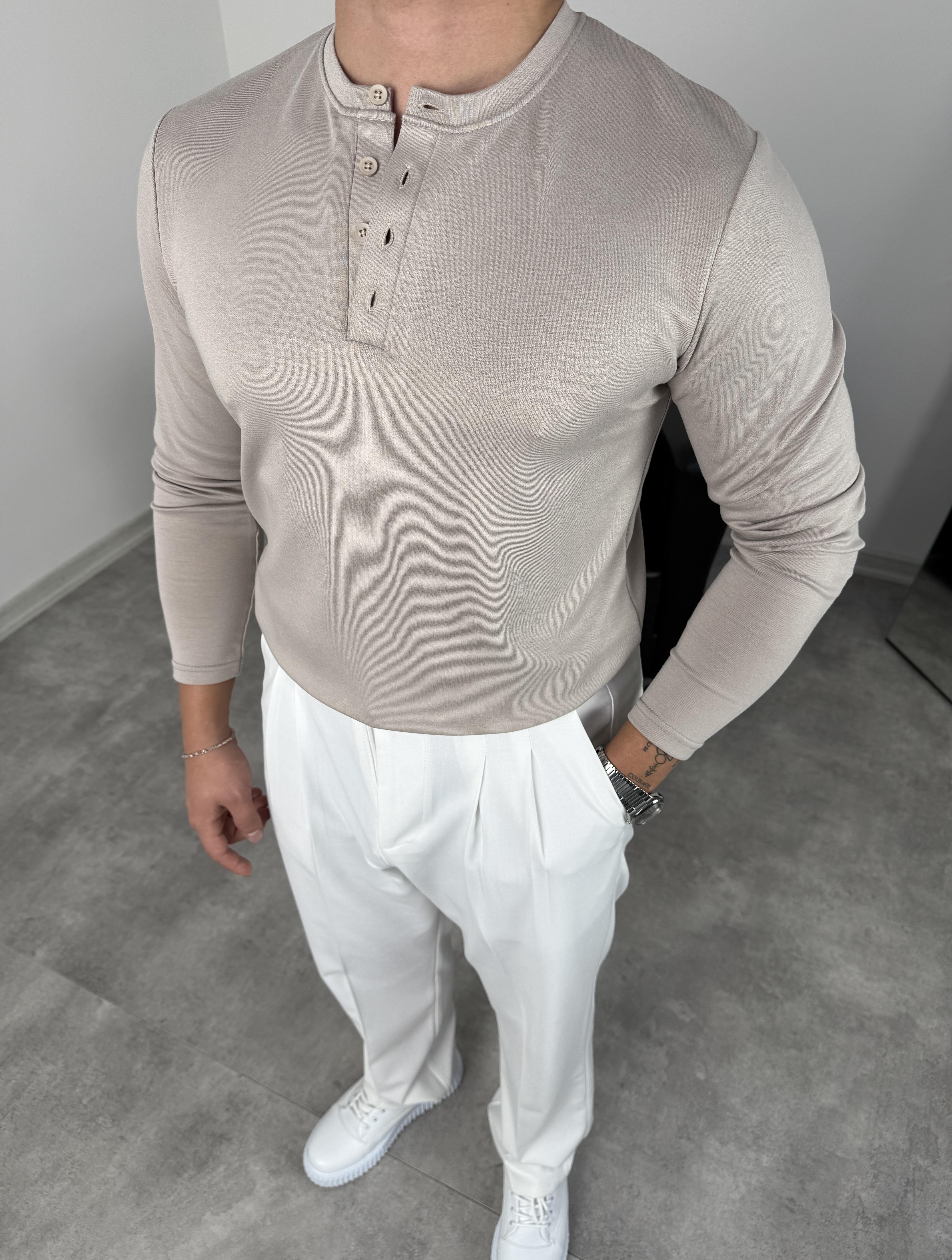 DÜĞMELİ MODAL KUMAŞ PREMİUM SWEATSHİRT BEJ