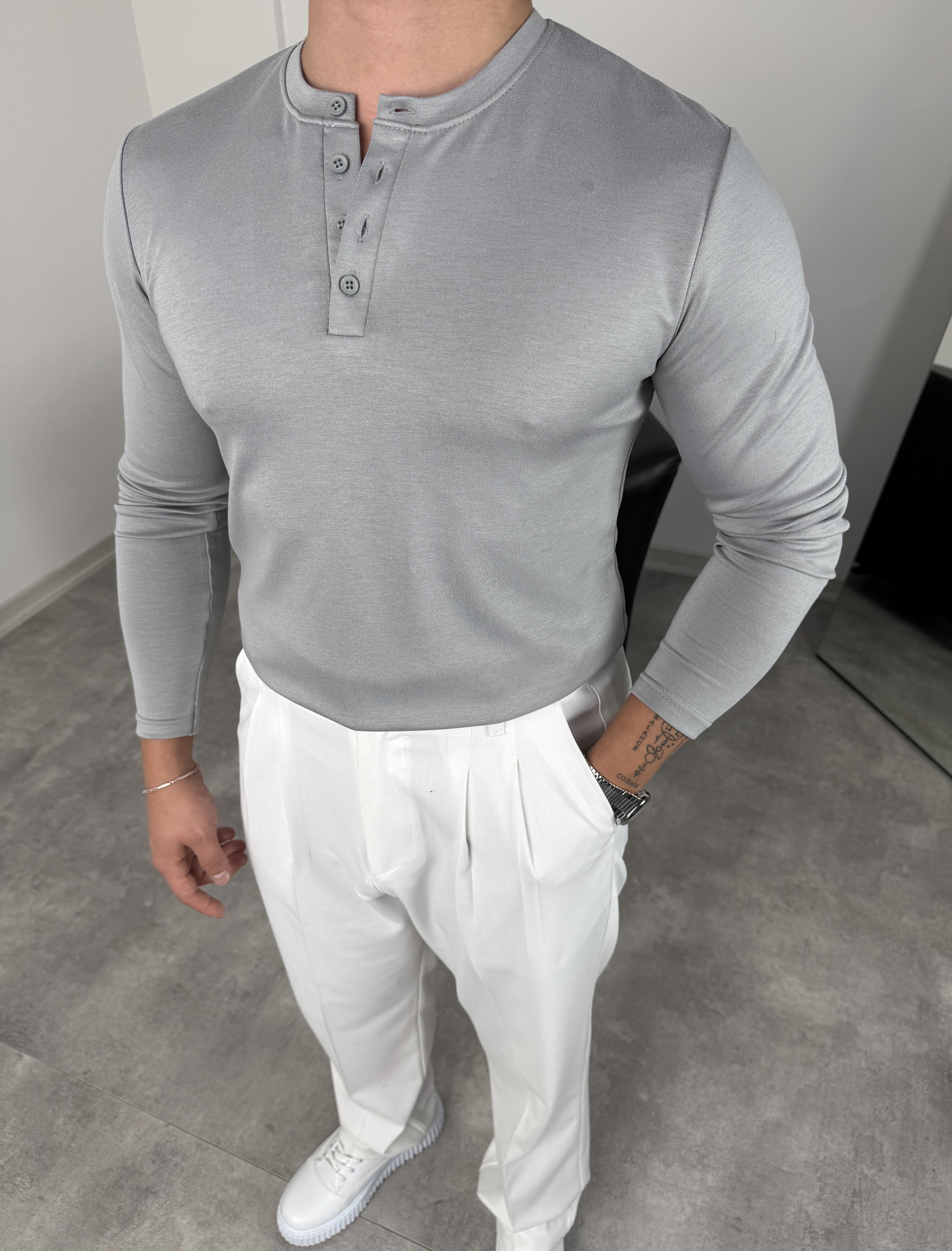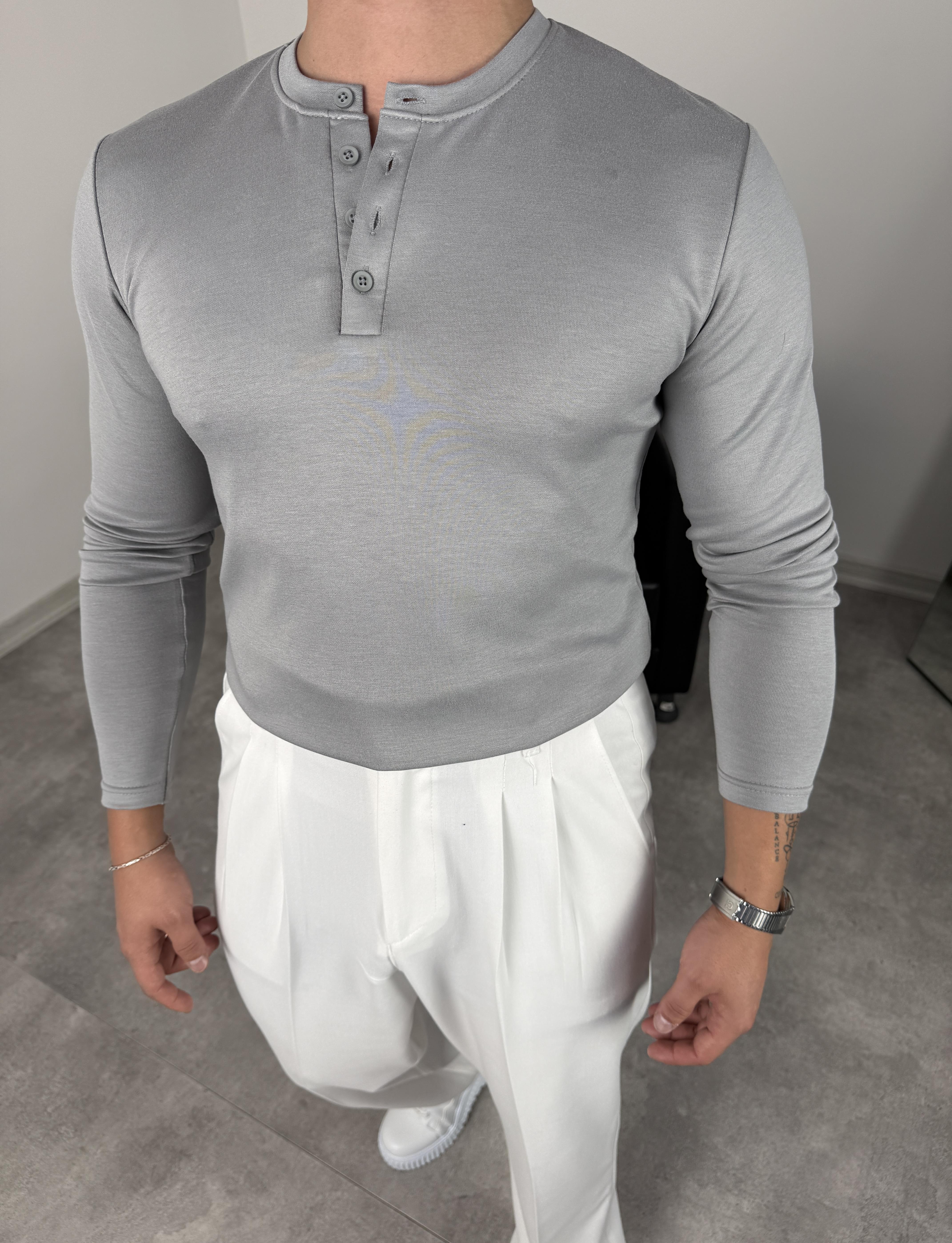 DÜĞMELİ MODAL KUMAŞ PREMİUM SWEATSHİRT GRİ