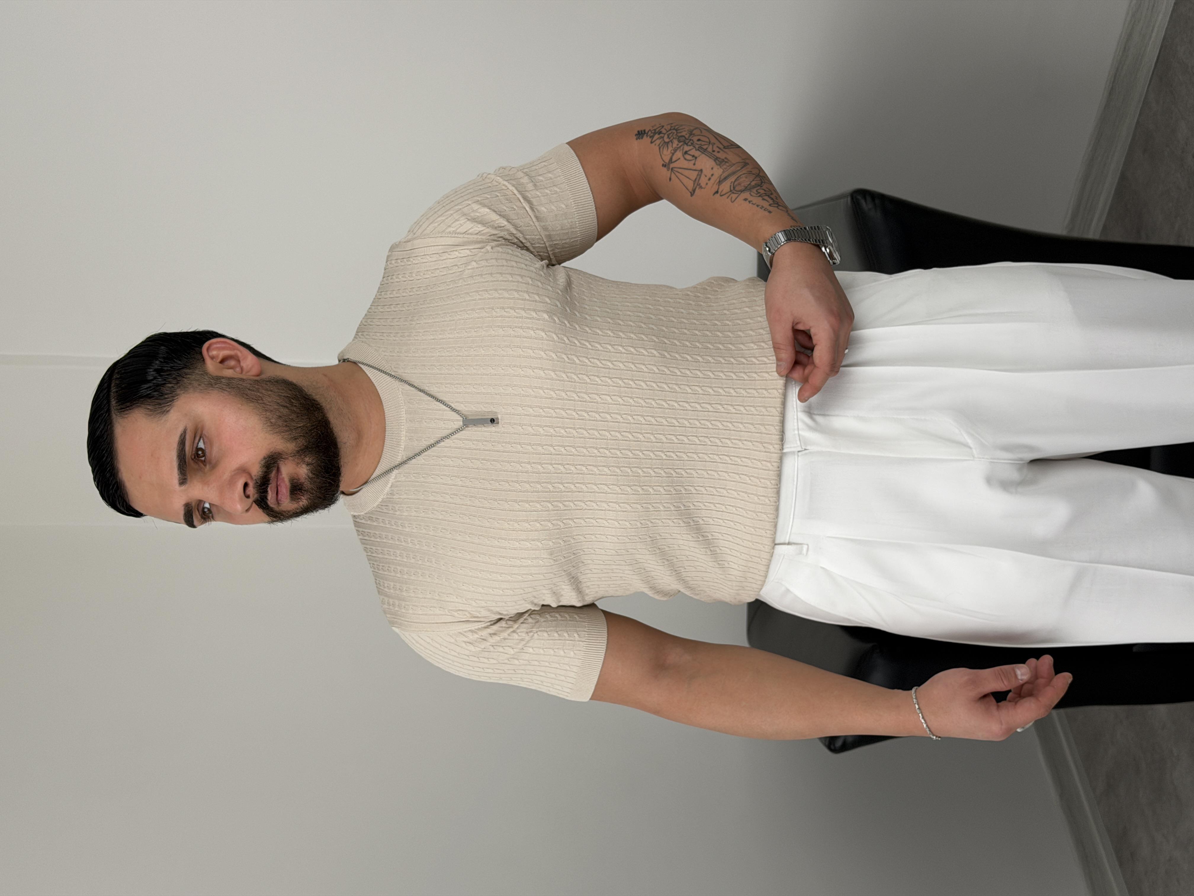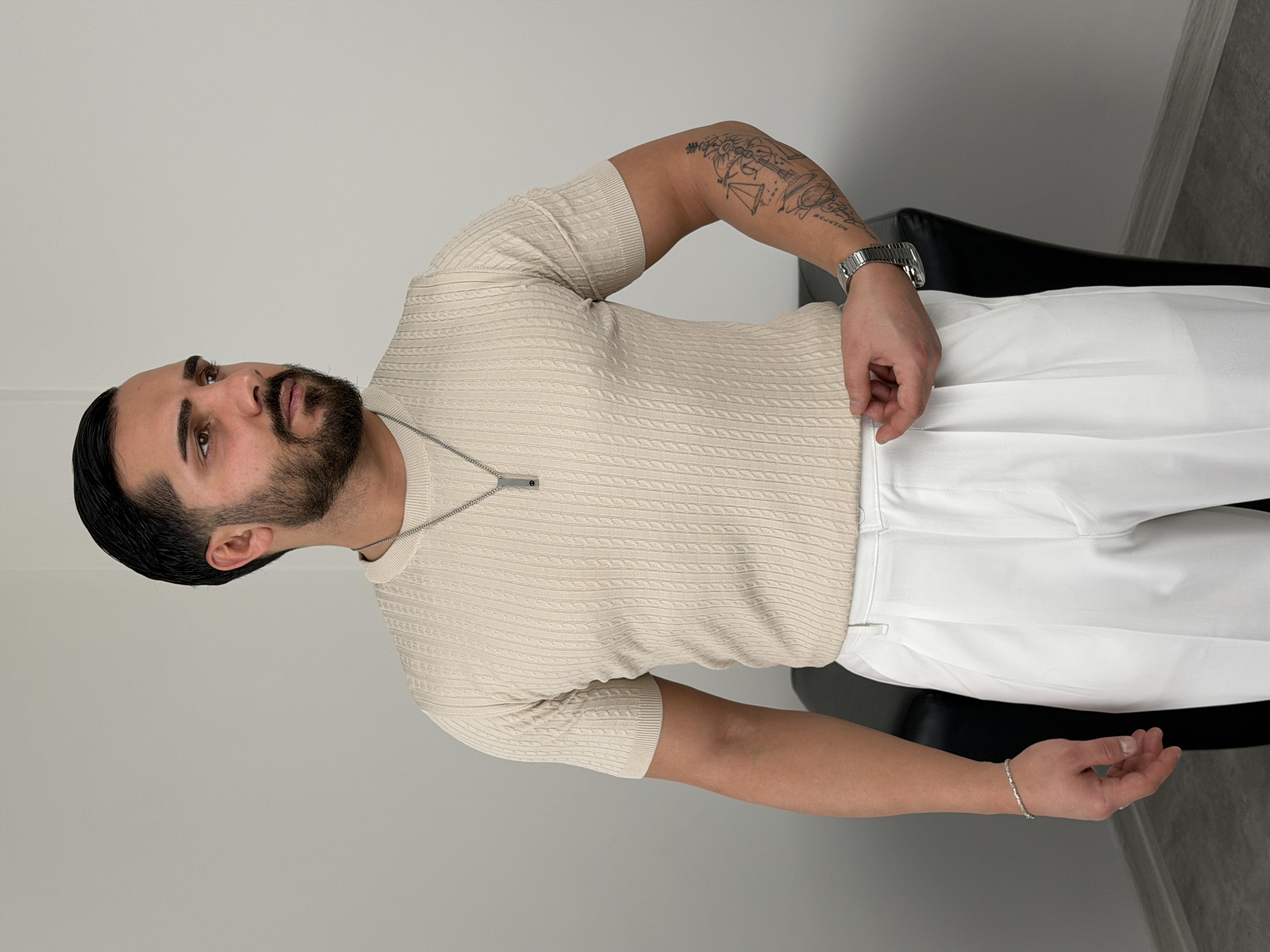 ELMAS TRİKO HALAT DESEN BİSİKLET YAKA TİŞÖRT BEJ