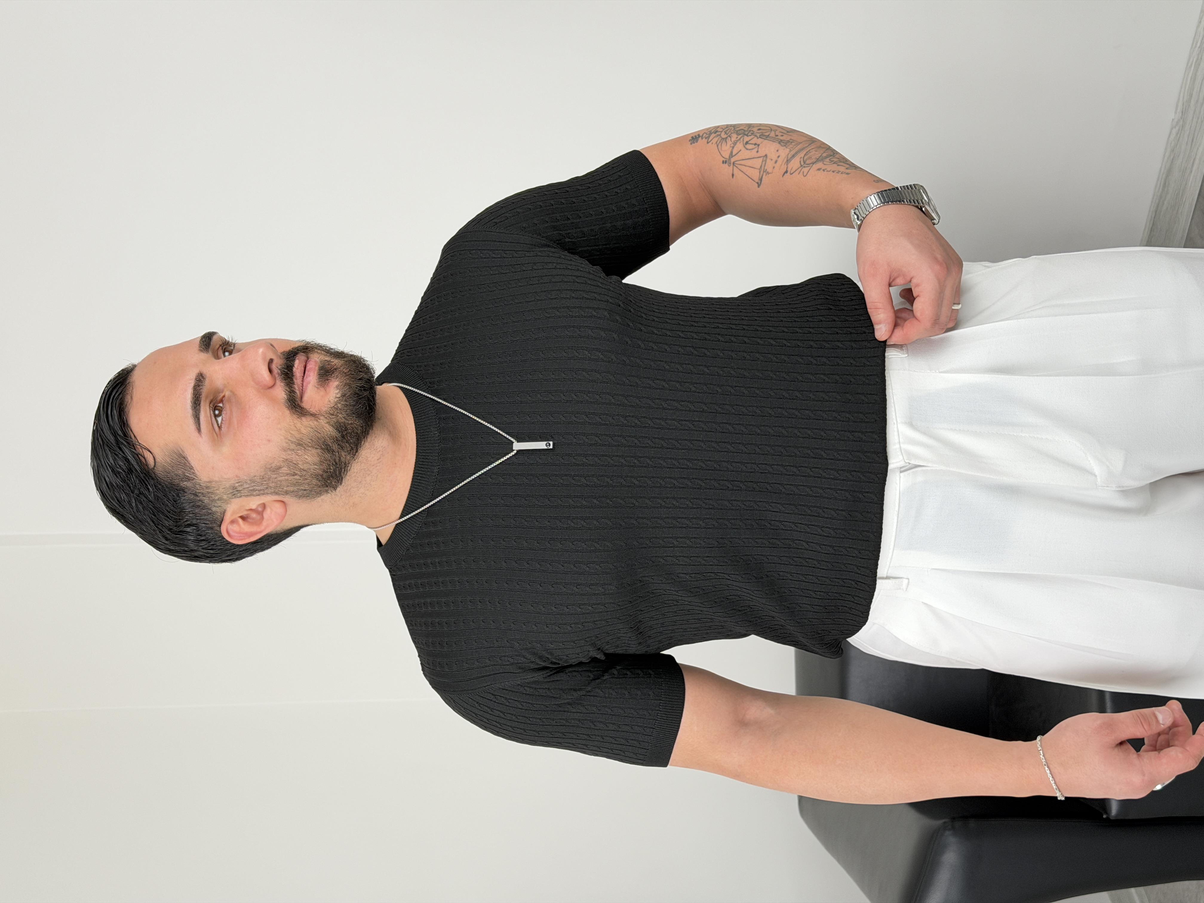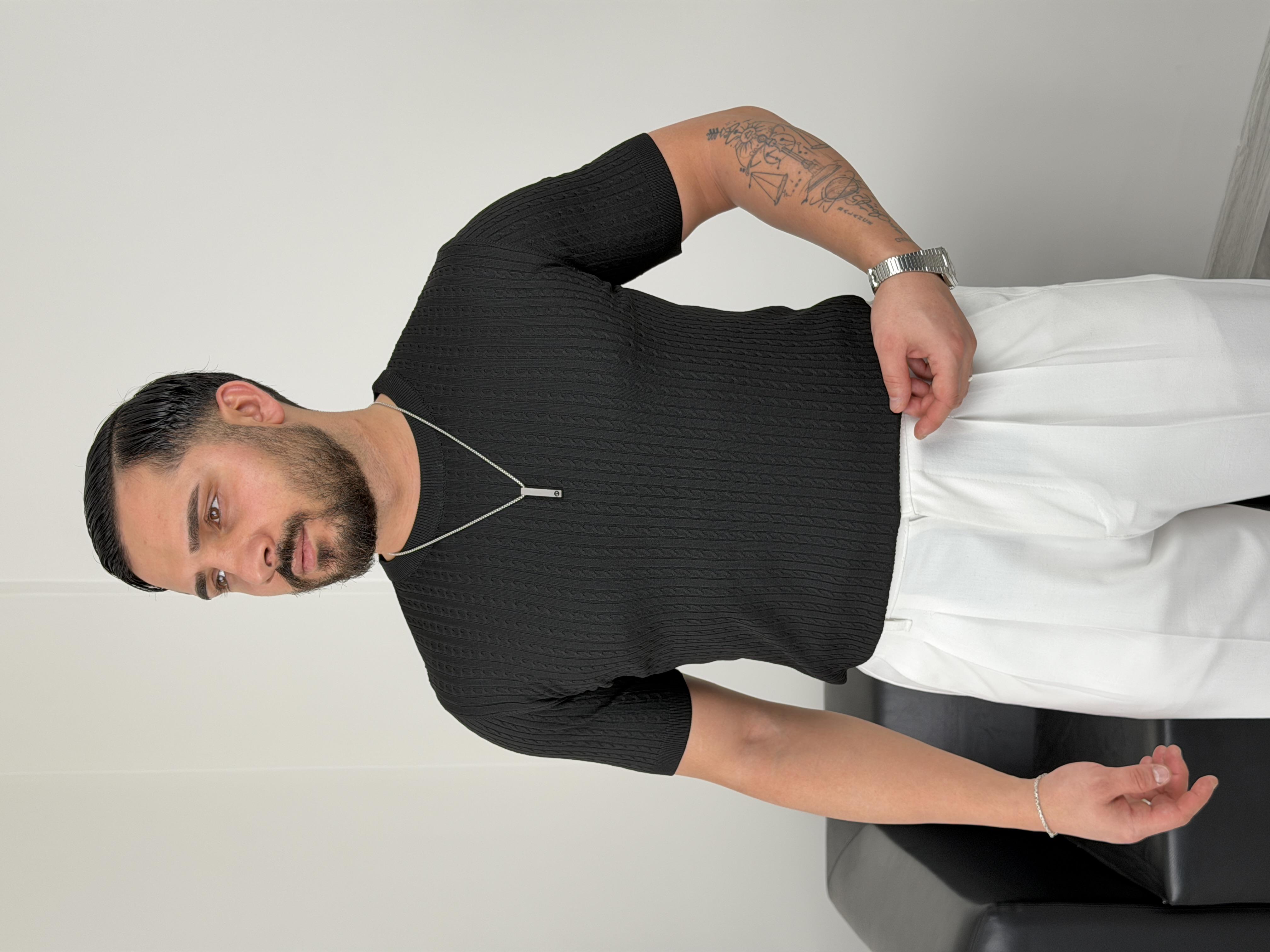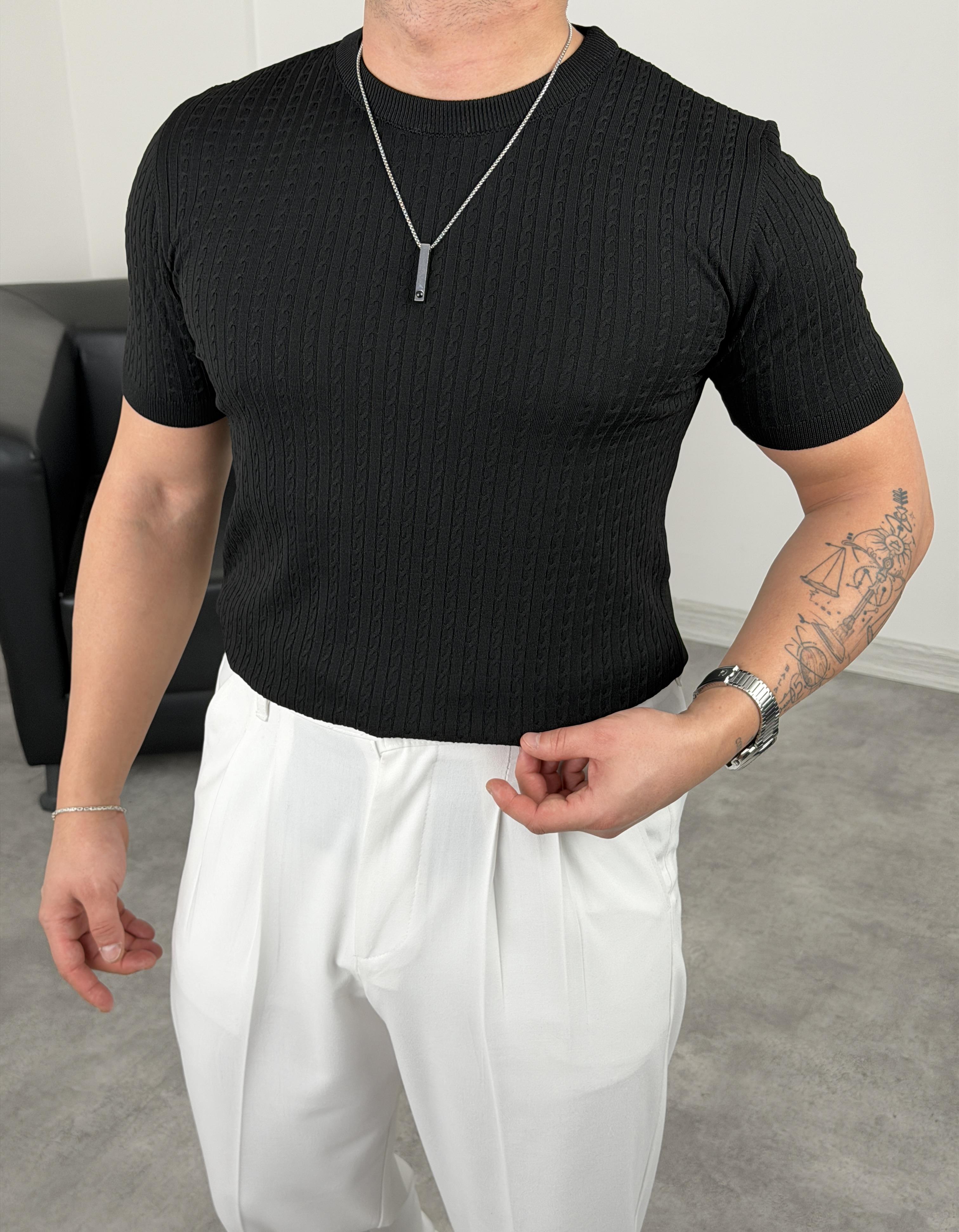ELMAS TRİKO HALAT DESEN BİSİKLET YAKA TİŞÖRT SİYAH