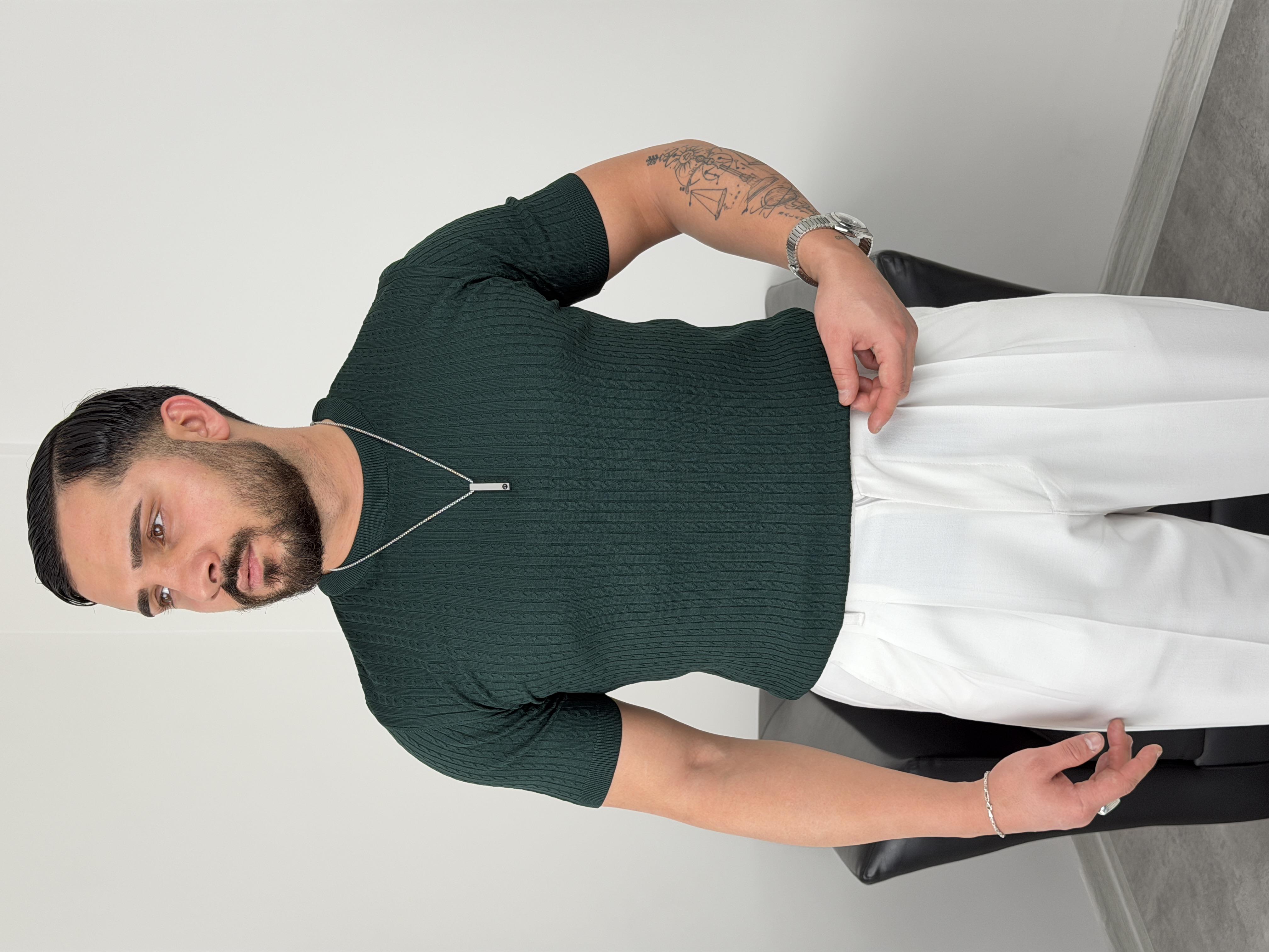 ELMAS TRİKO HALAT DESEN BİSİKLET YAKA TİŞÖRT ZÜMRÜT YEŞİLİ