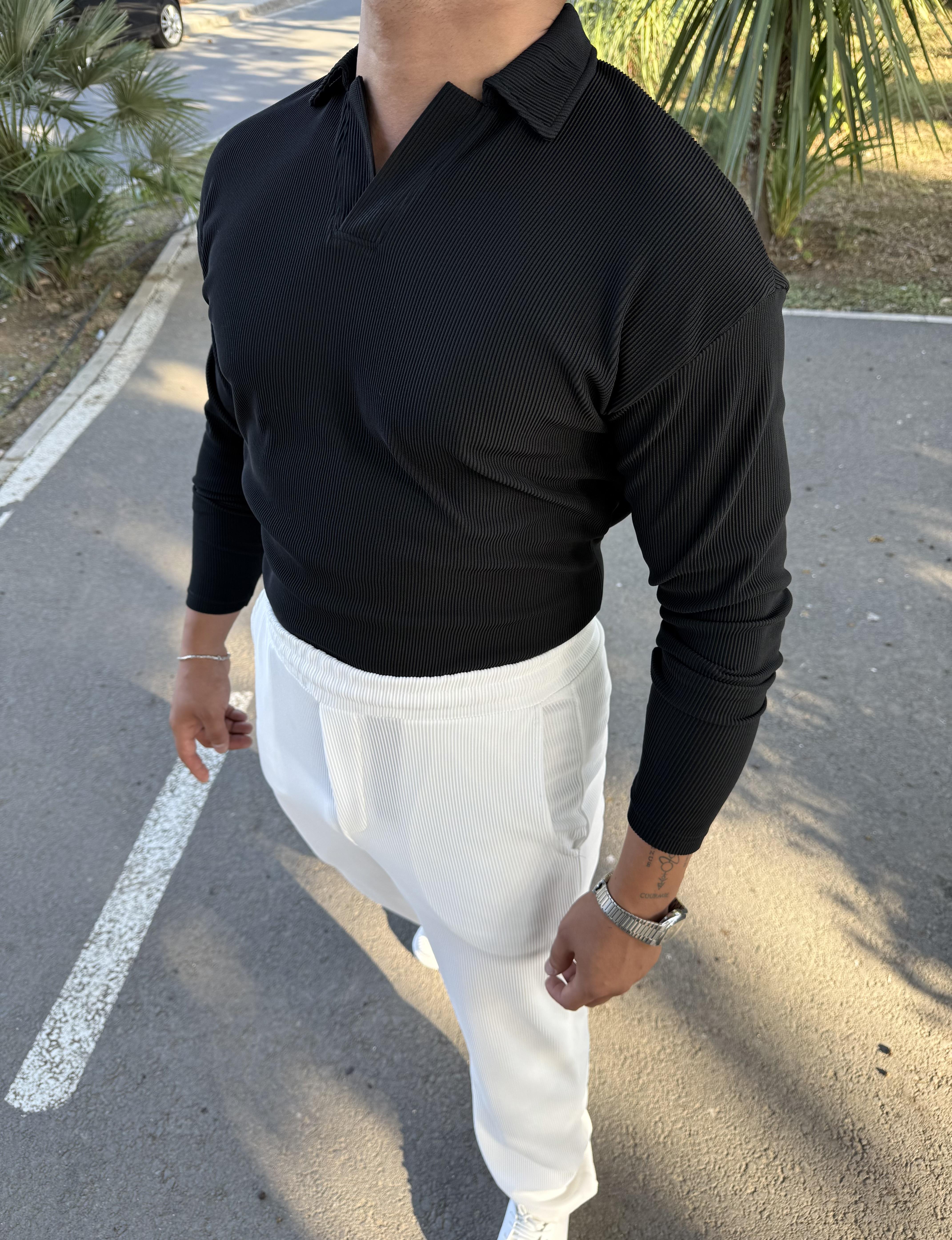 FİTİLLİ POLO YAKA SWEATSHİRT SİYAH