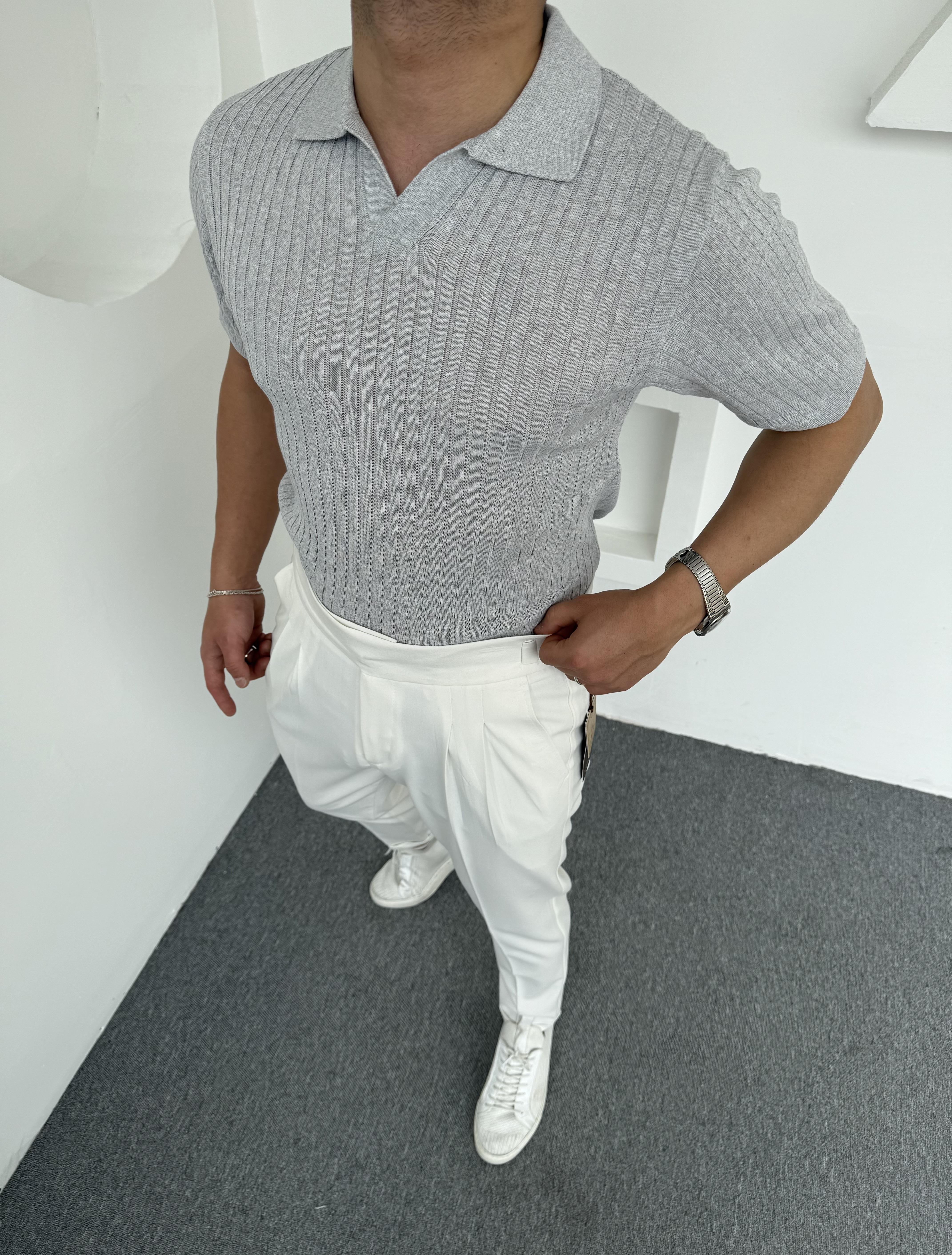 Fitilli Triko Polo Yaka Gri