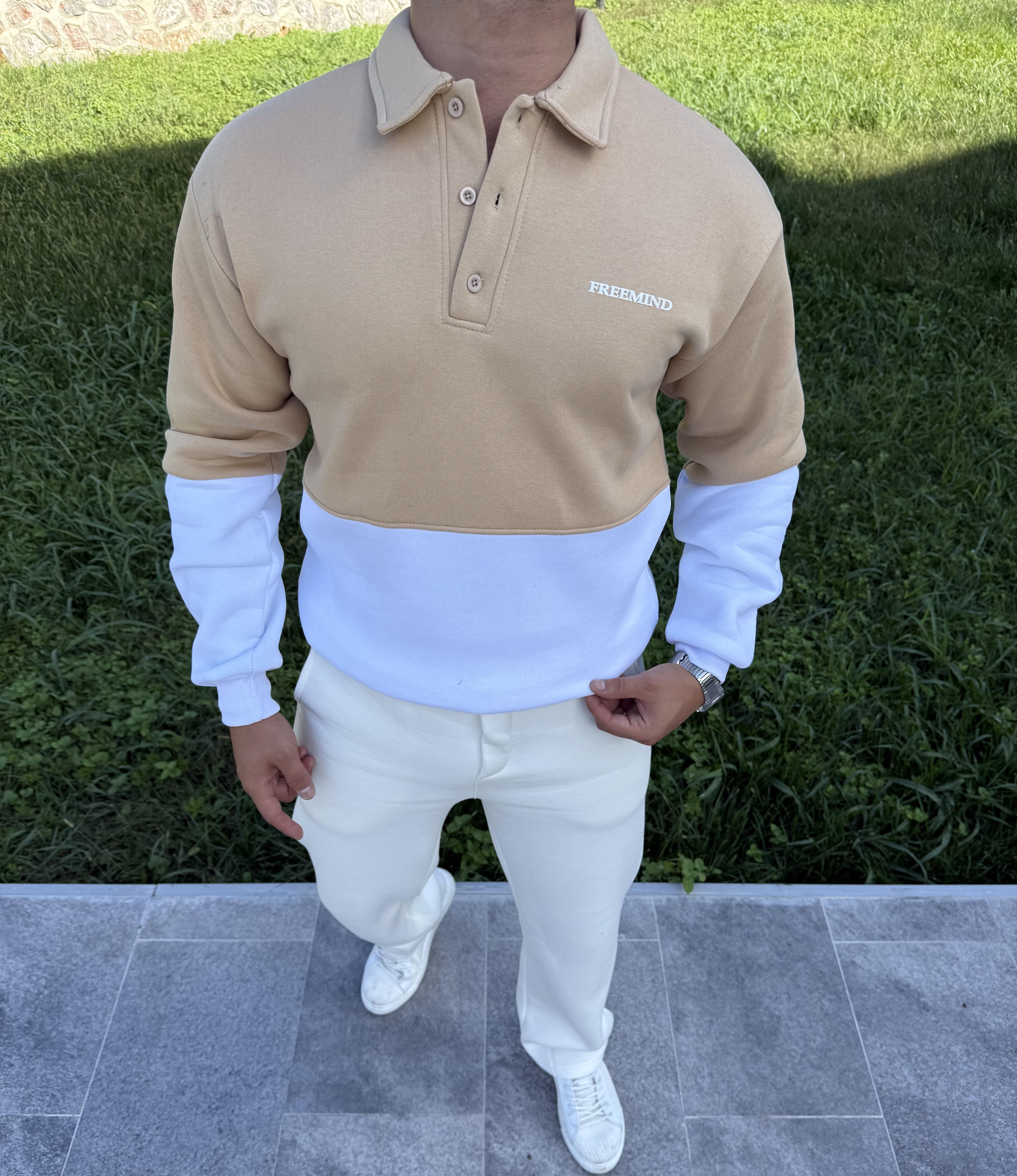 FREEMİND NAKIŞLI 3 İPLİK ŞARDONLU SWEATSHİRT BEJ