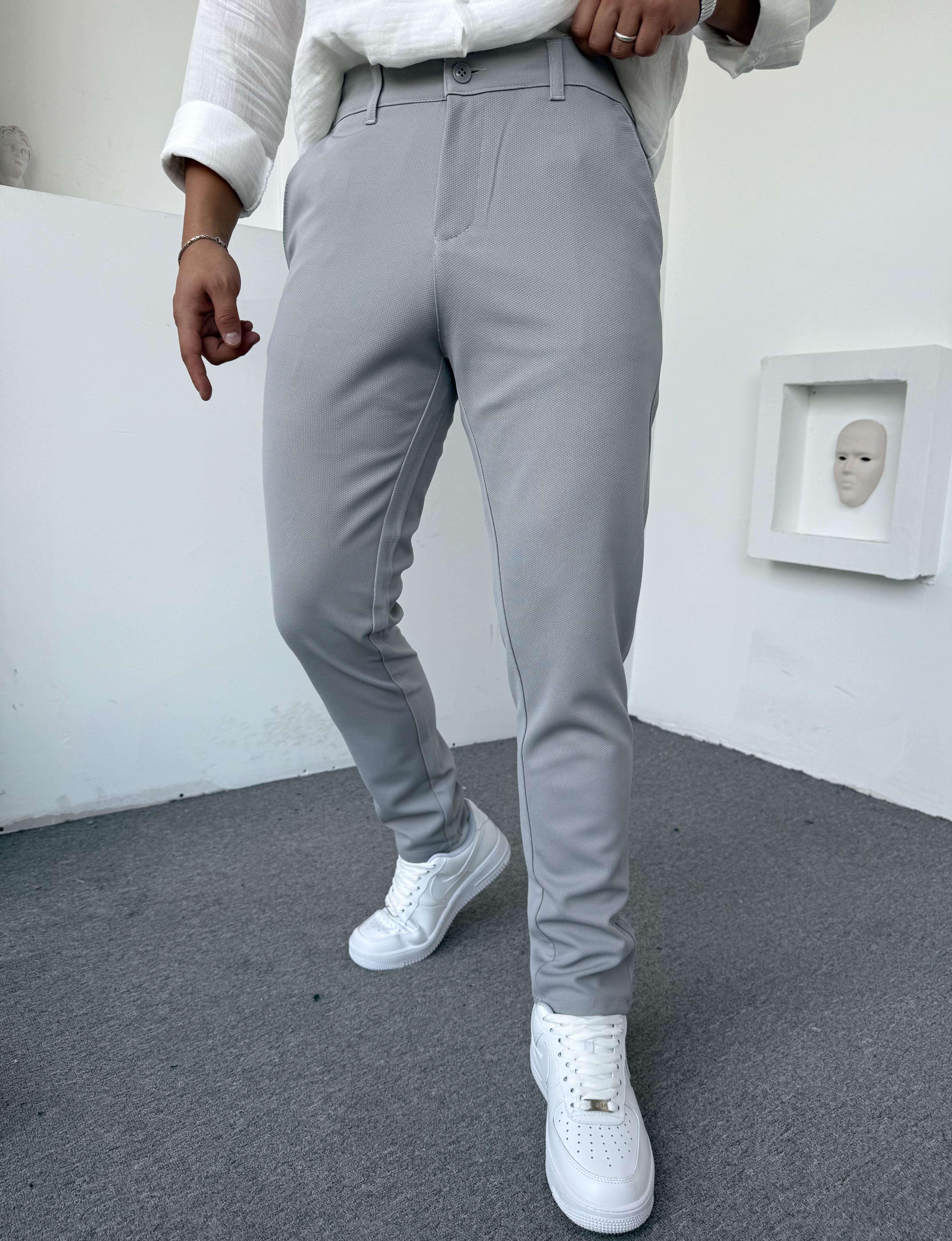 GRAMAJLI ÖRME KLASİK KUMAŞ PANTOLON GRİ
