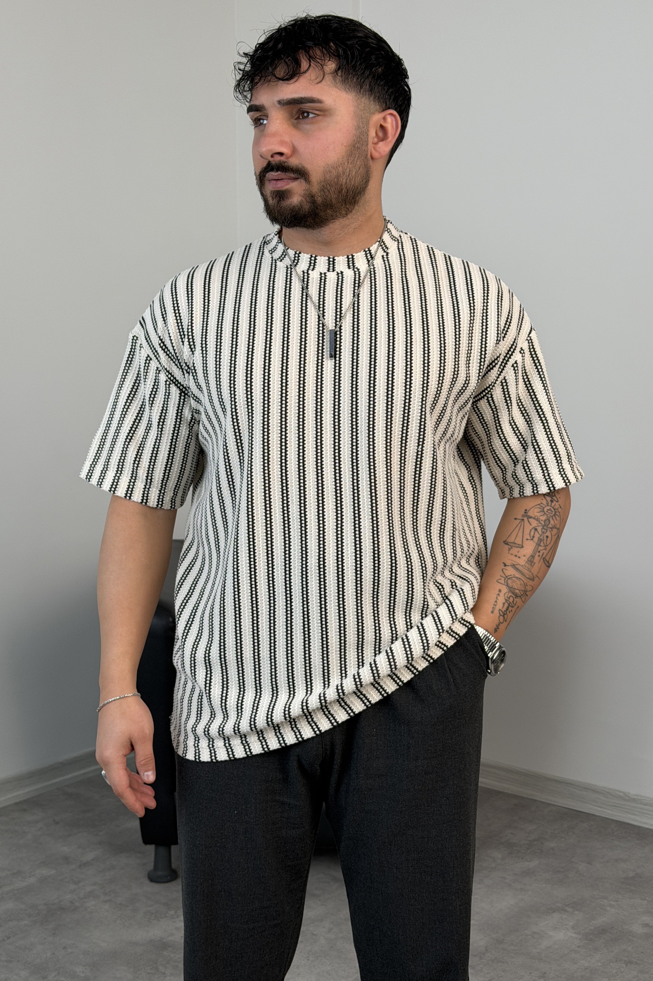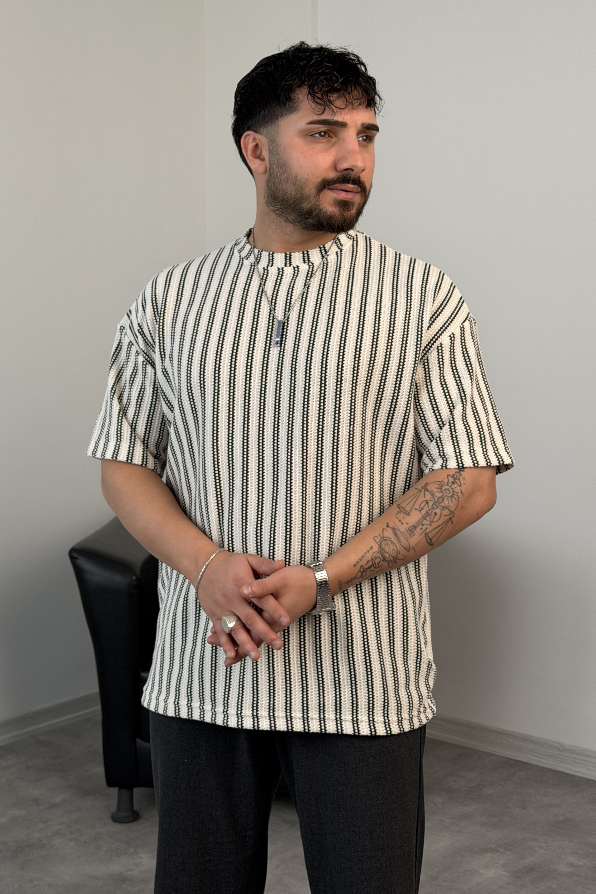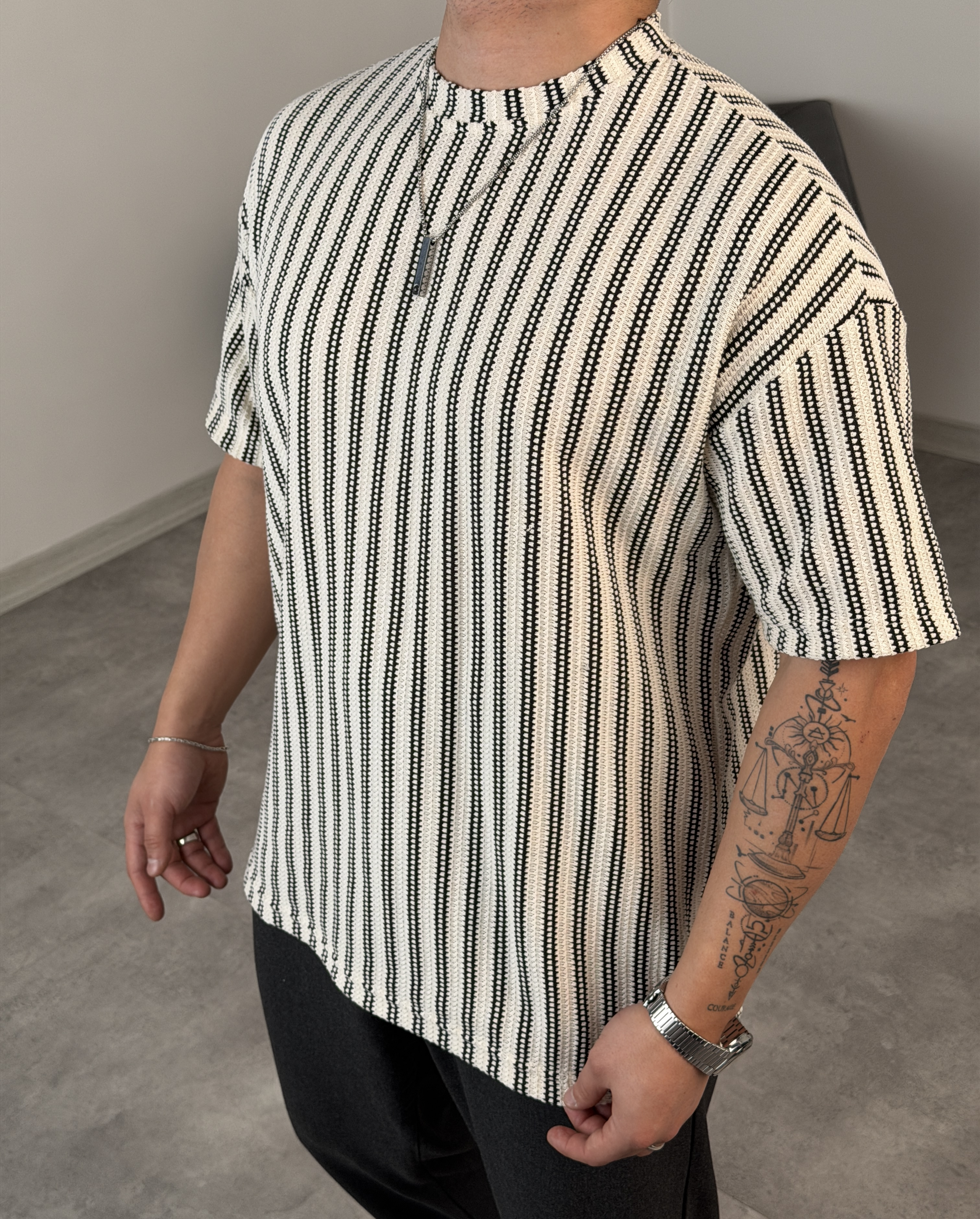 HALAT ÖRGÜ OVERSİZE TRİKO TİŞÖRT SİYAH