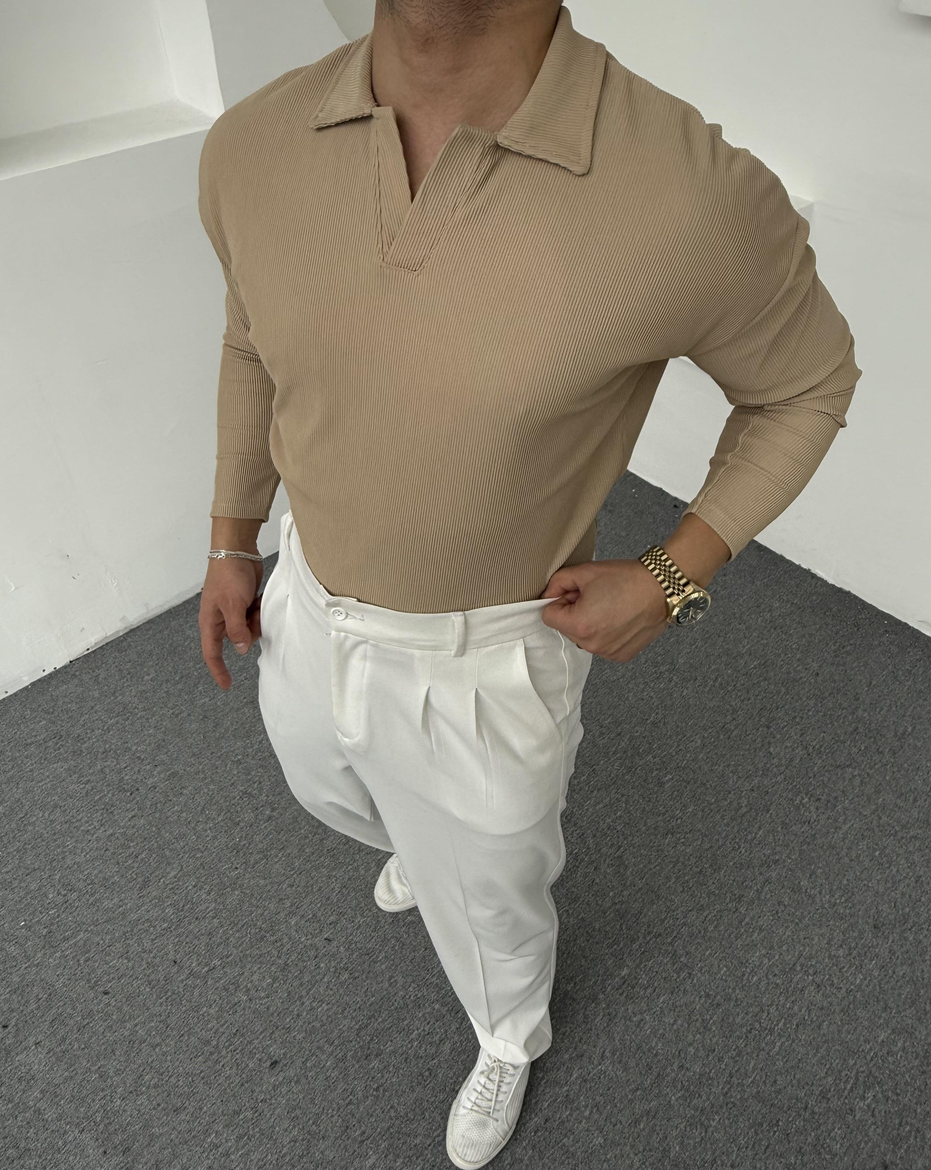 Hemşire Yaka Ottoman Uzunkol Sweatshirt Bej