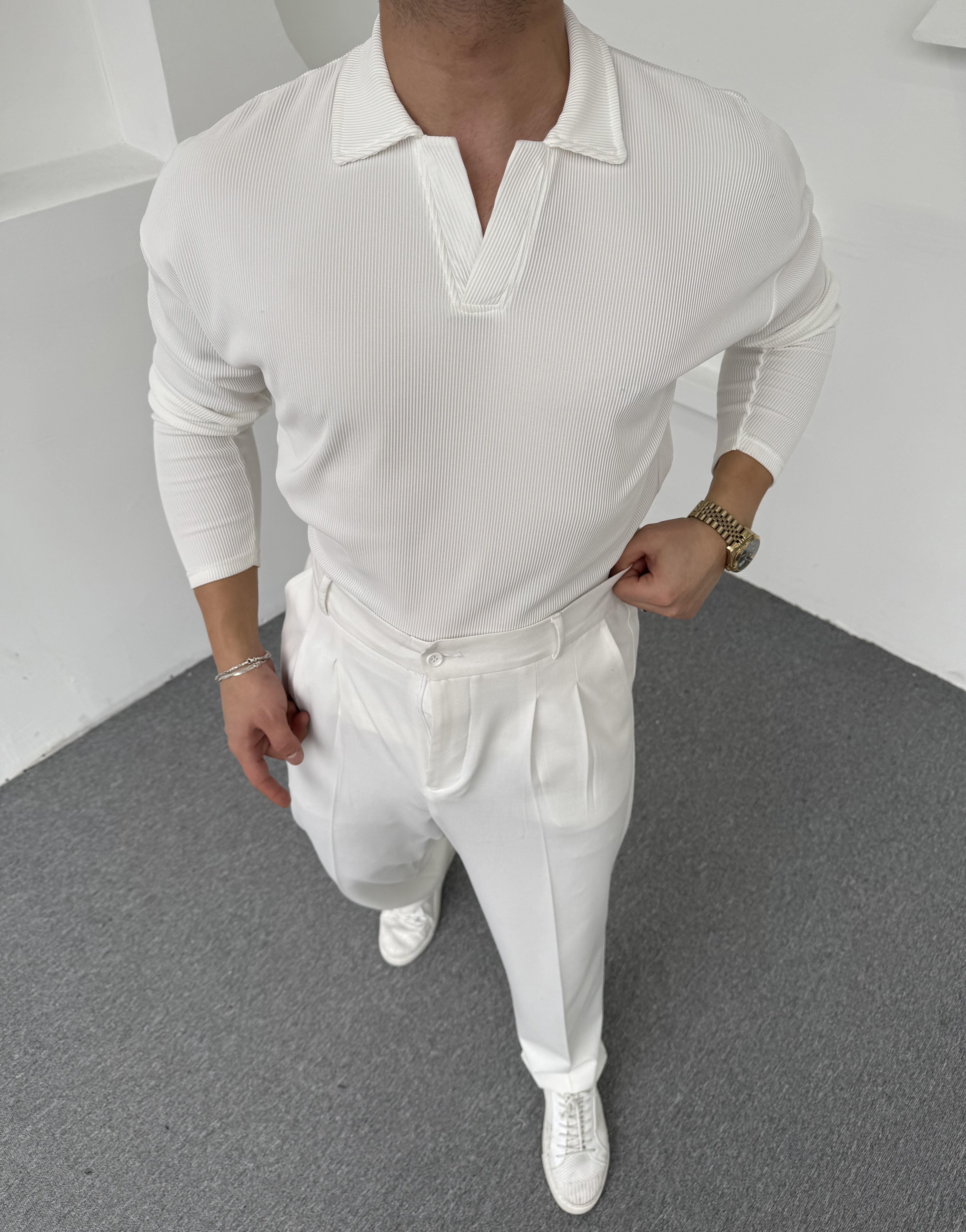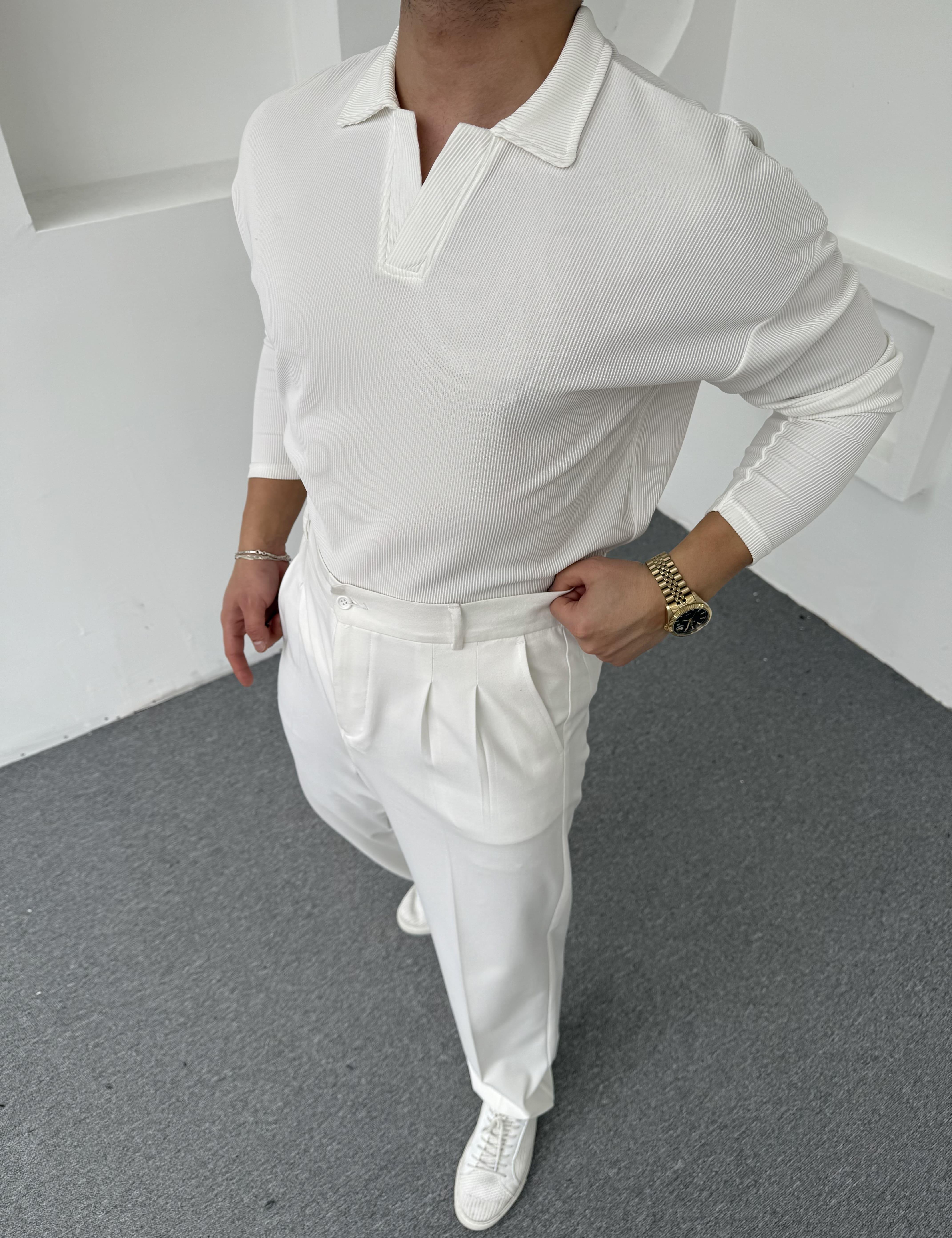 Hemşire Yaka Ottoman Uzunkol Sweatshirt Beyaz