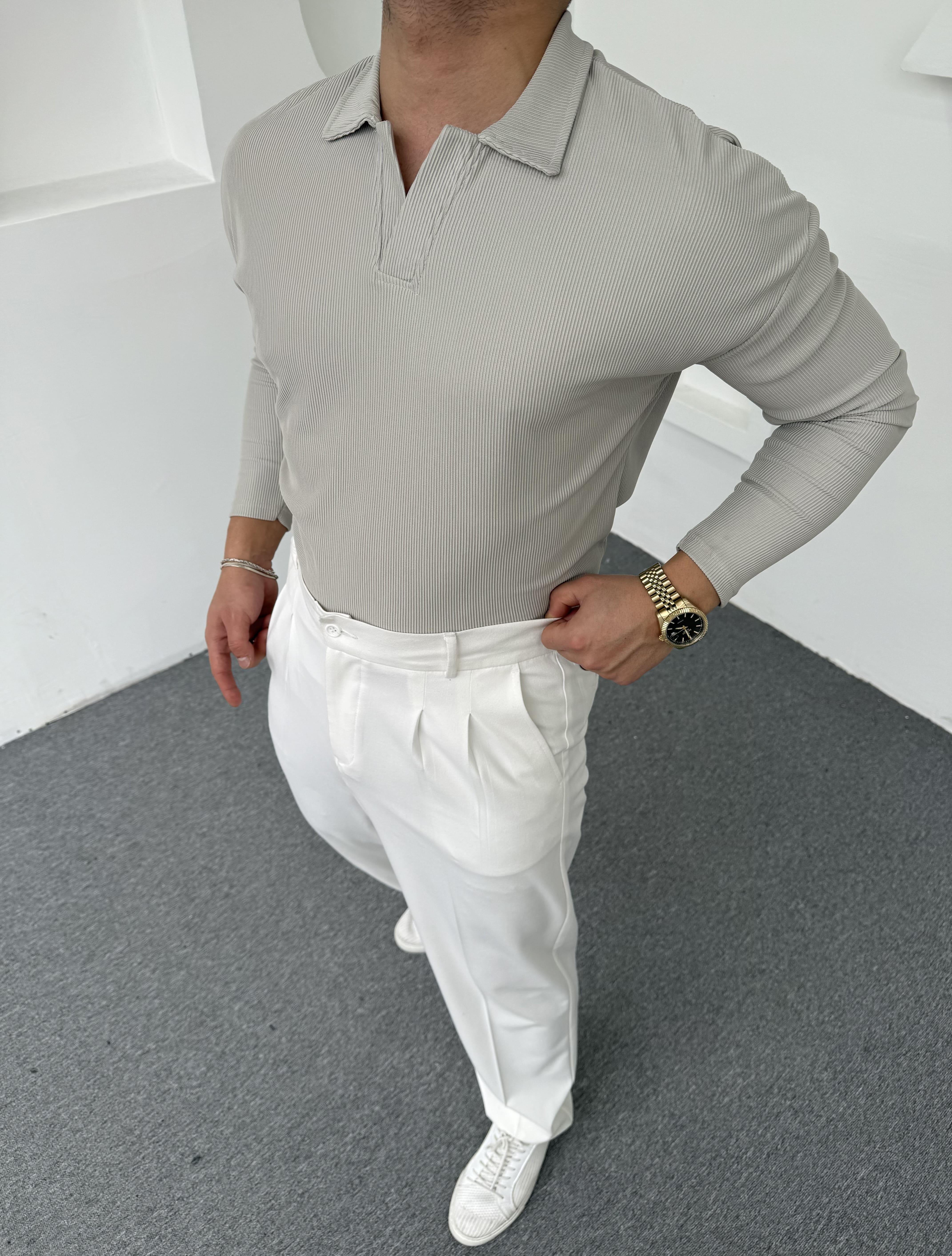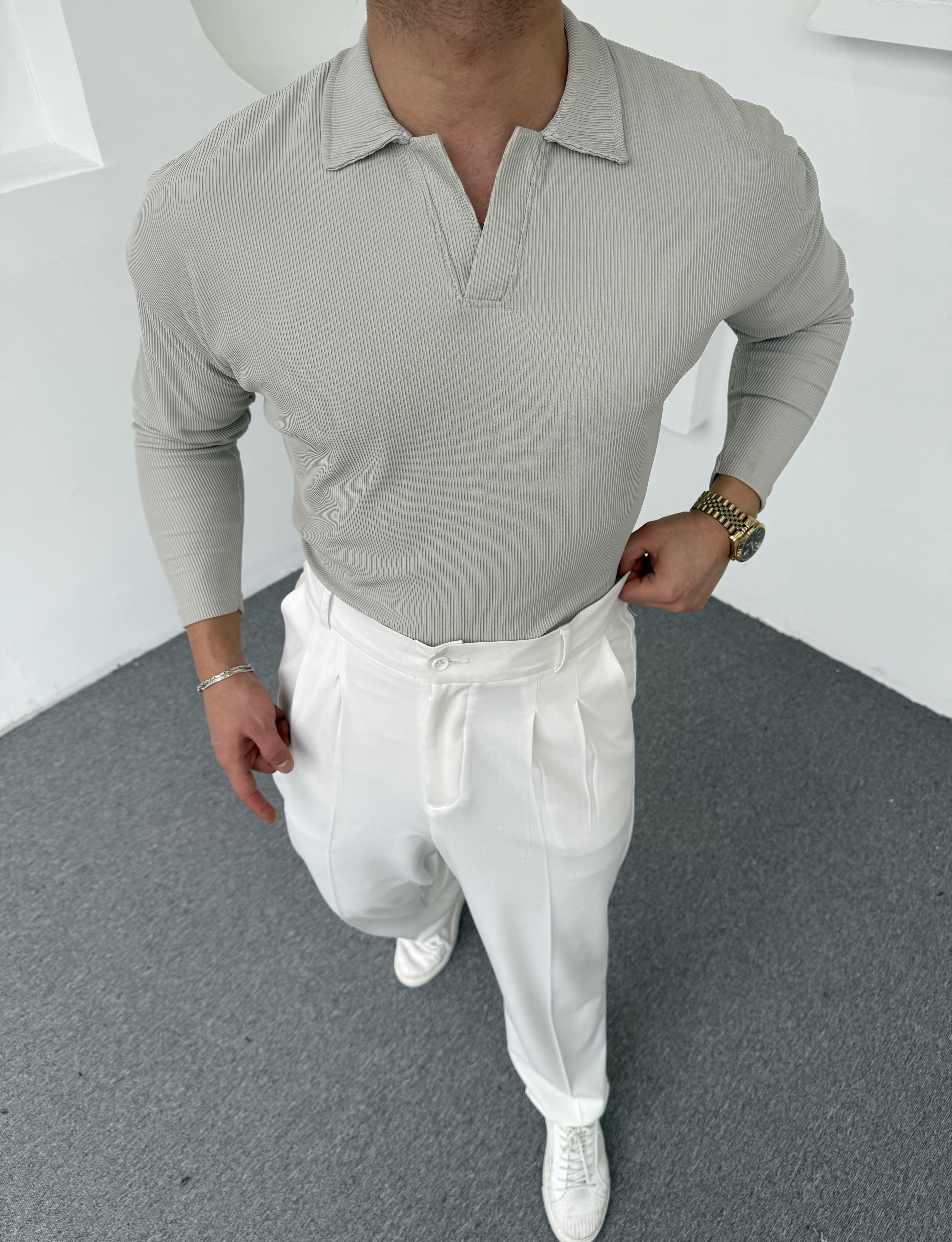 Hemşire Yaka Ottoman Uzunkol Sweatshirt Gri