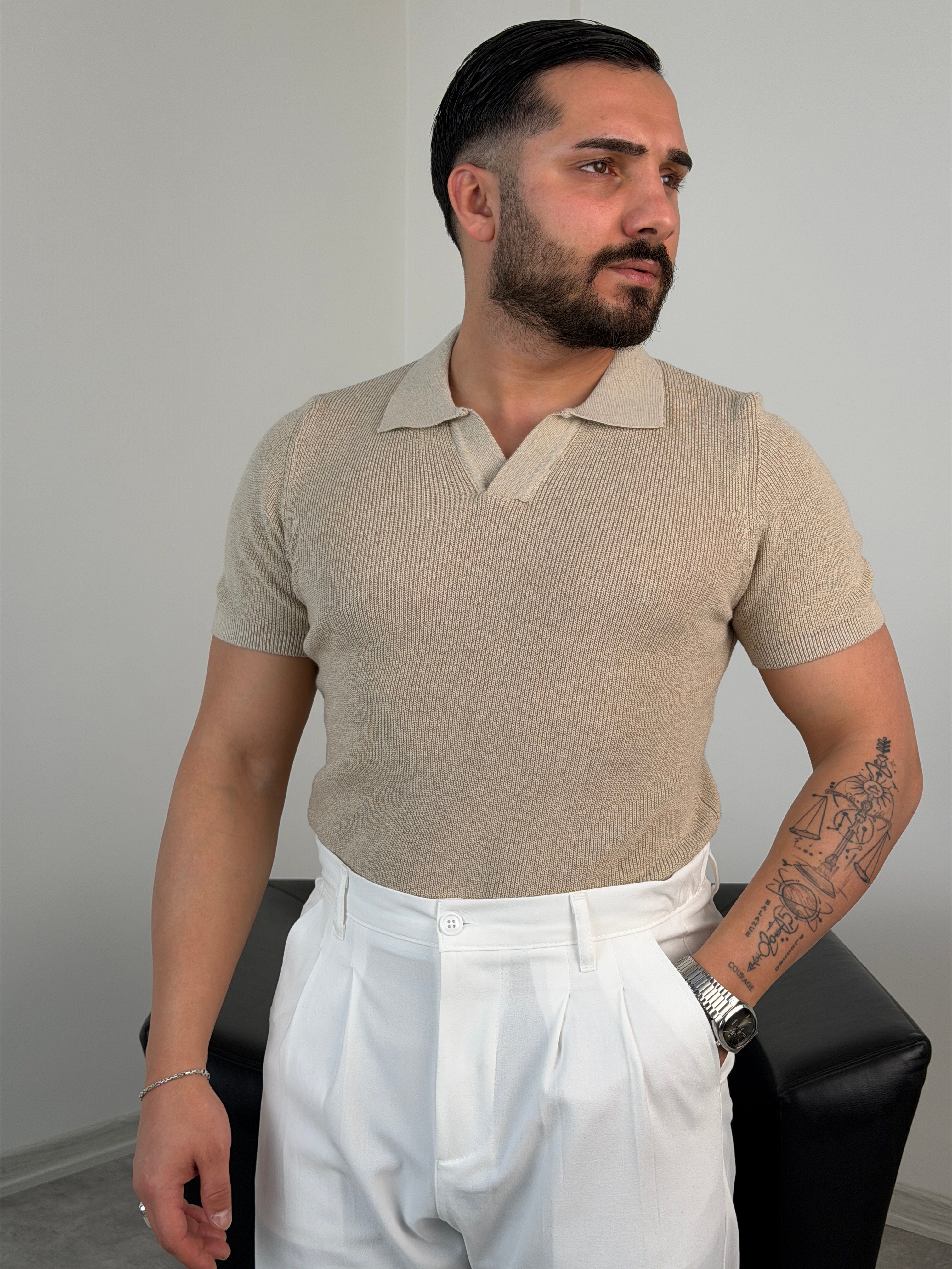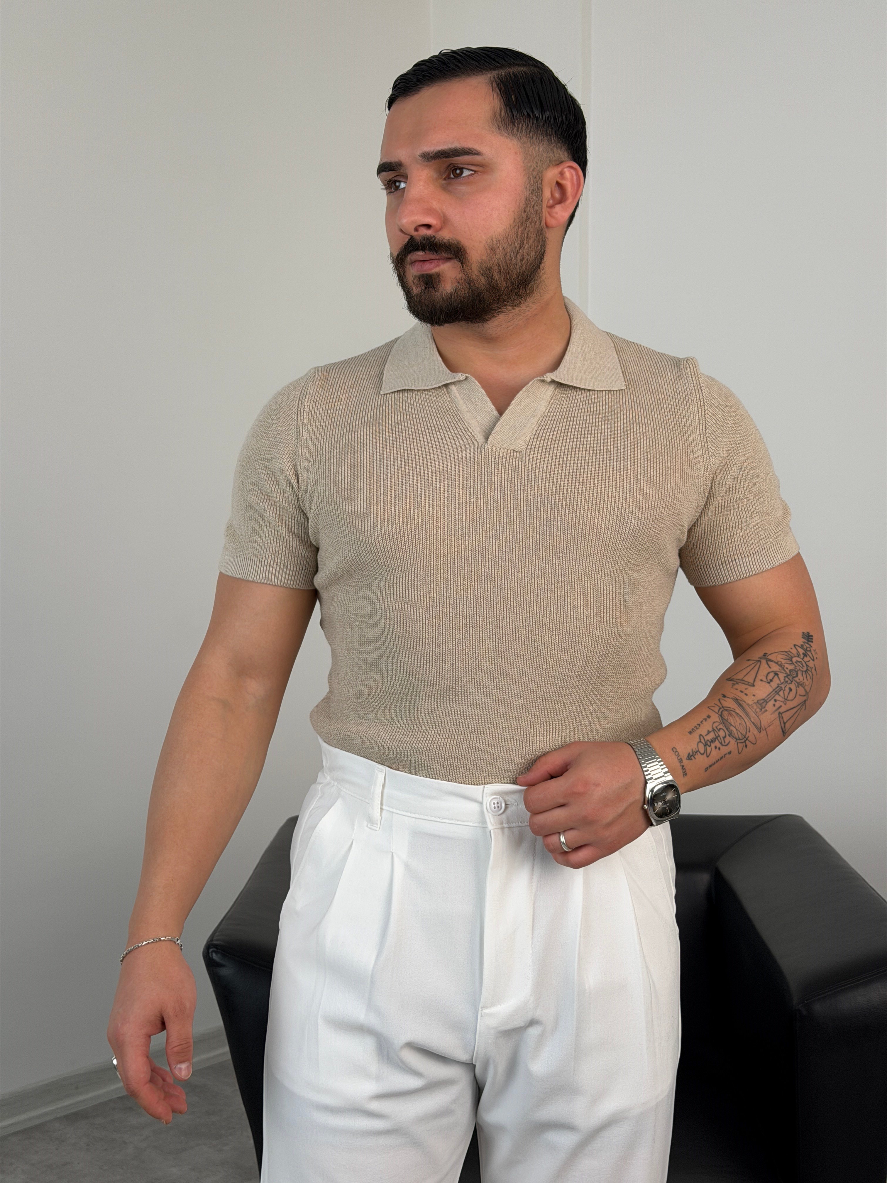 HFA AÇMA YAKA %100 PAMUK TRİKO TİŞÖRT BEJ