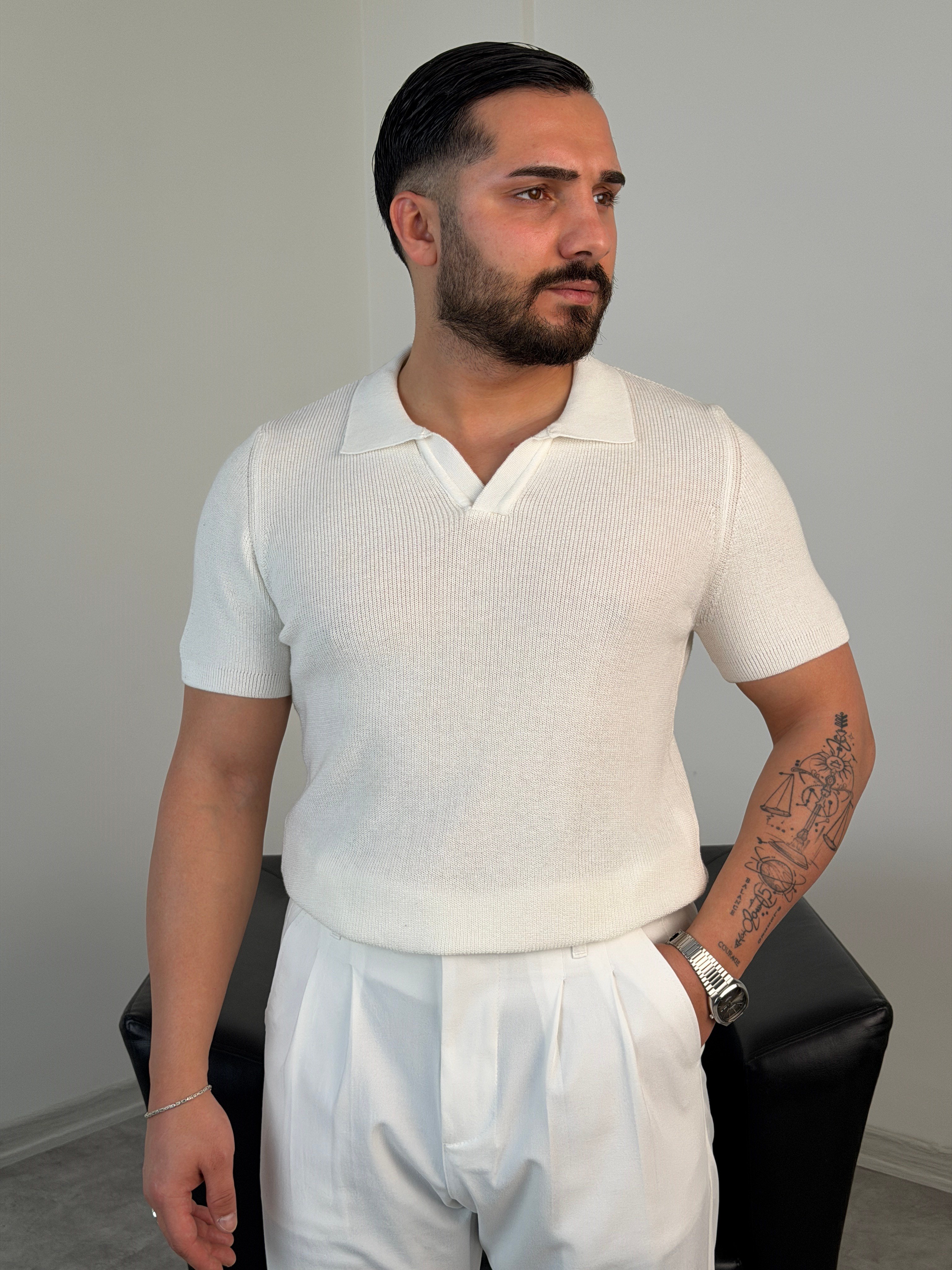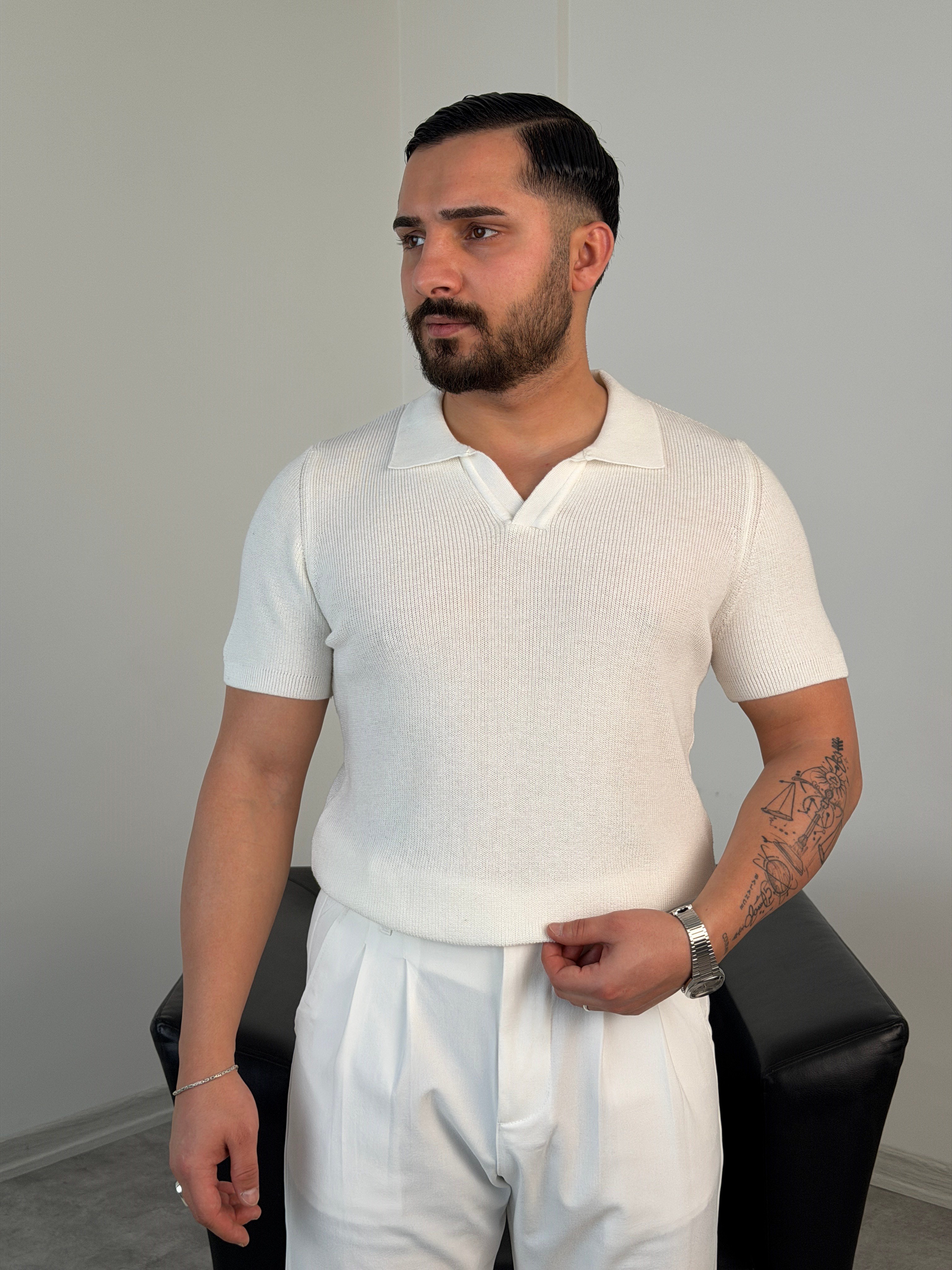HFA AÇMA YAKA %100 PAMUK TRİKO TİŞÖRT BEYAZ