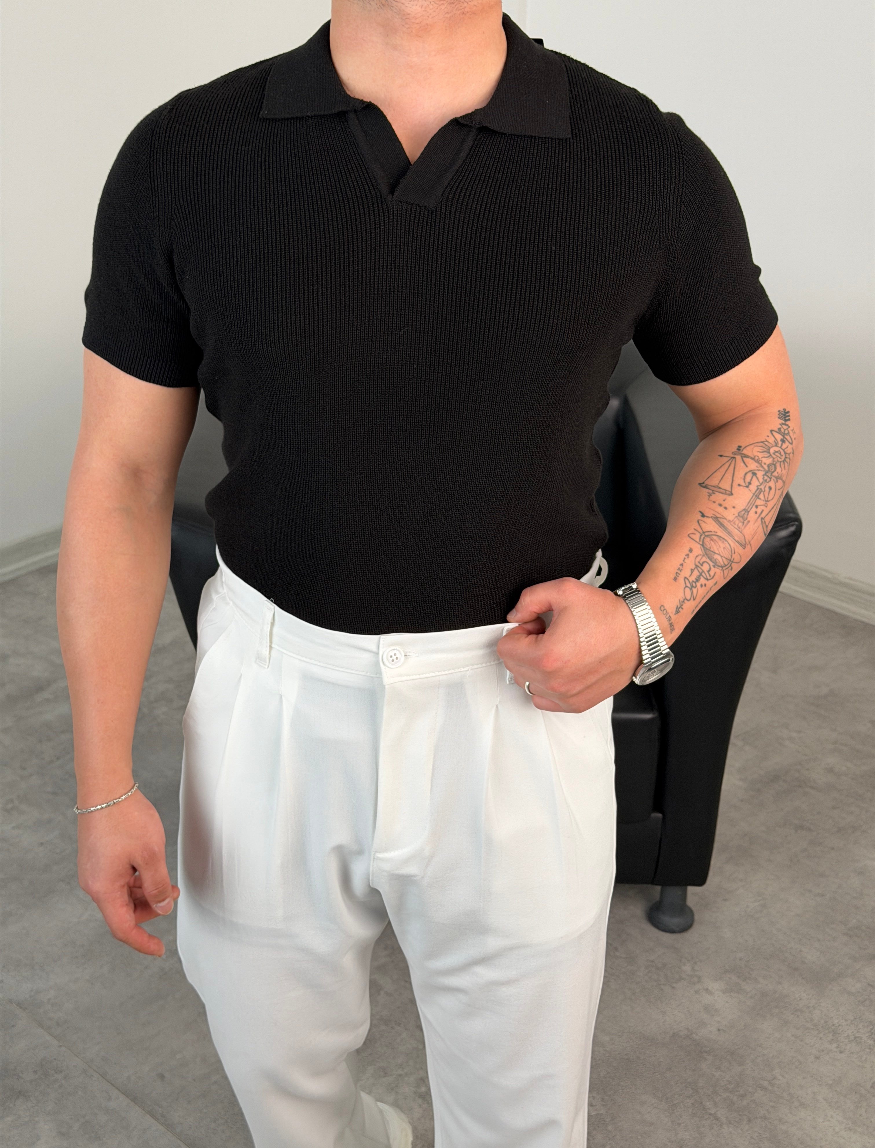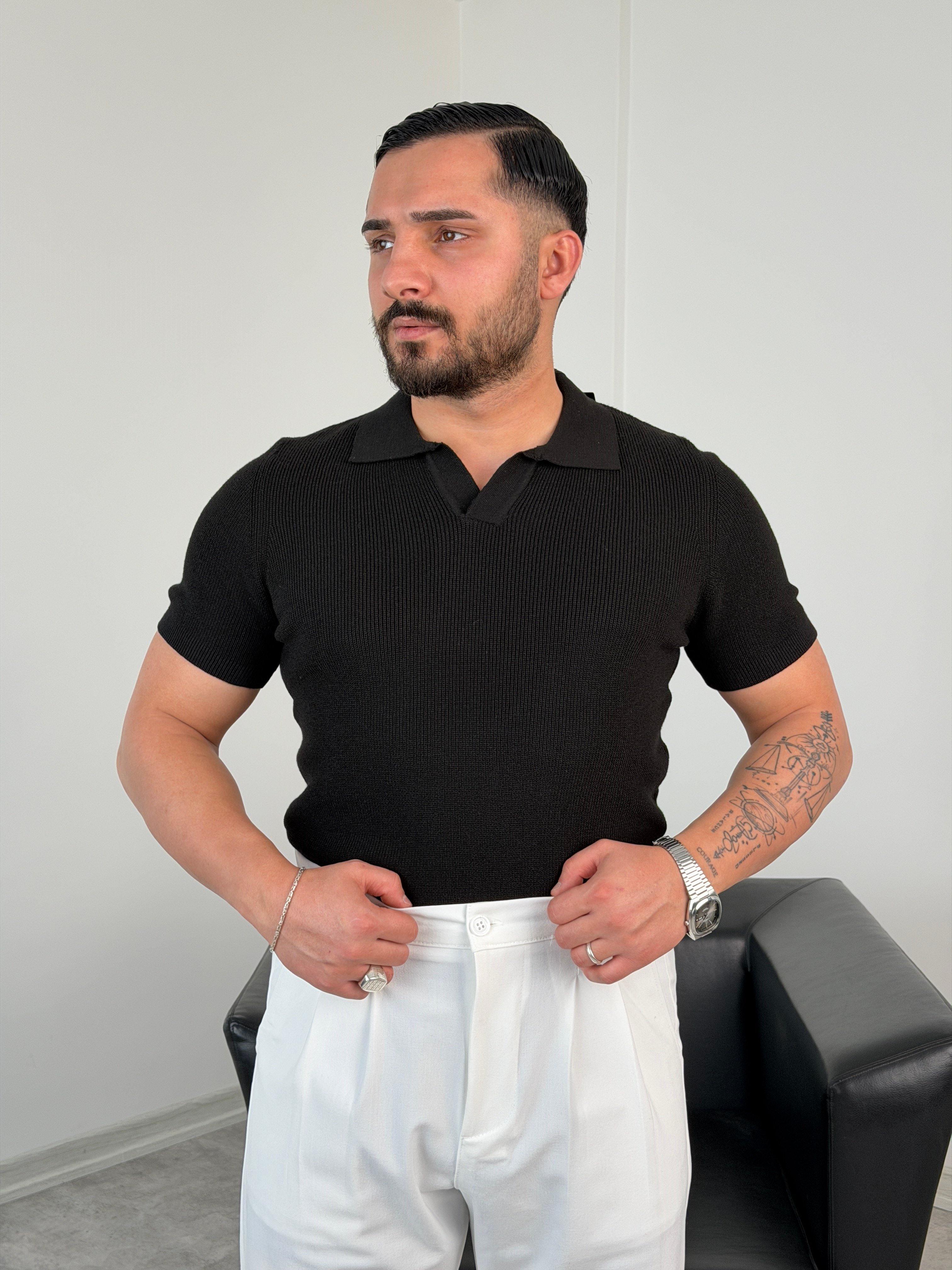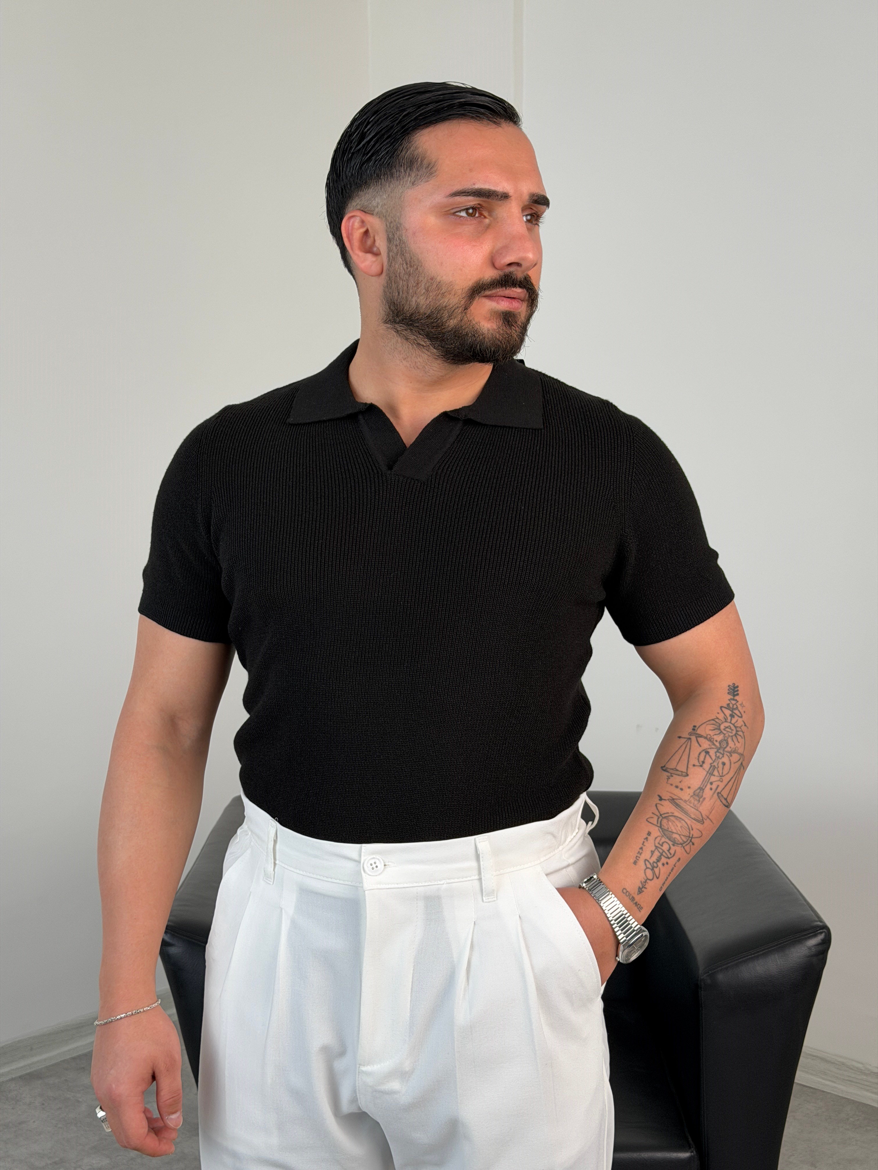 HFA AÇMA YAKA %100 PAMUK TRİKO TİŞÖRT SİYAH