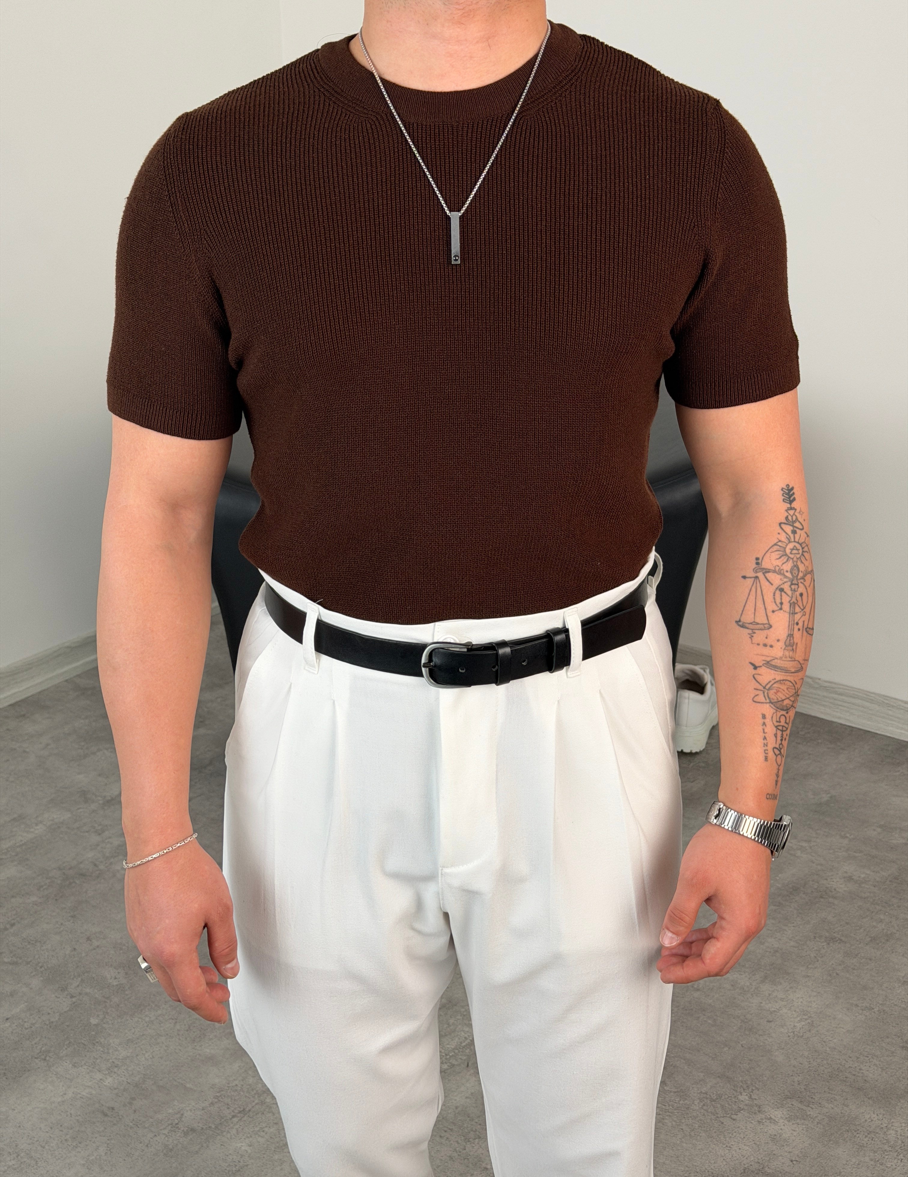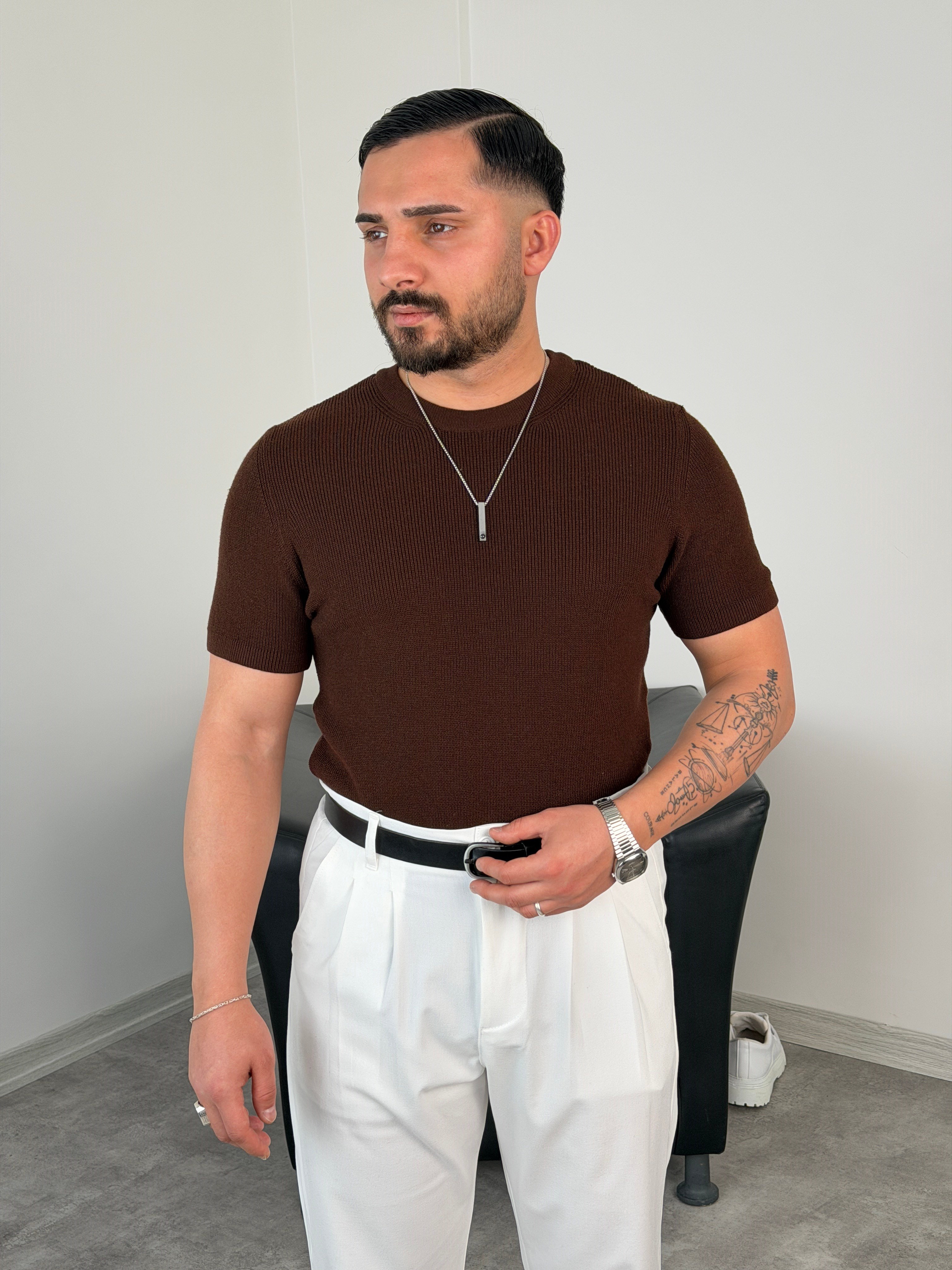 HFA BİSİKLET YAKA PAMUK TRİKO TİŞÖRT ACI KAHVE
