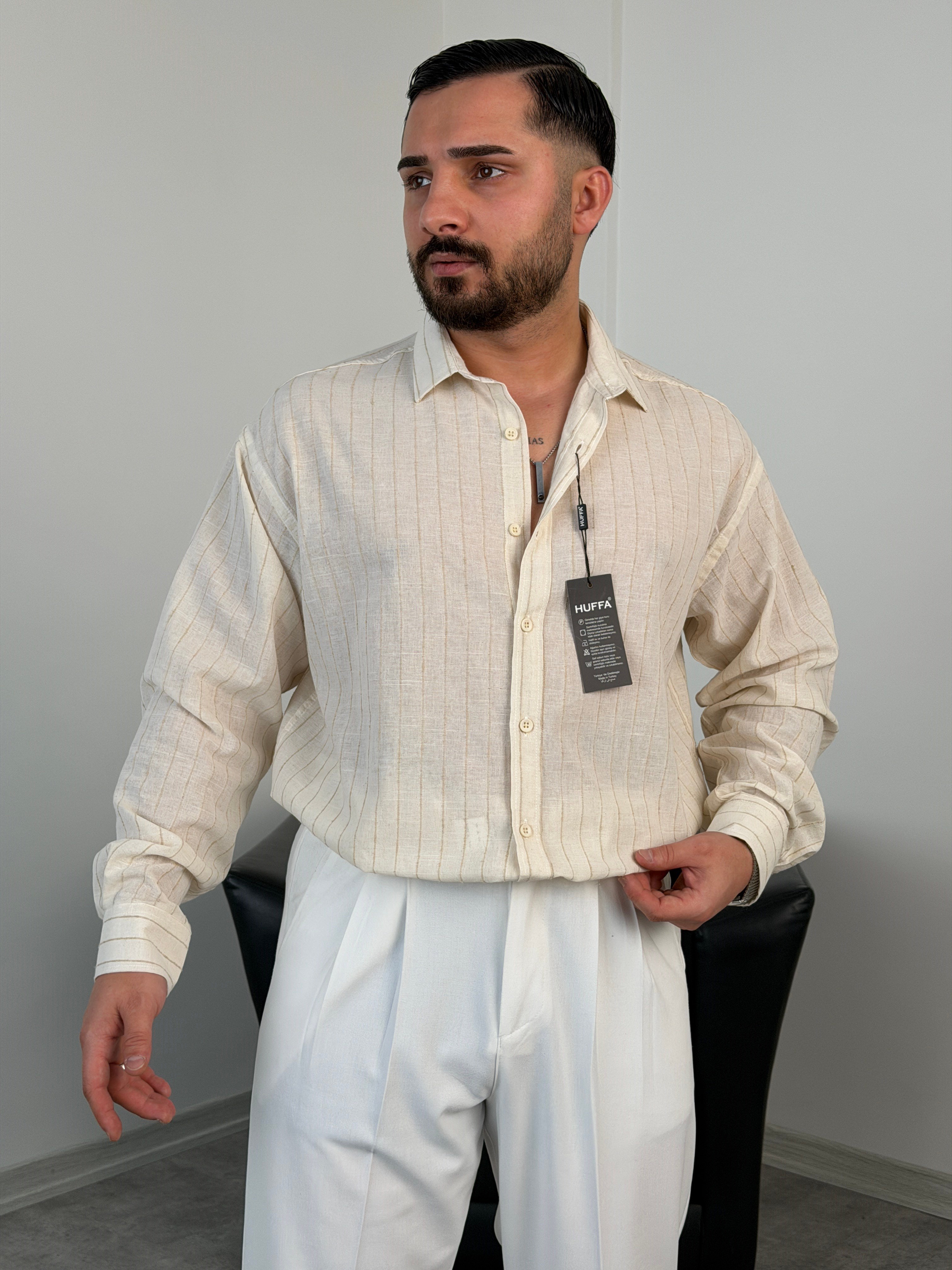 HFA İNCE ÇİZGİ PAMUK KETEN GÖMLEK KIRIK BEYAZ