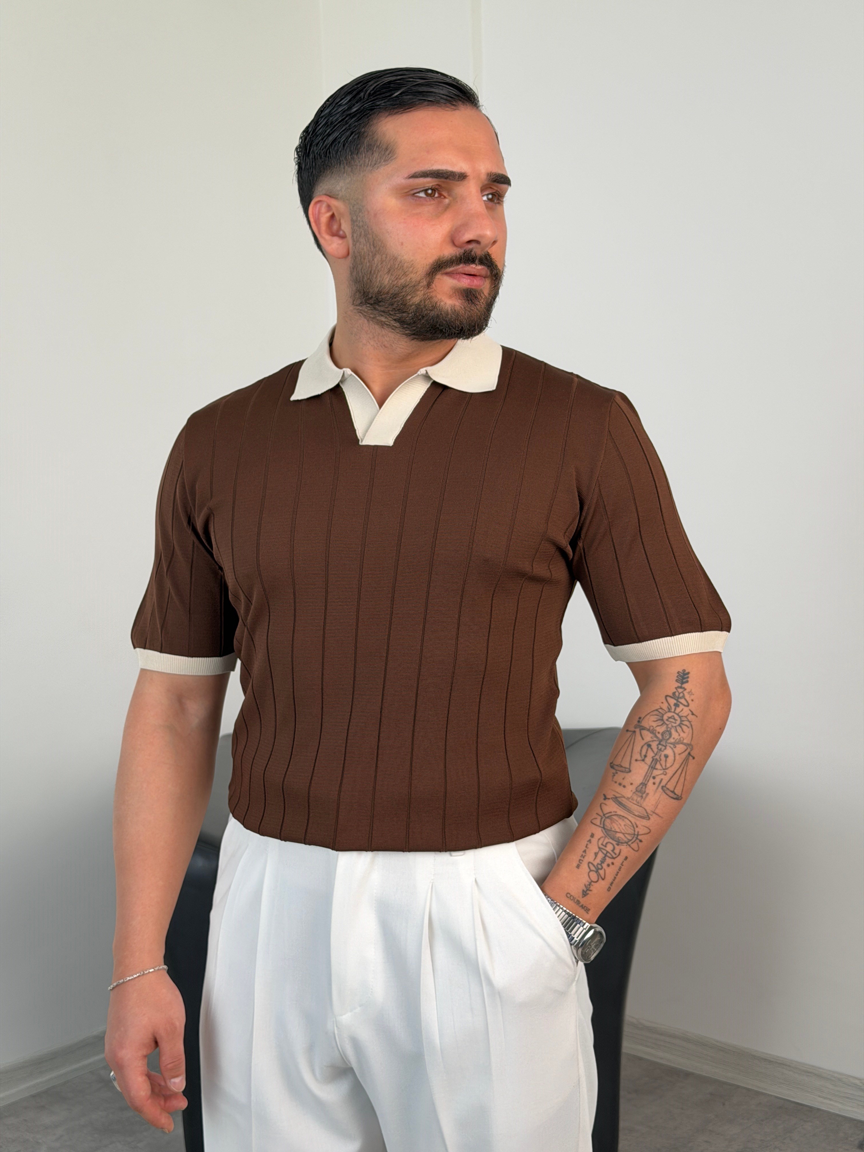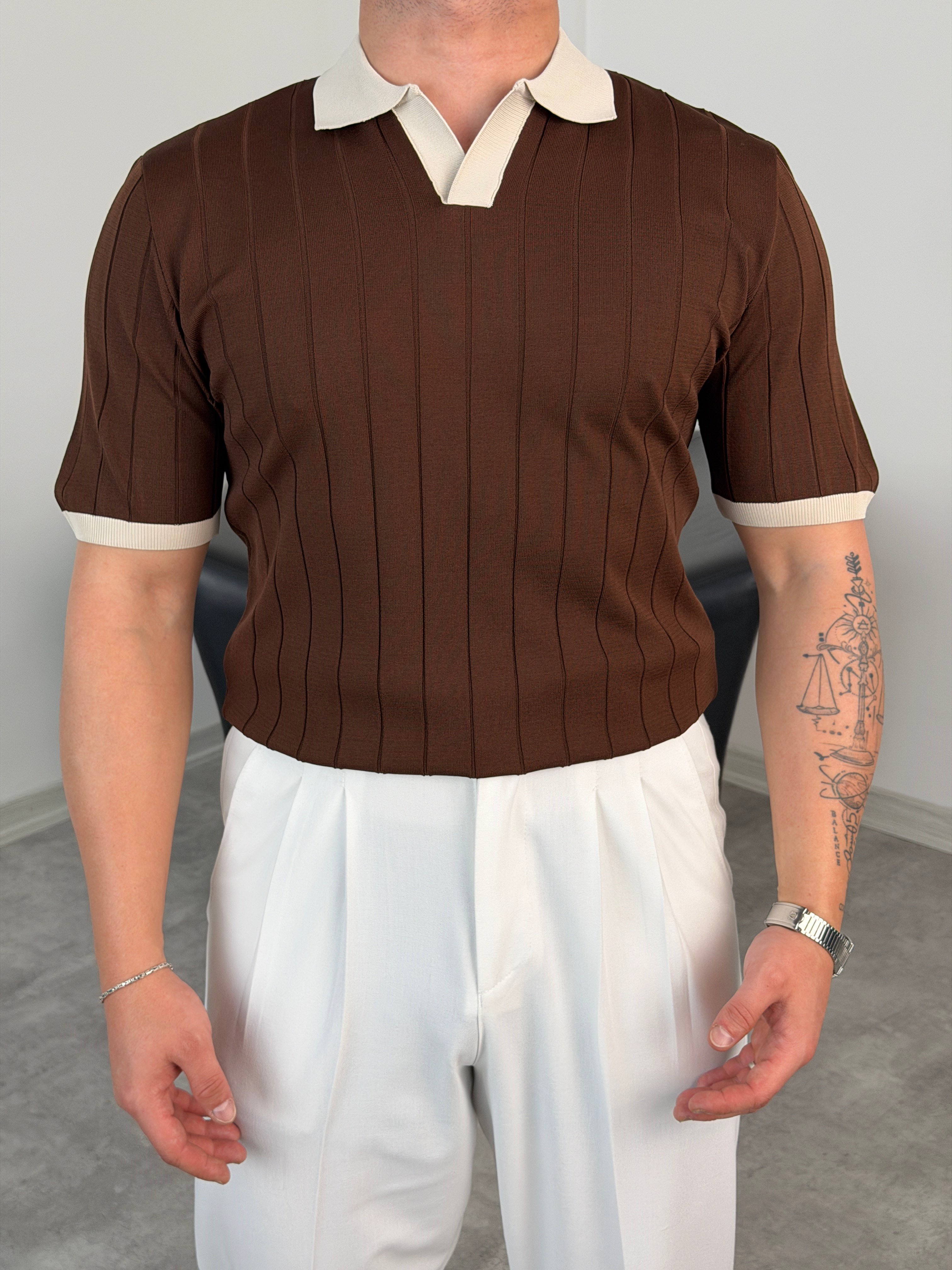 HFA YAKA RENKLİ TRİKO TİŞÖRT ACI KAHVE