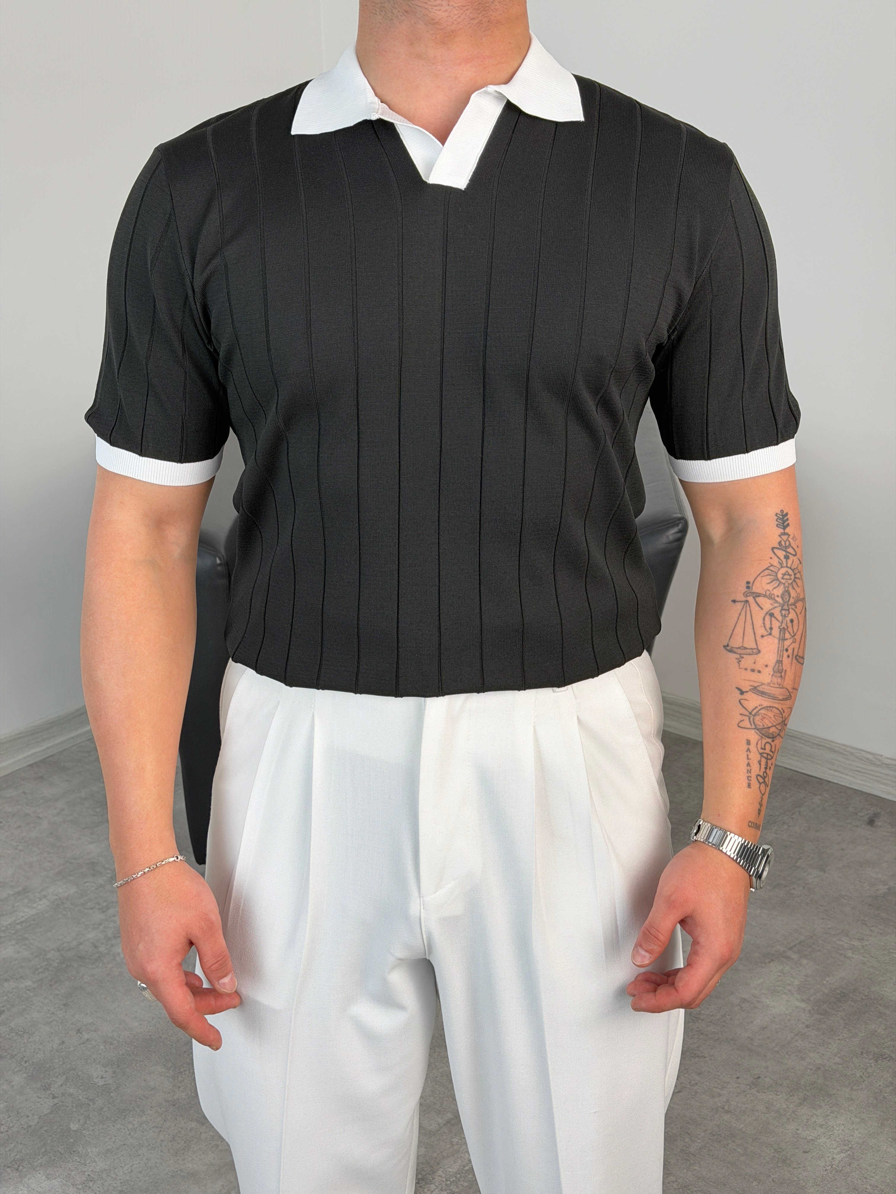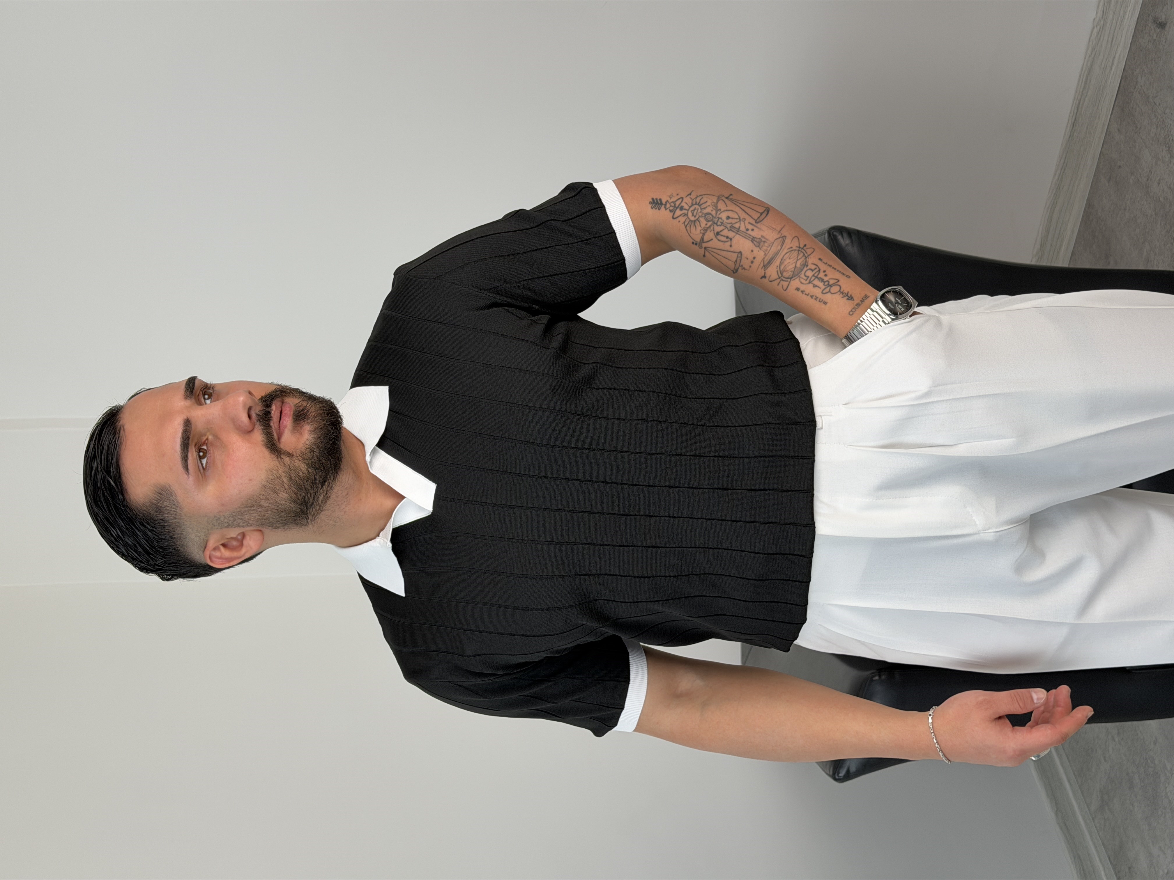 HFA YAKA RENKLİ TRİKO TİŞÖRT SİYAH