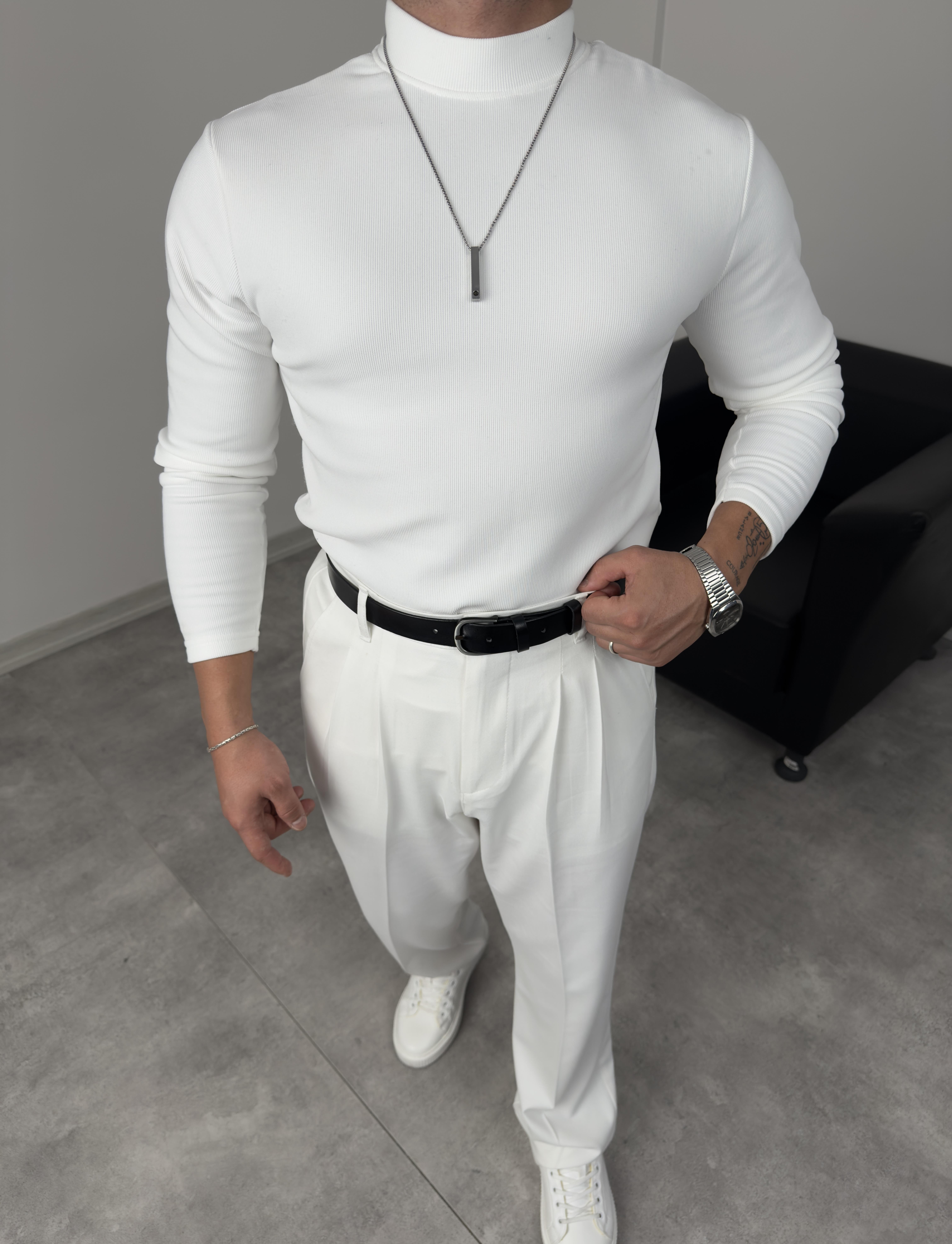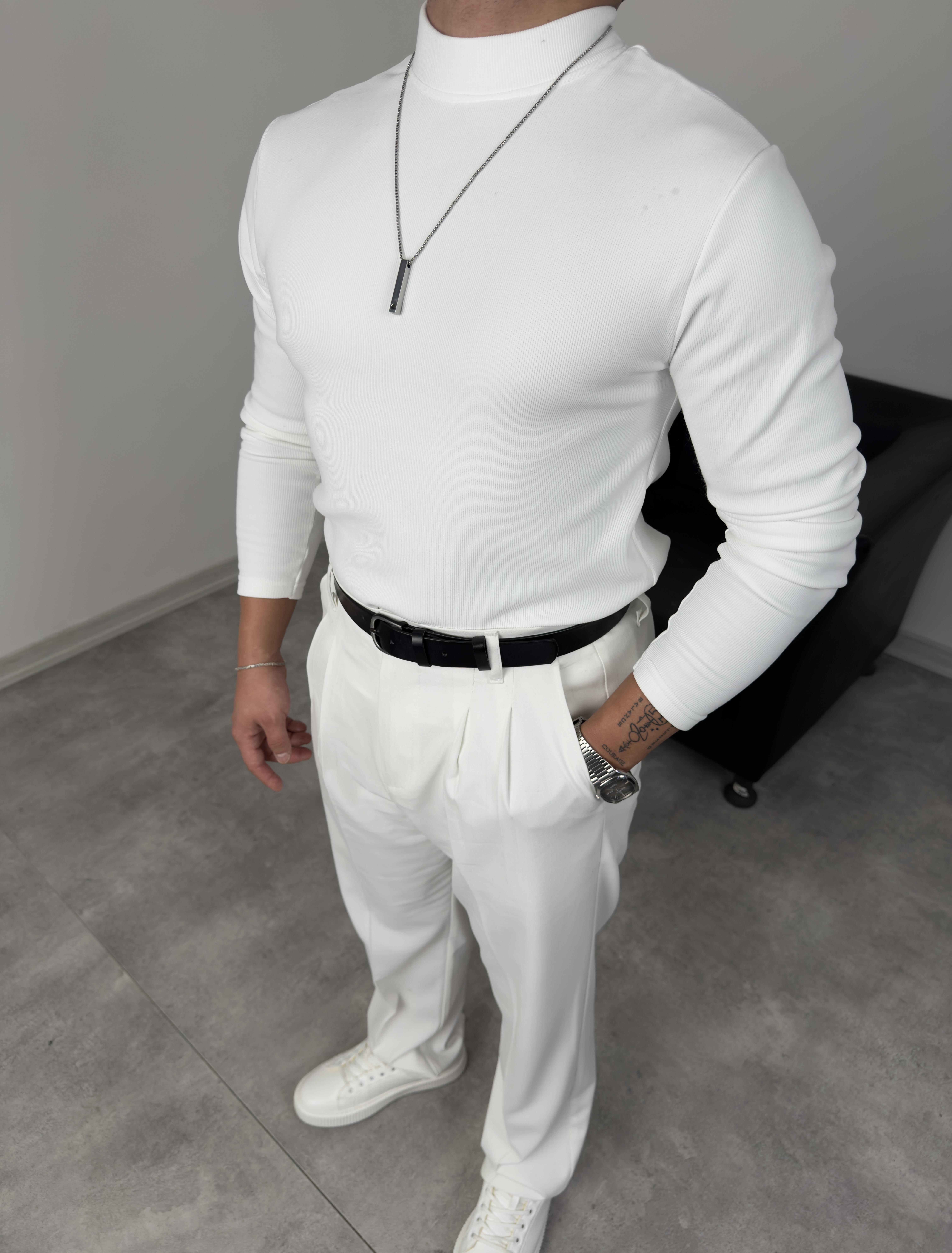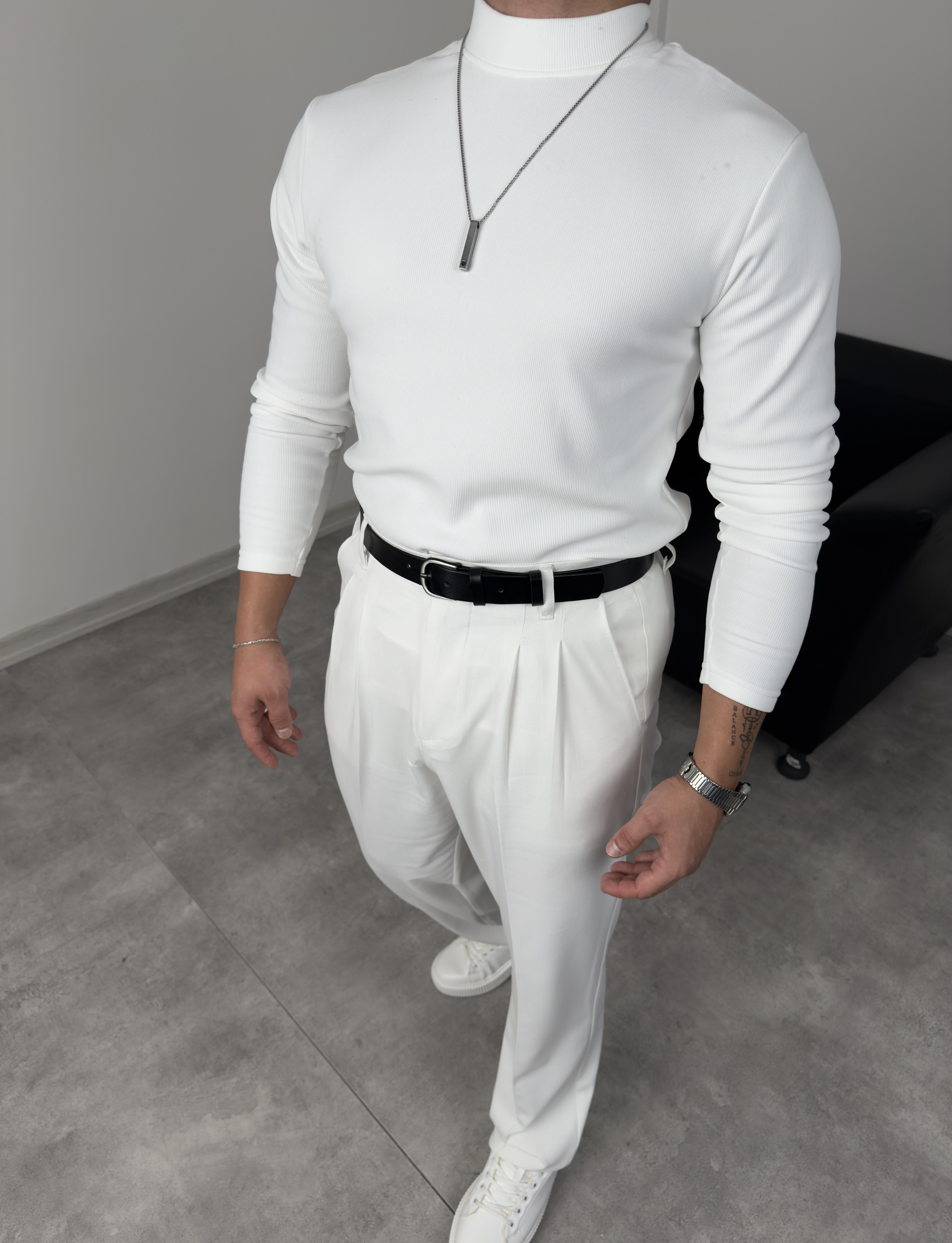 İÇERİSİ PAMUKLU BALIKÇI YAKA SWEATSHİRT BEYAZ