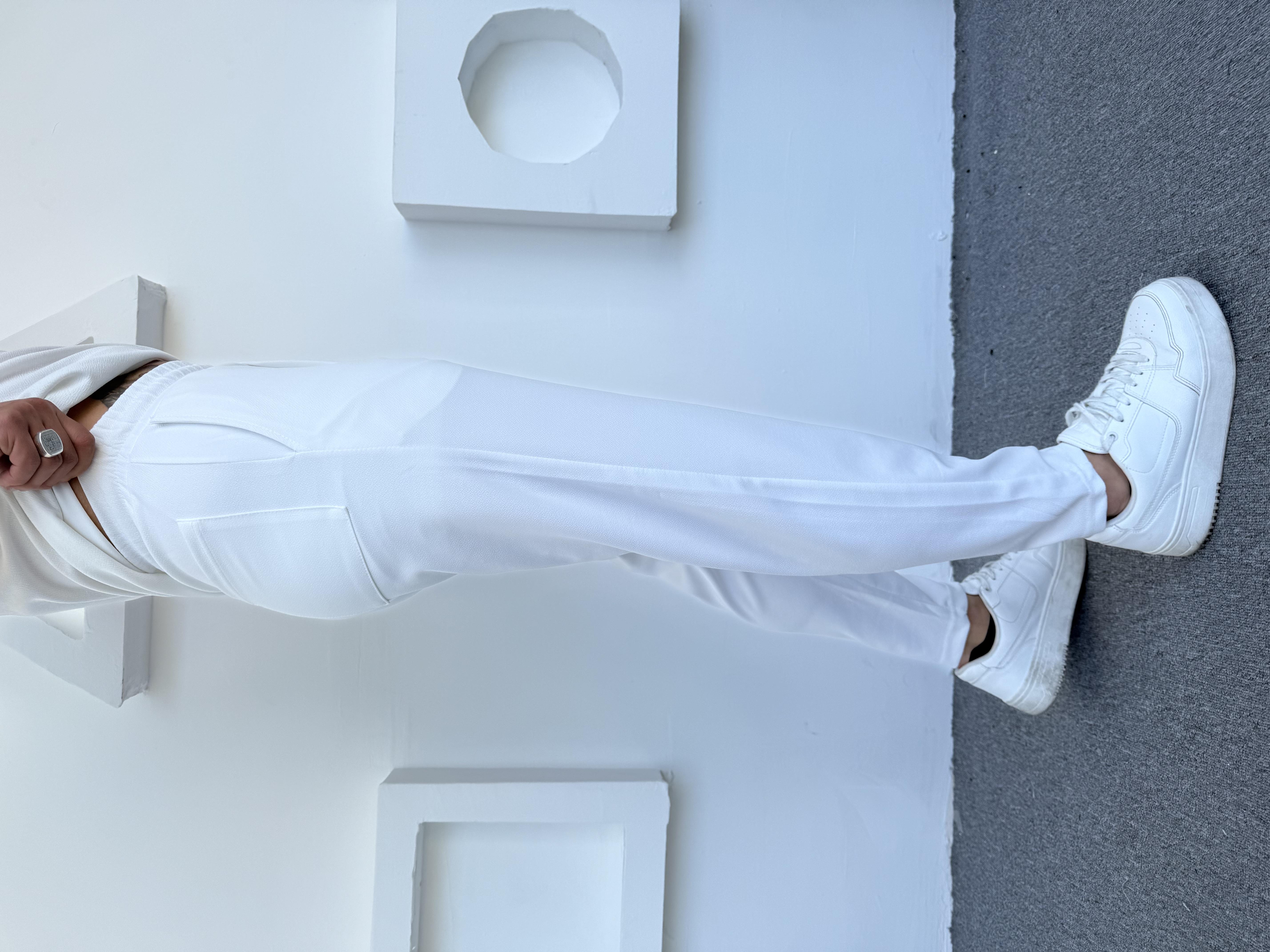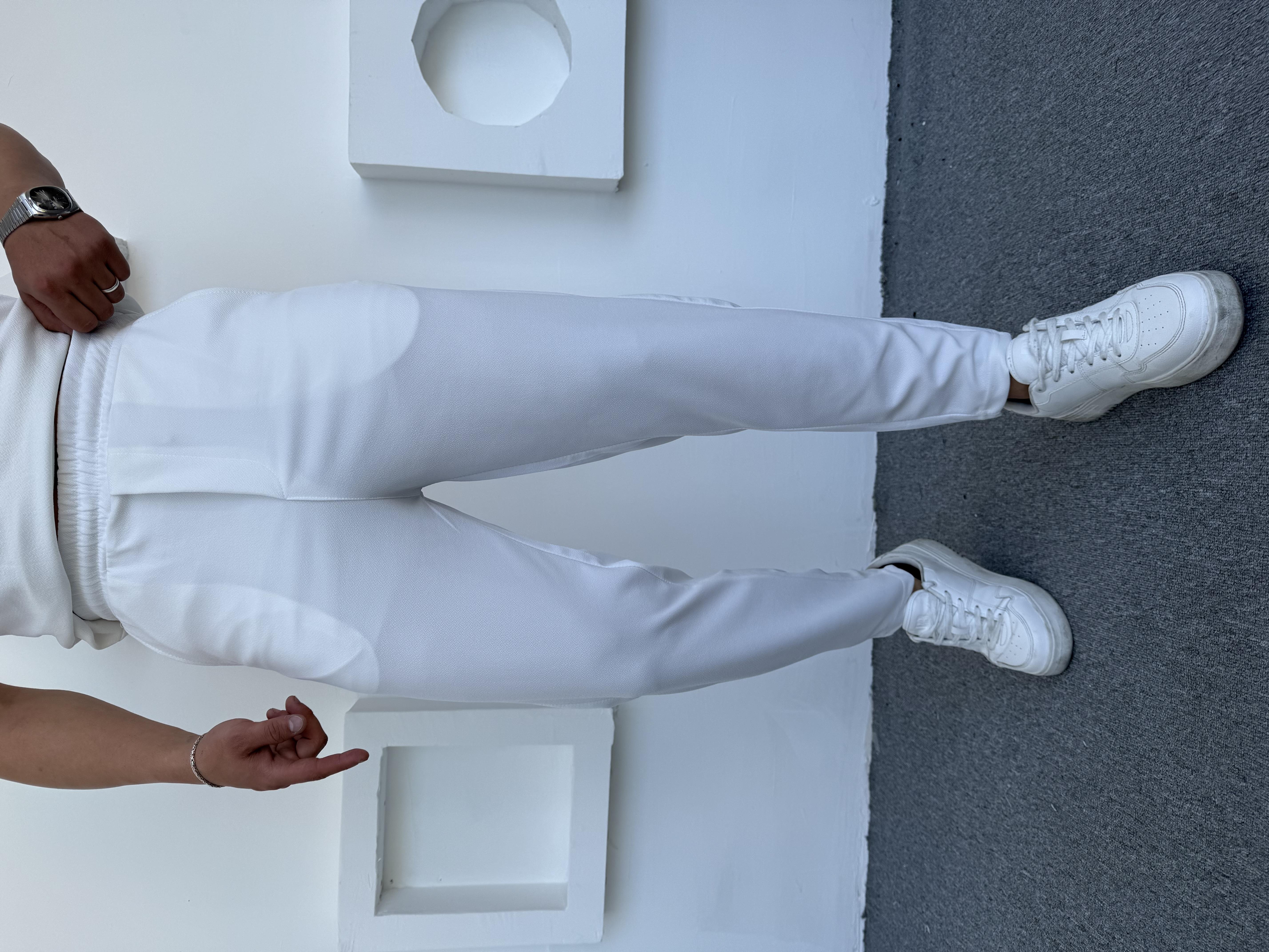 İthal Crap Kumaş Boyfriend Pantolon Beyaz