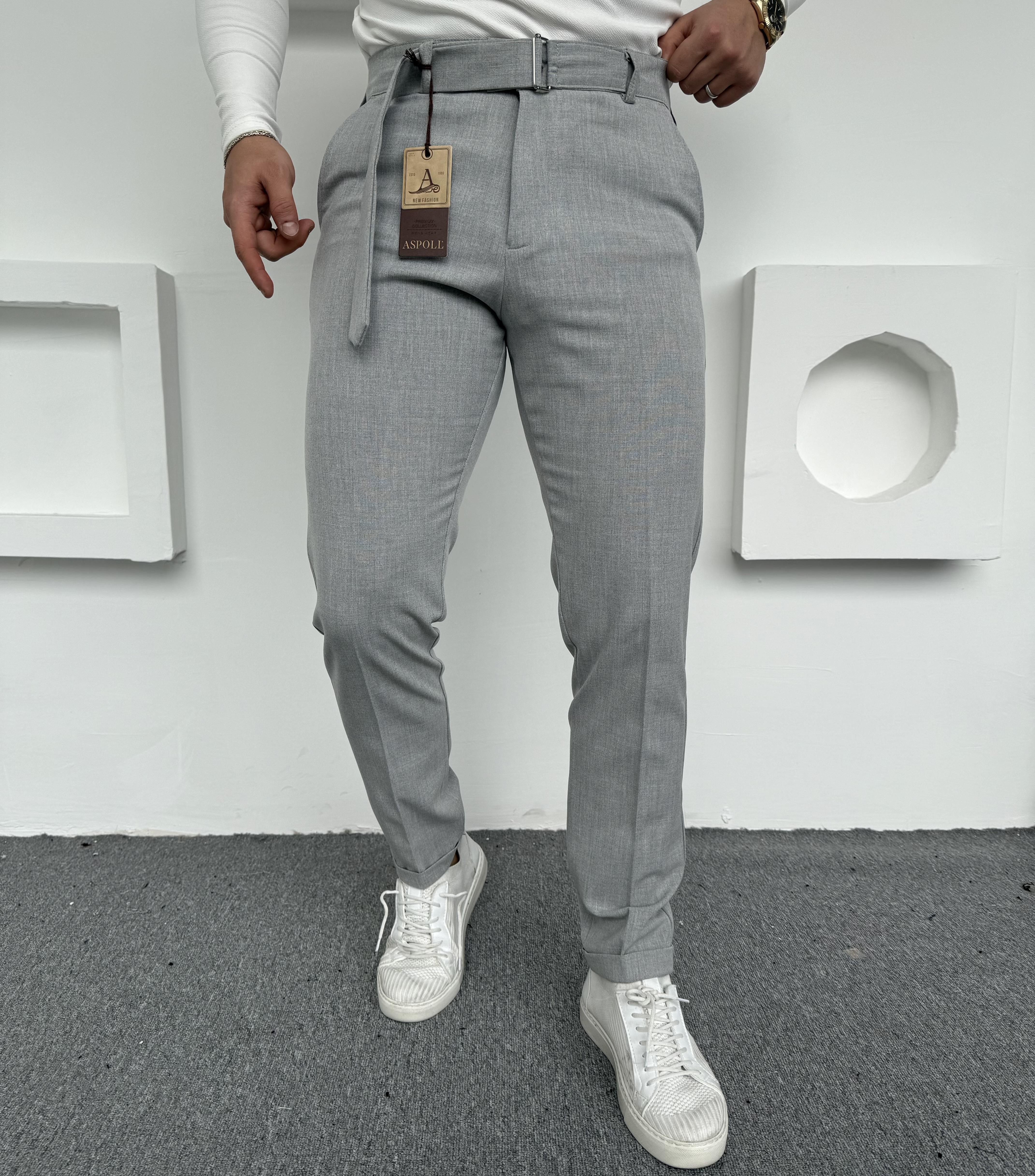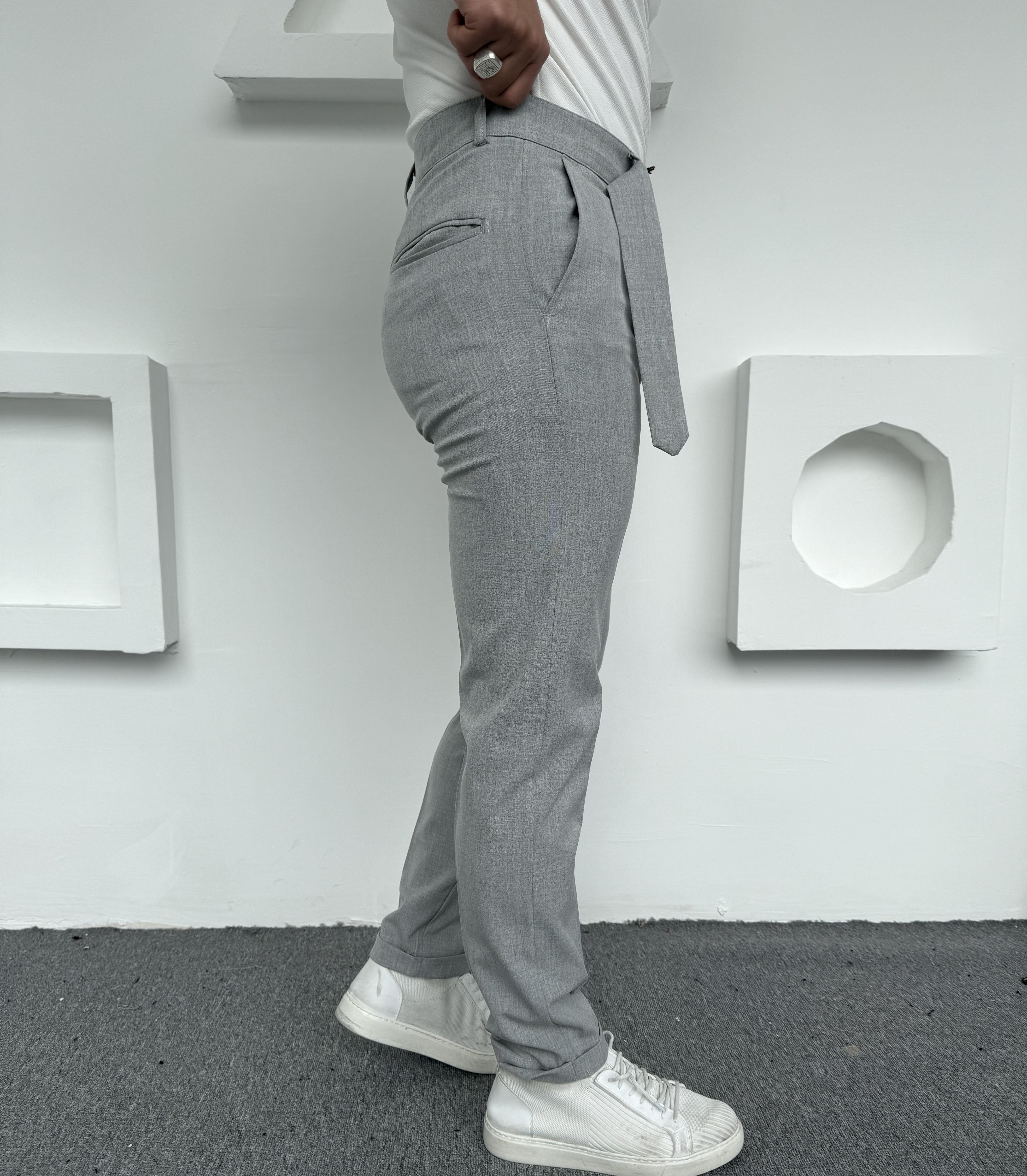 Kendinden Kemerli Premium Kumaş Pantolon Gri