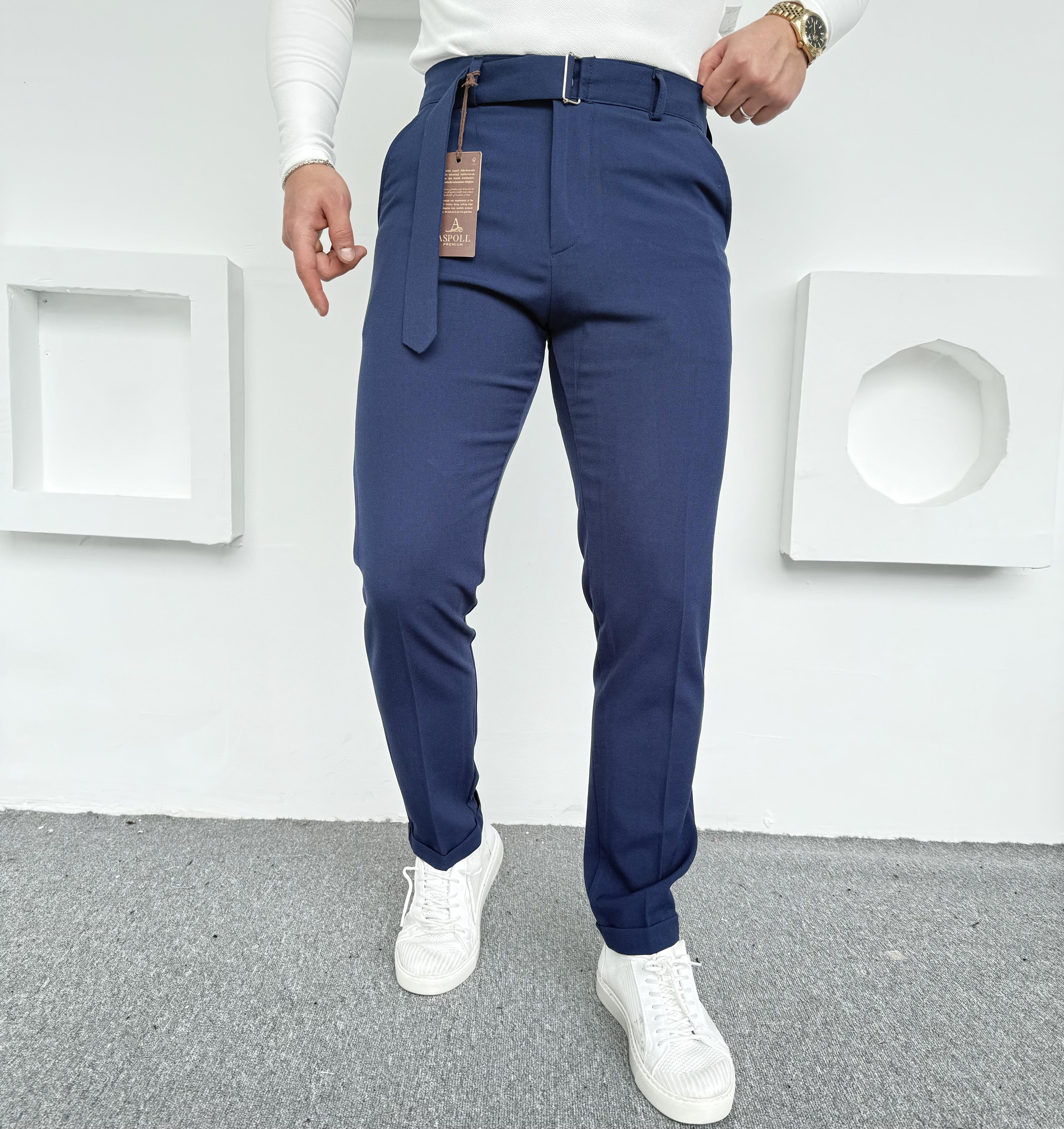 Kendinden Kemerli Premium Kumaş Pantolon Lacivert