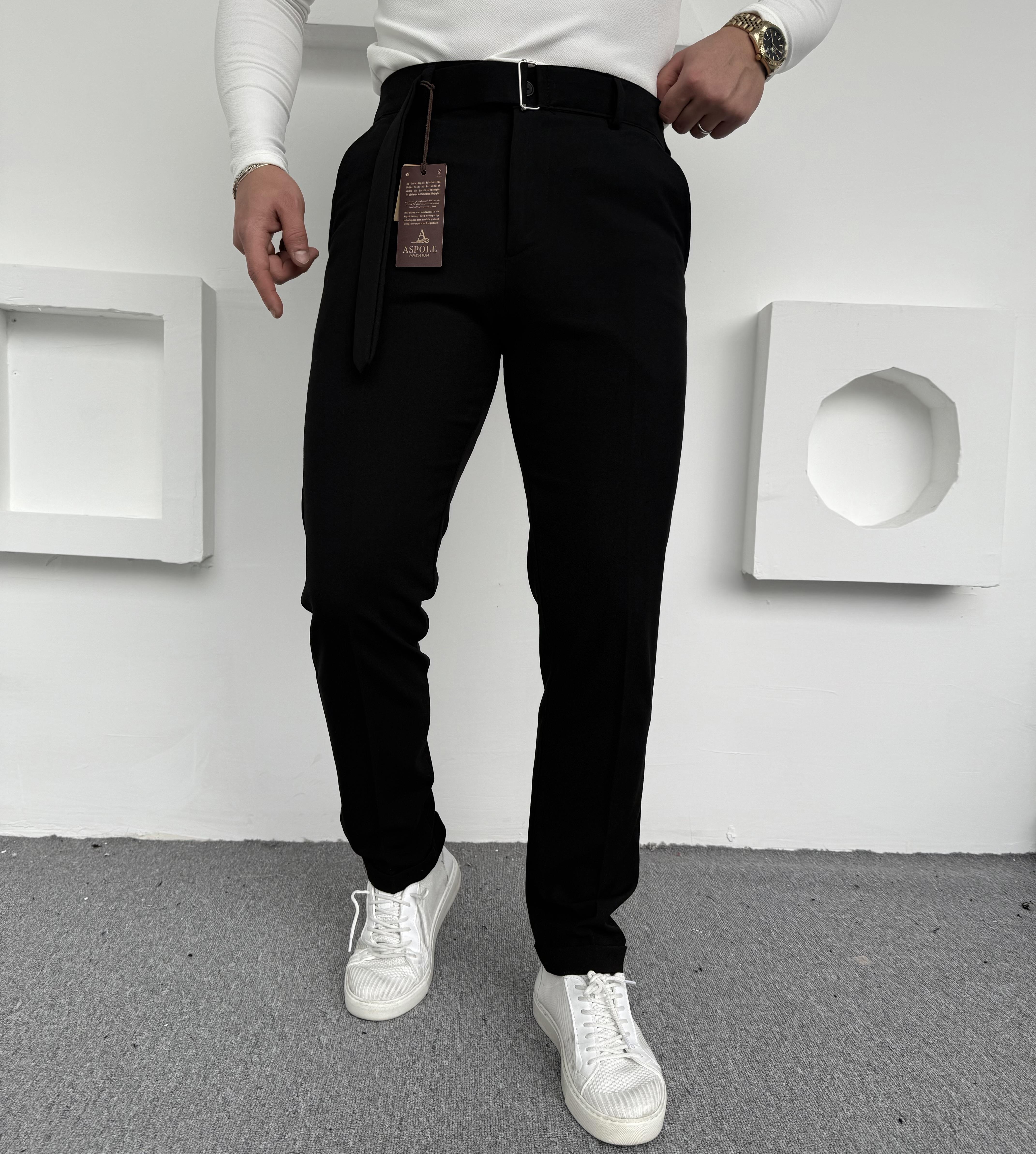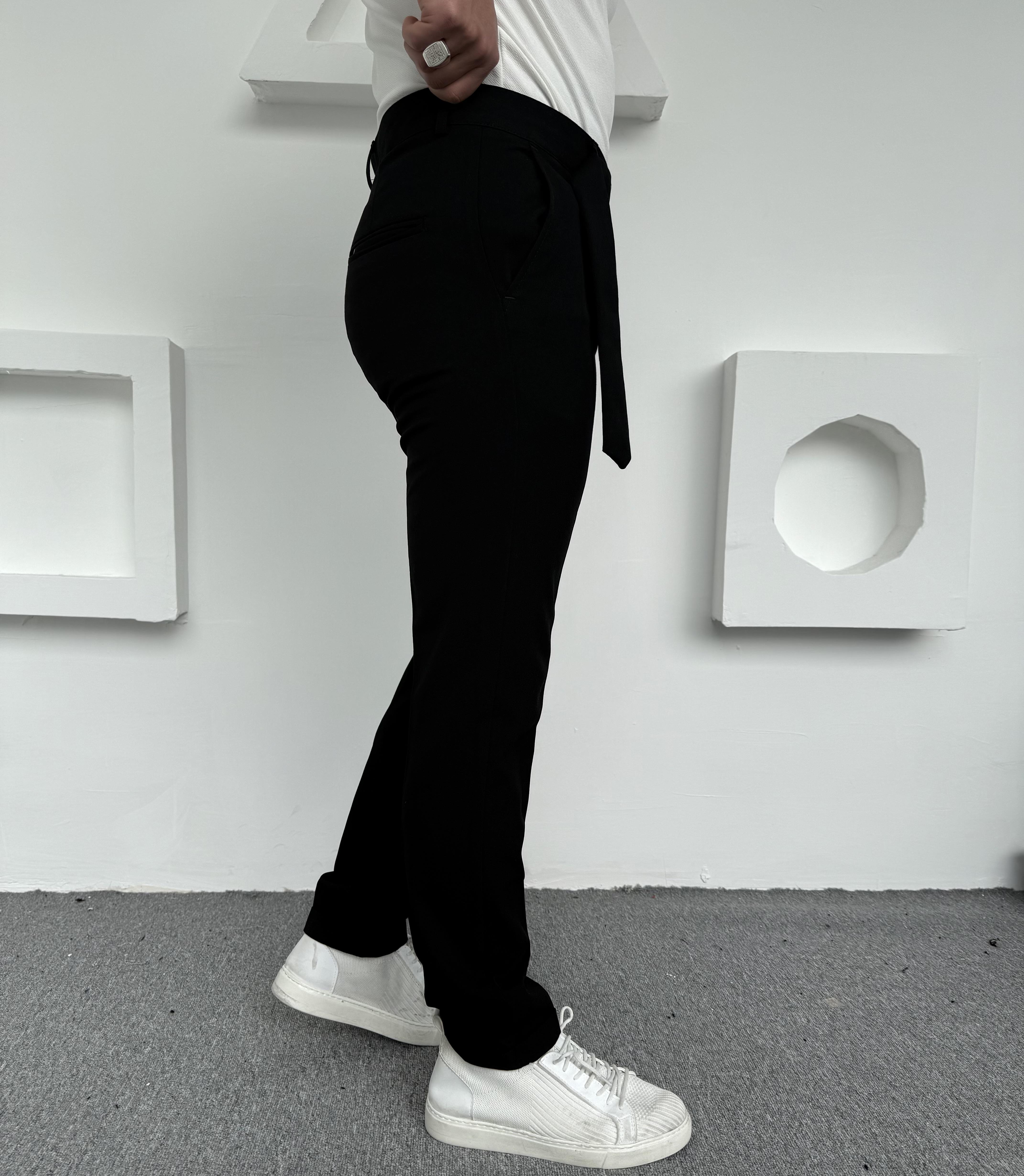 Kendinden Kemerli Premium Kumaş Pantolon Siyah