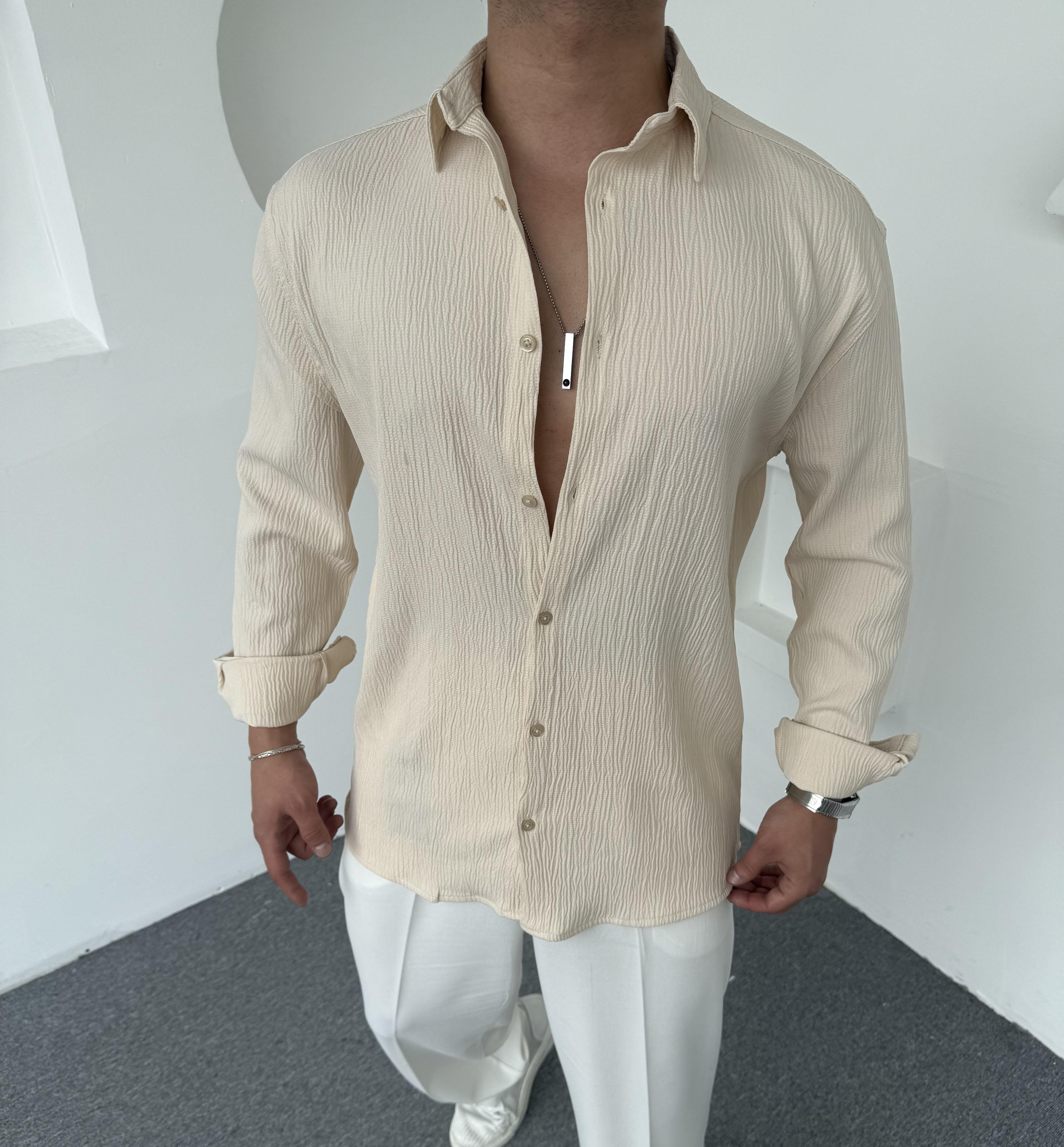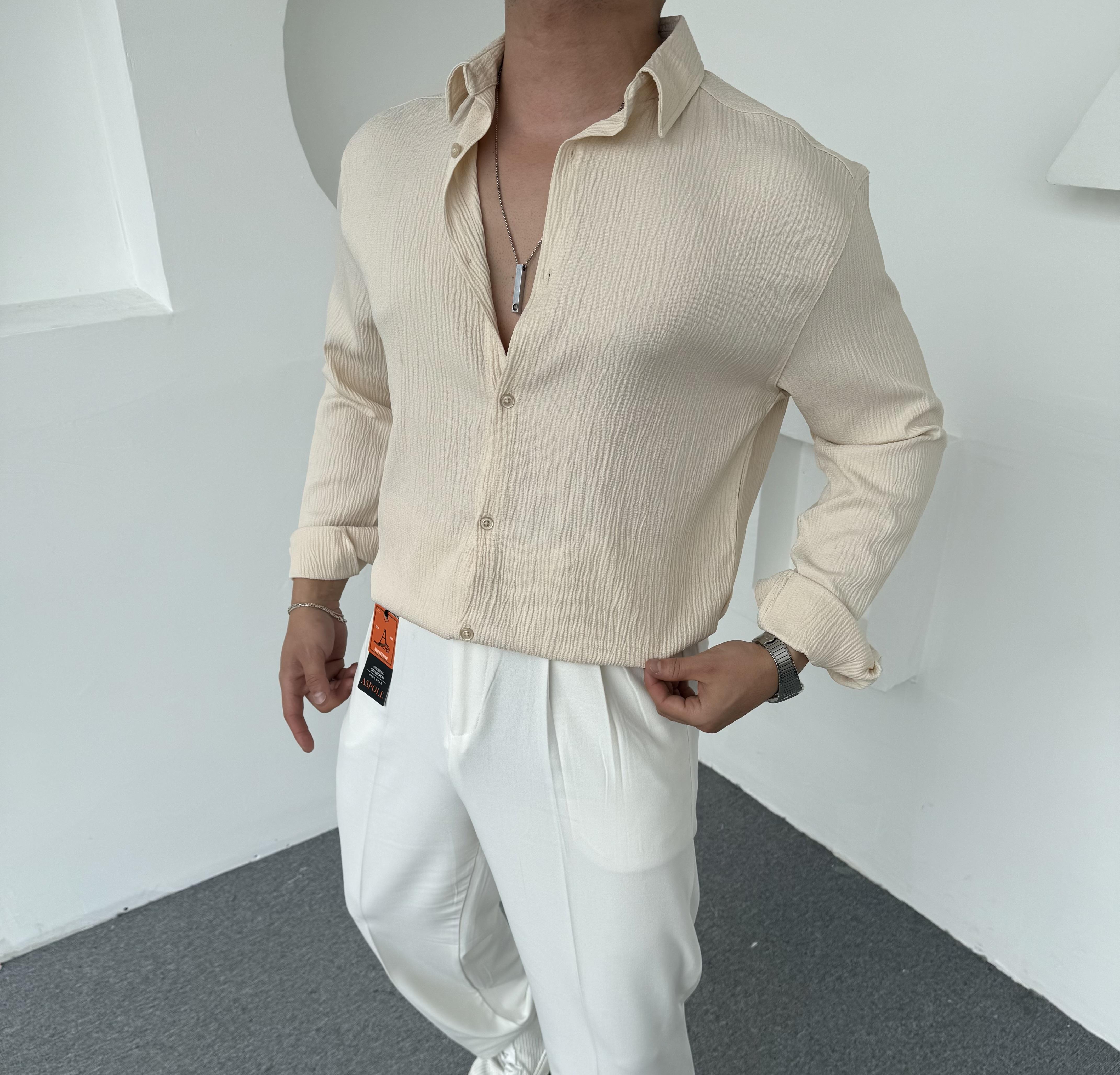 Kırinkıl Desen İthal Gömlek Krem