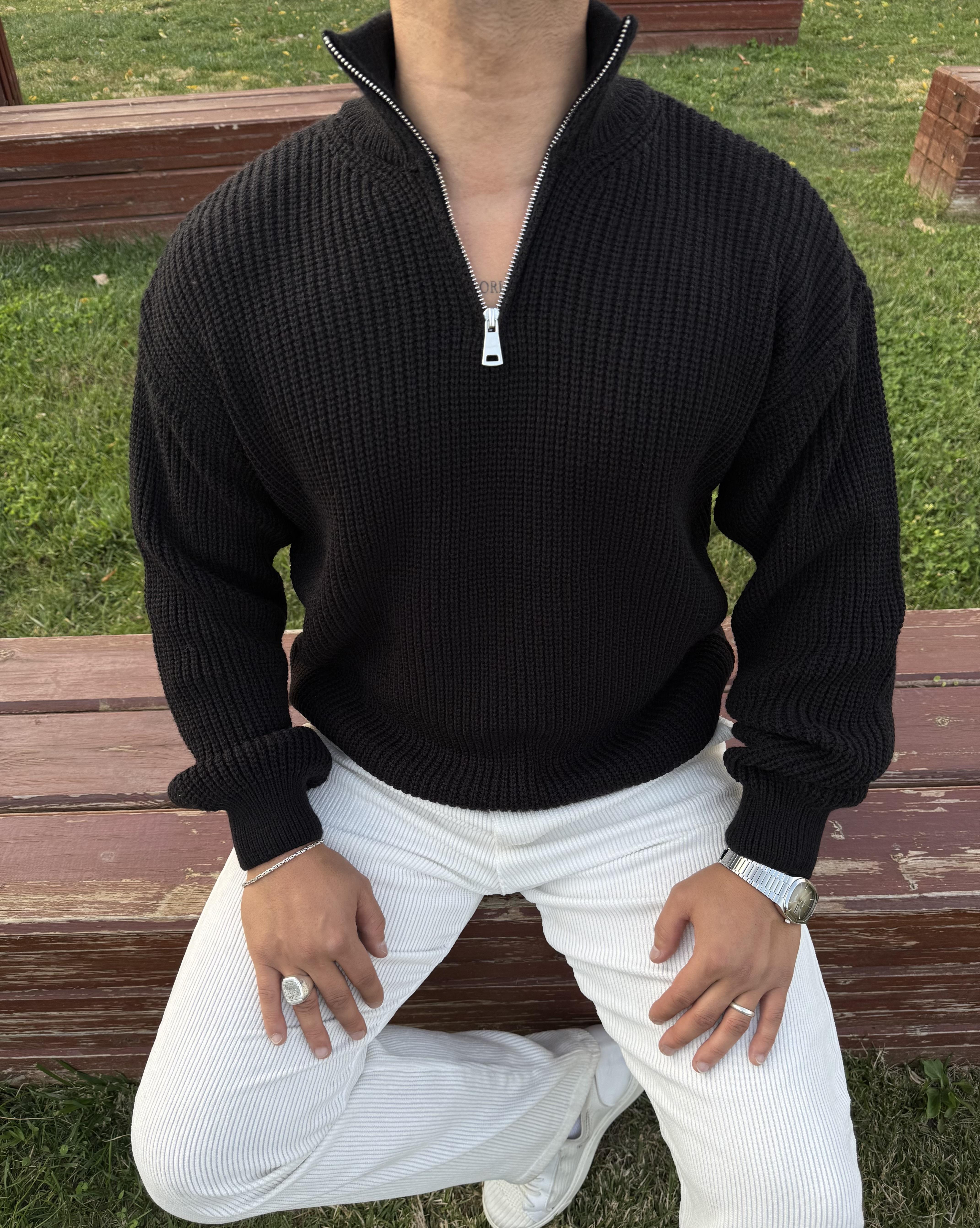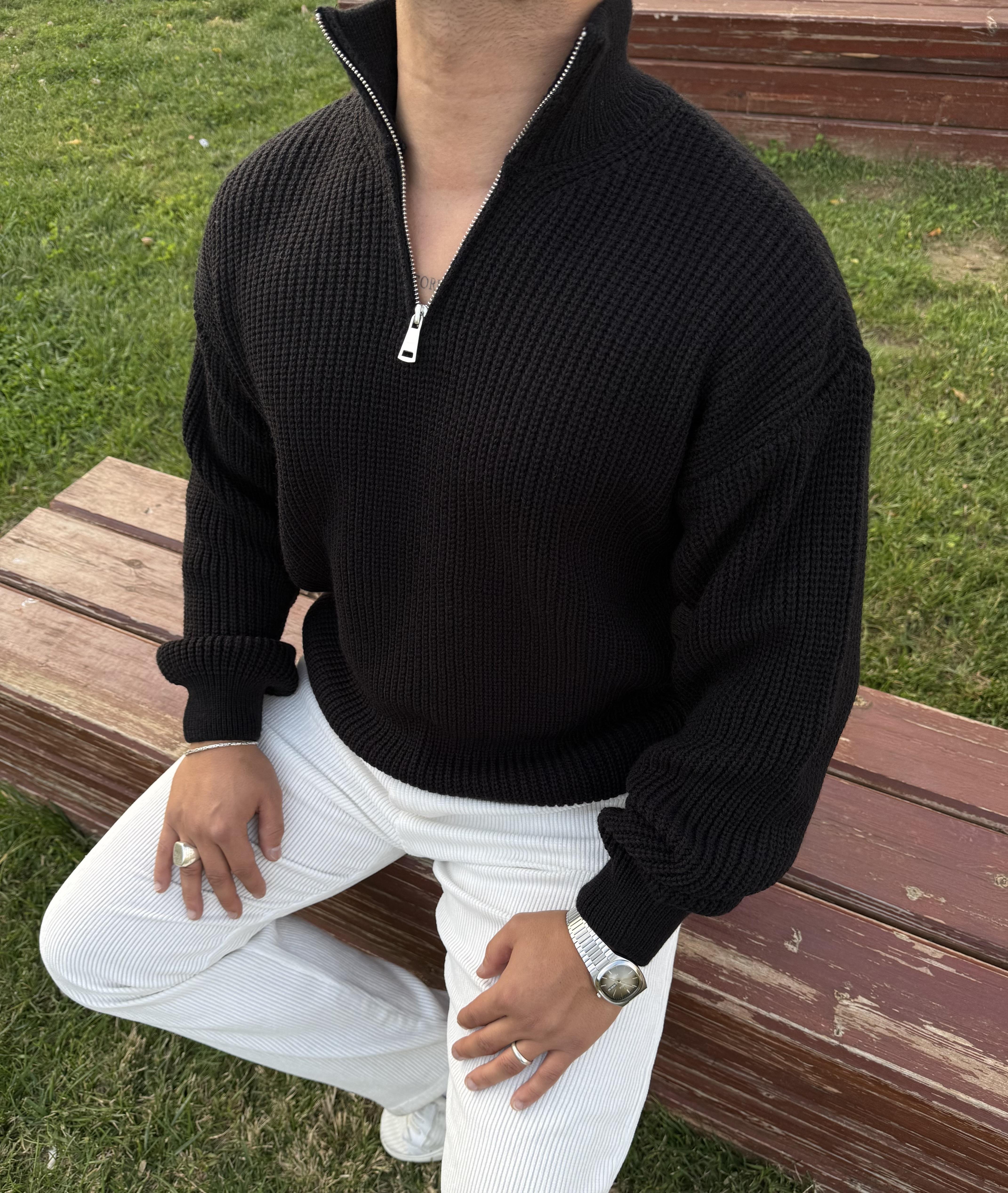 KIŞLIK PREMİUM YARIM FERMUAR TRİKO SWEATSHİRT SİYAH