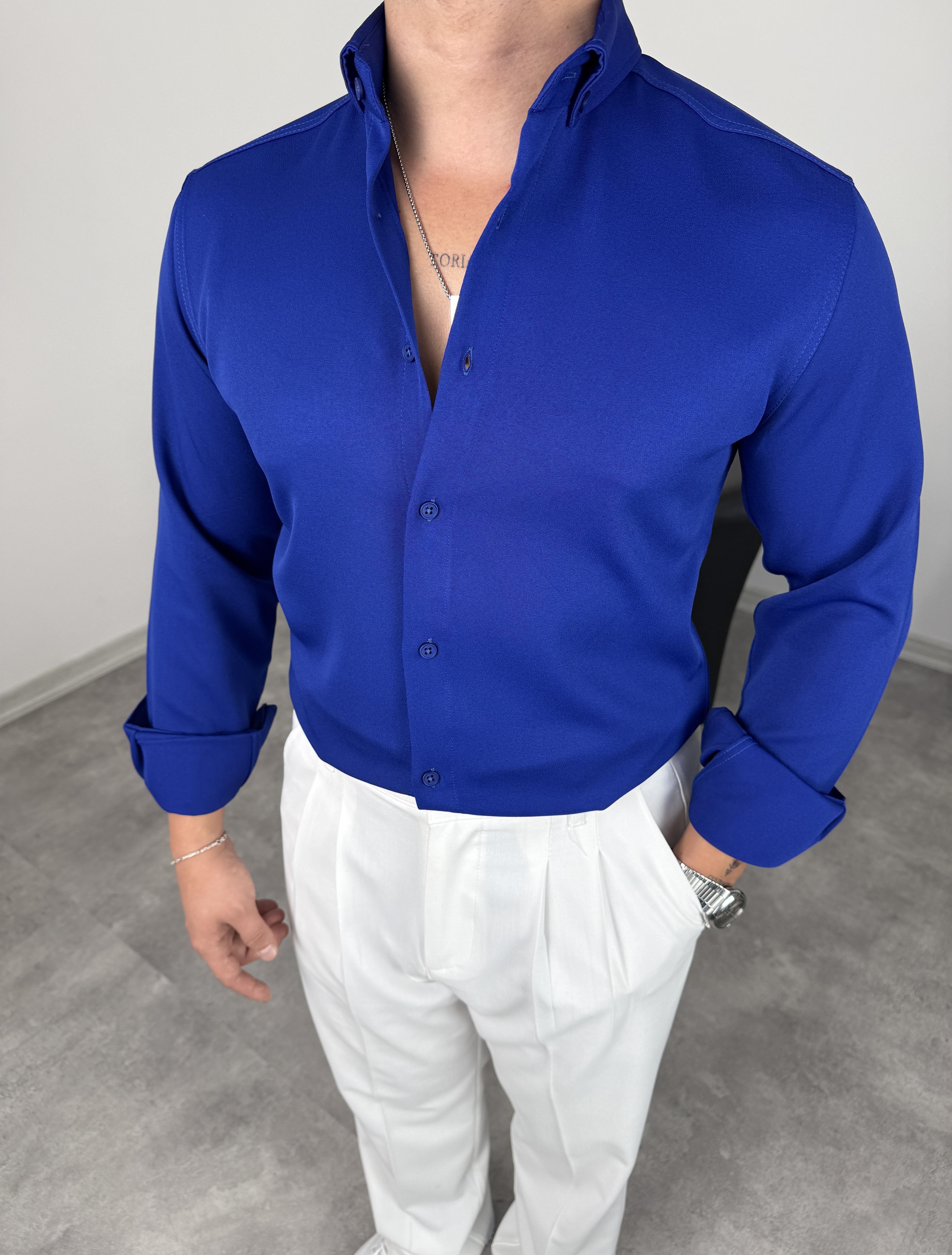 LİKRALI DABIL KUMAŞ GÖMLEK LACİVERT