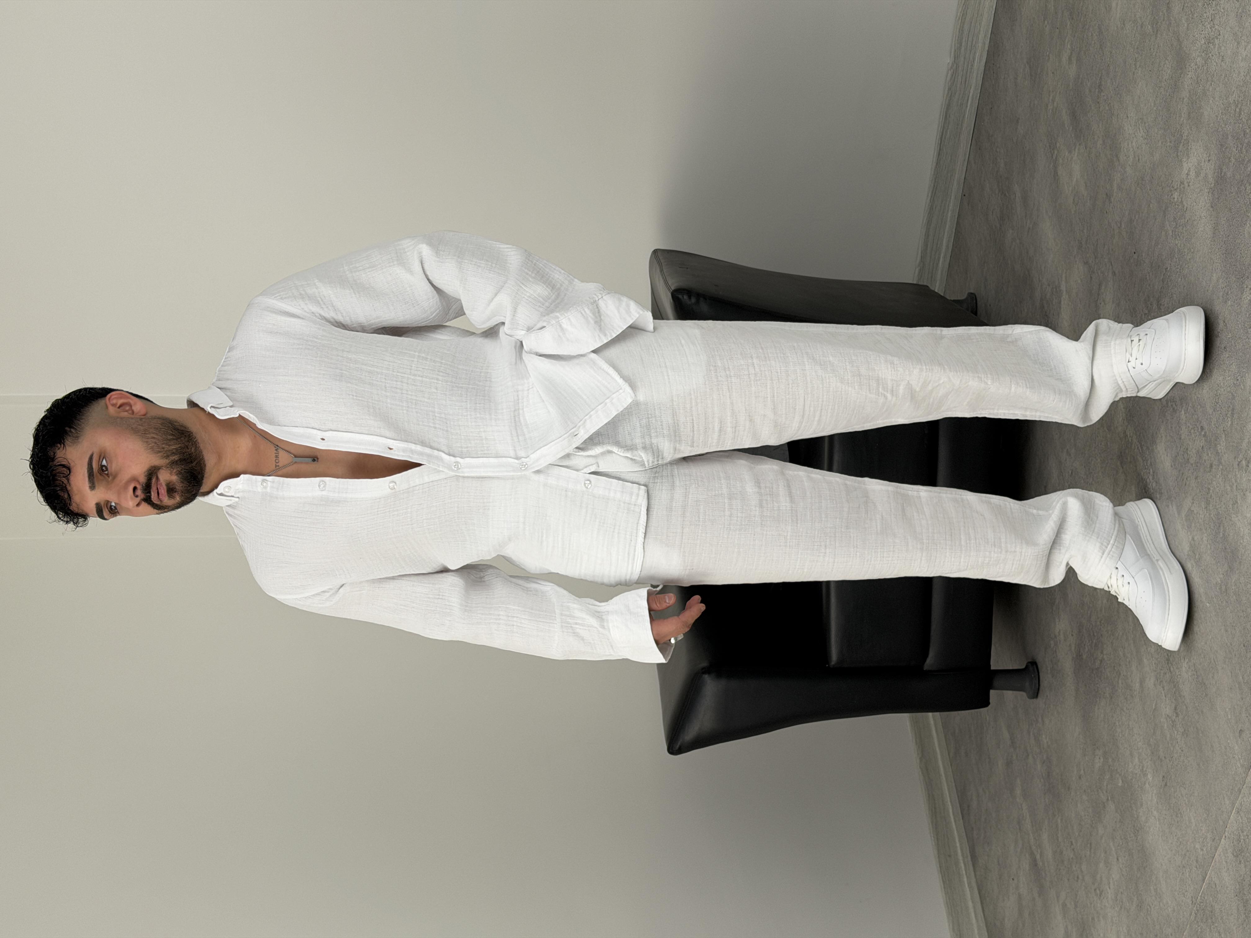 MÜSLİN KUMAŞ YIKAMALI UZUNKOL TAKIM BEYAZ