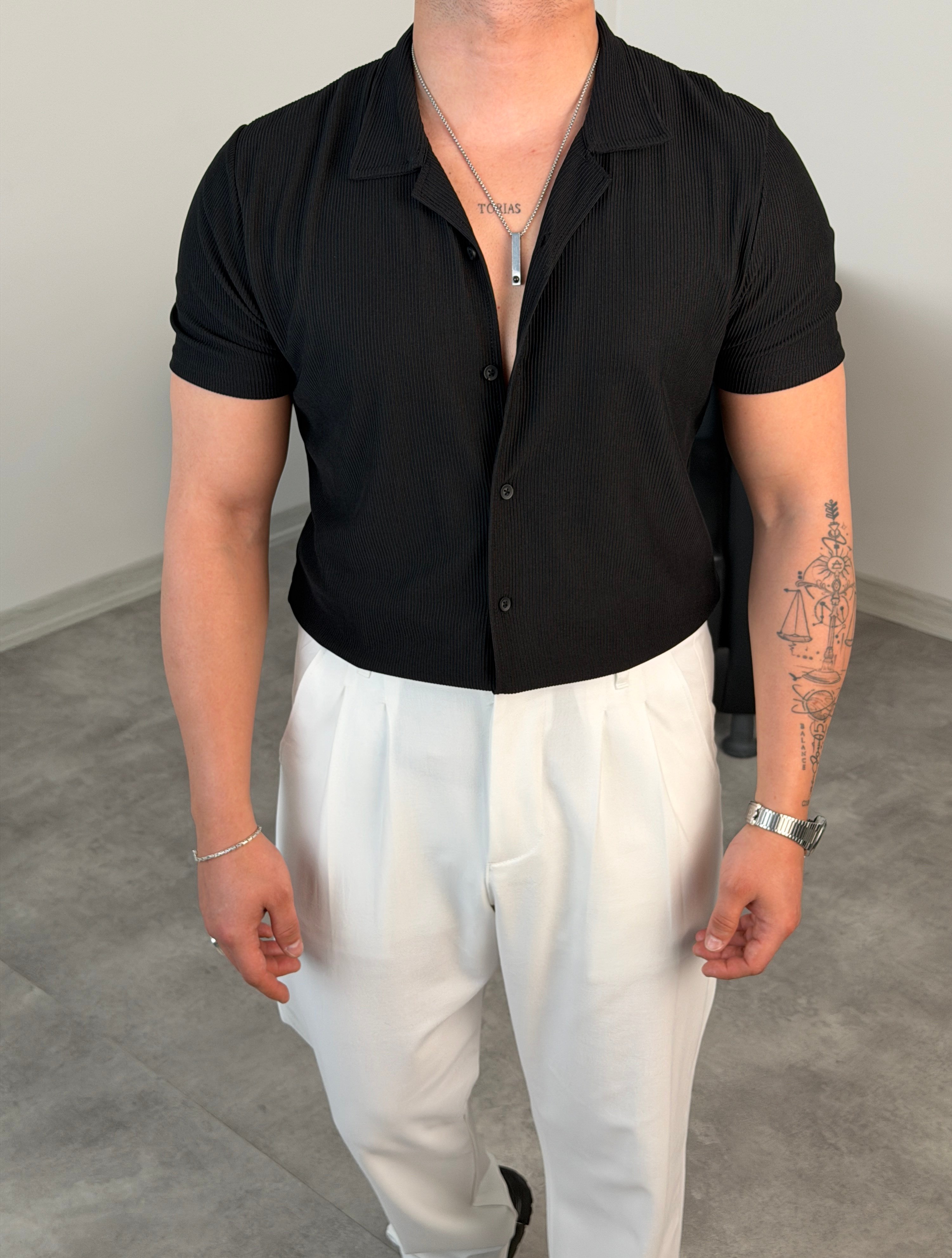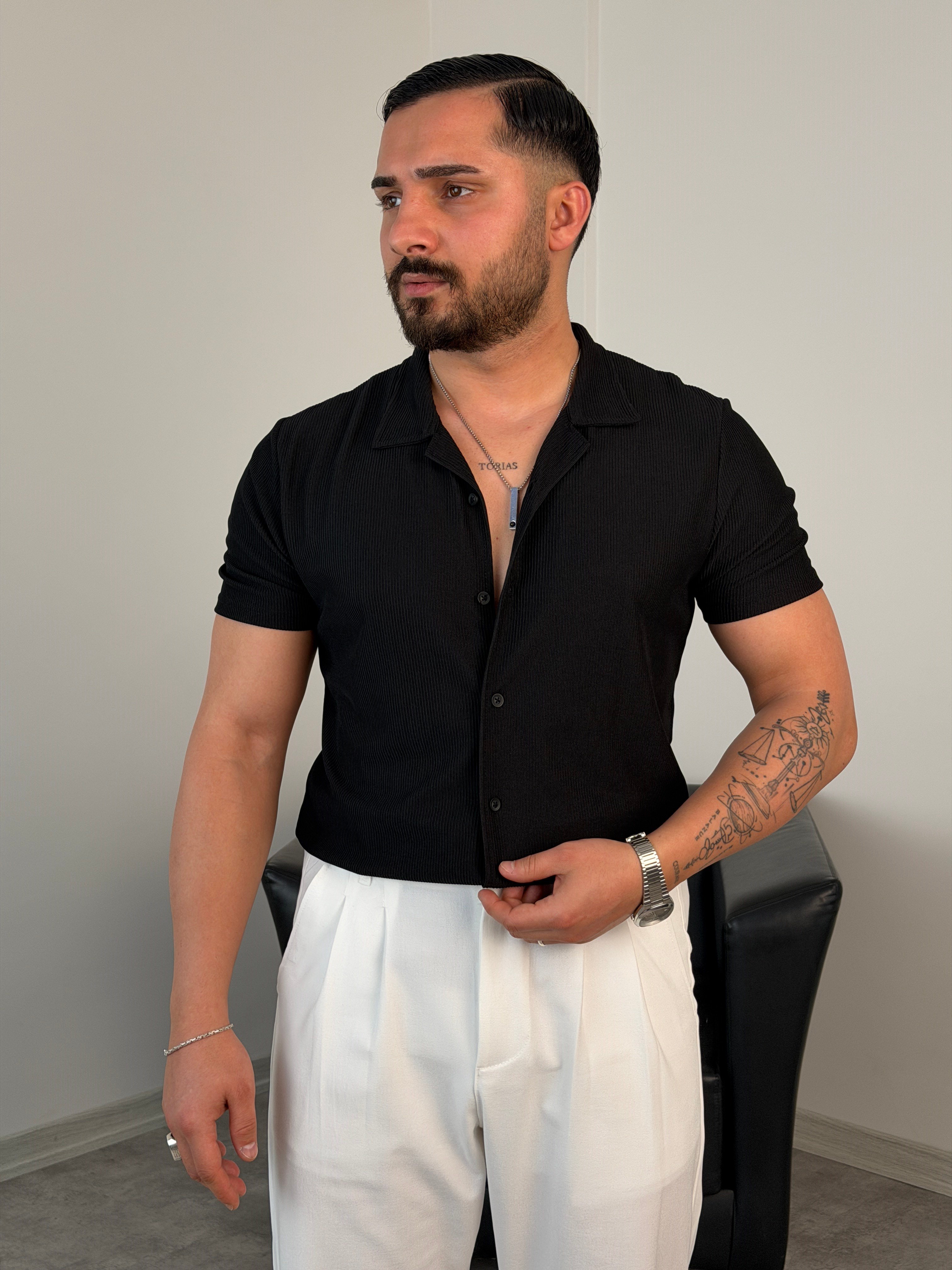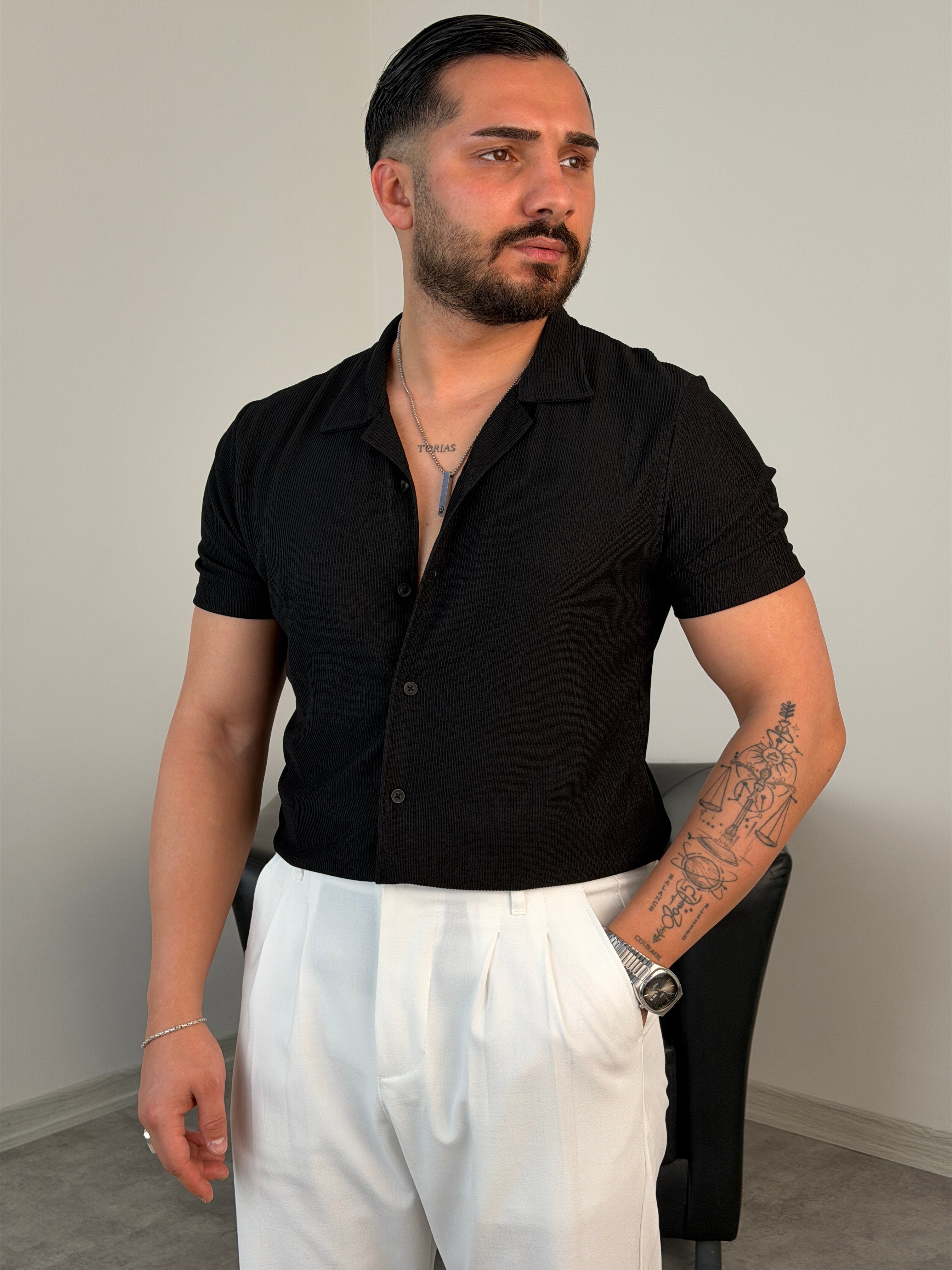 OTTOMAN KUMAŞ PAMUK ÖRME KISAKOL GÖMLEK SİYAH