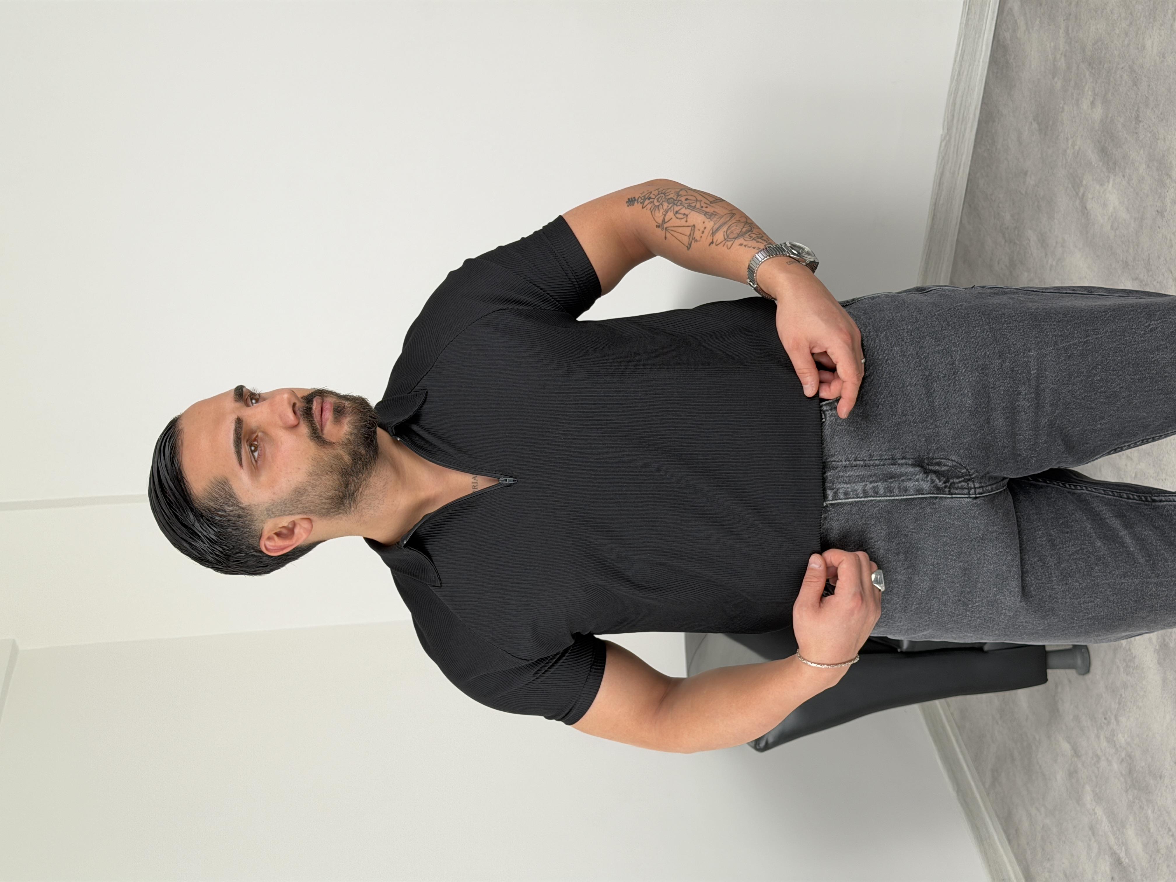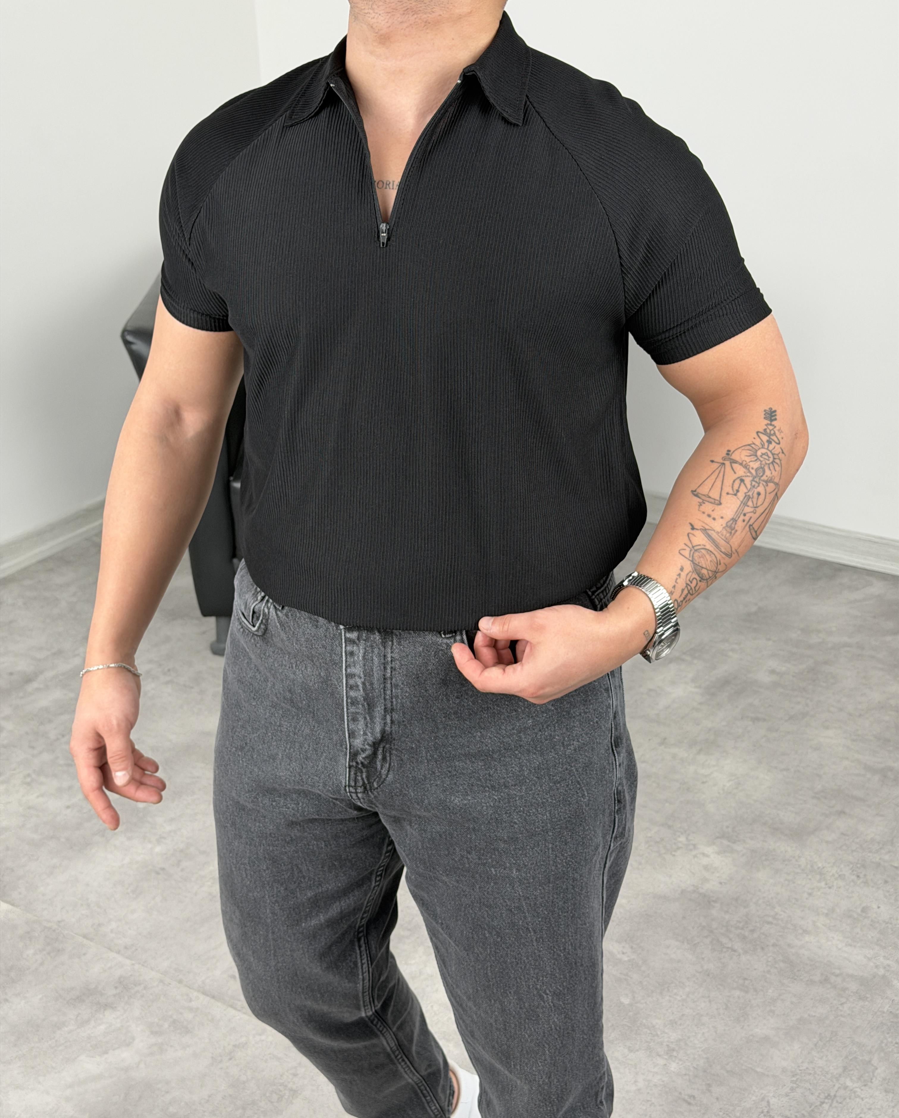 OTTOMAN YARIM FERMUAR POLO YAKA TİŞÖRT SİYAH