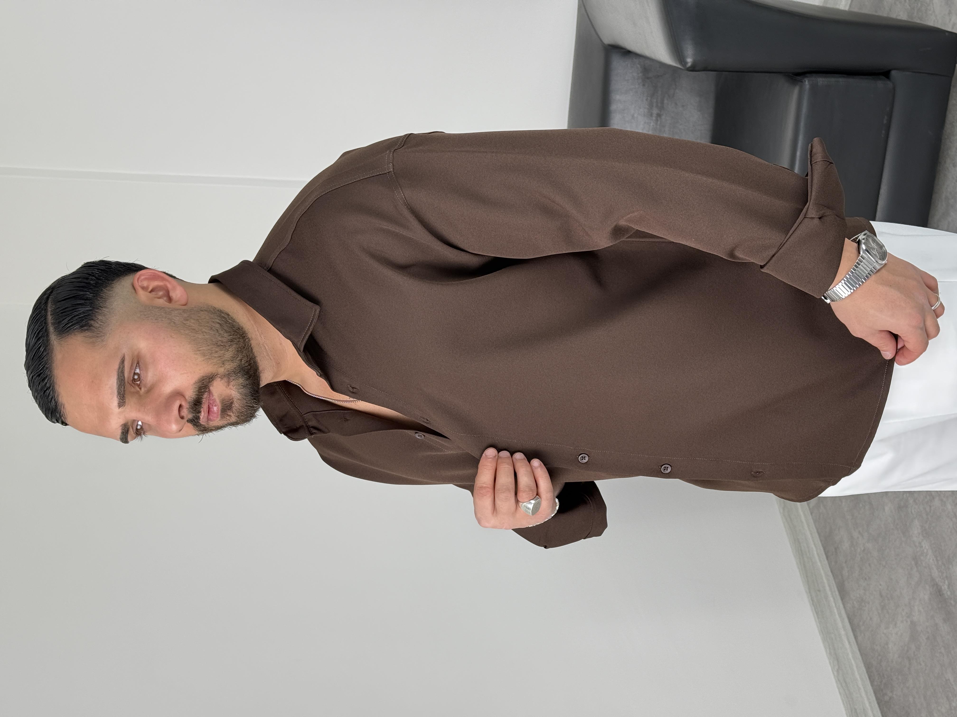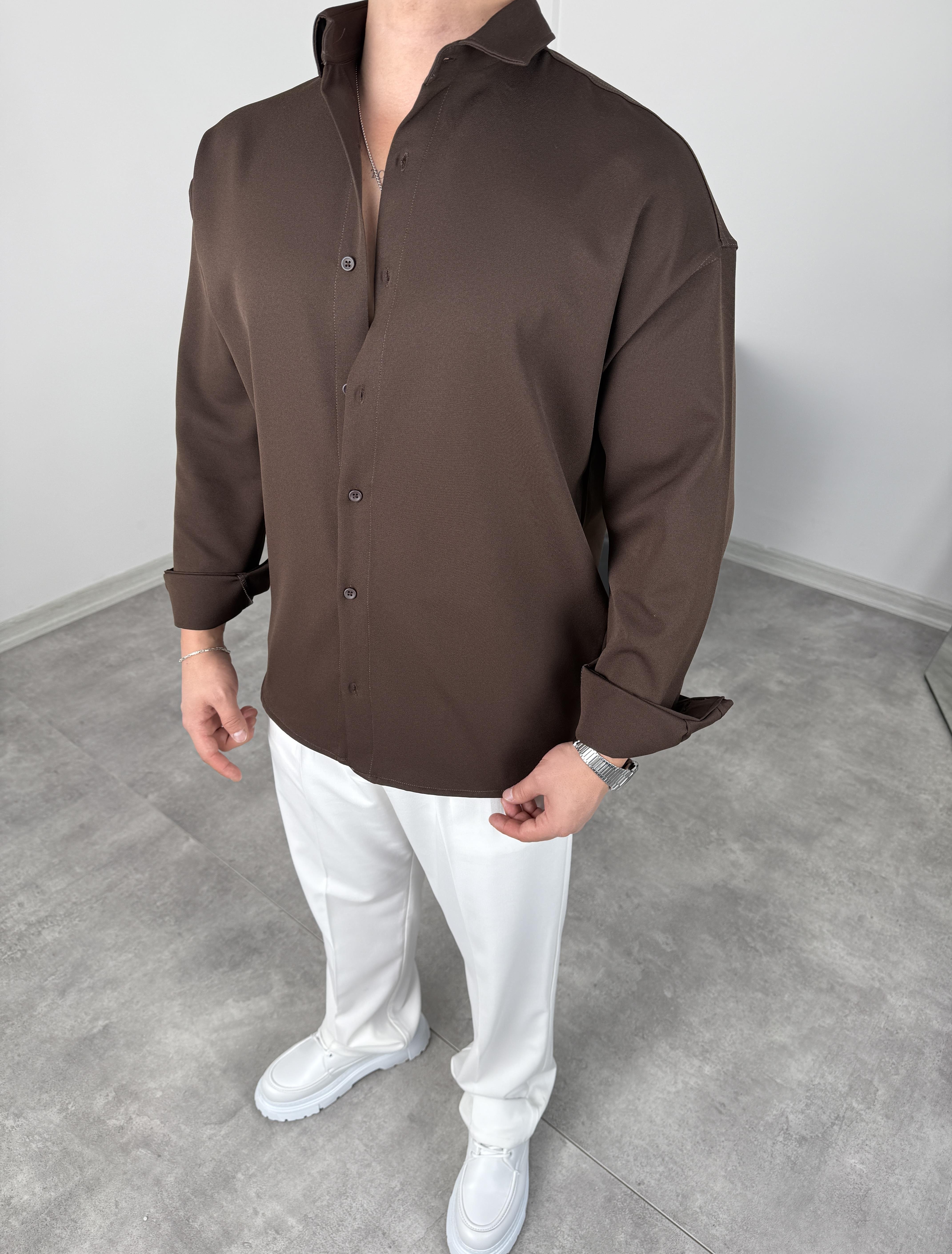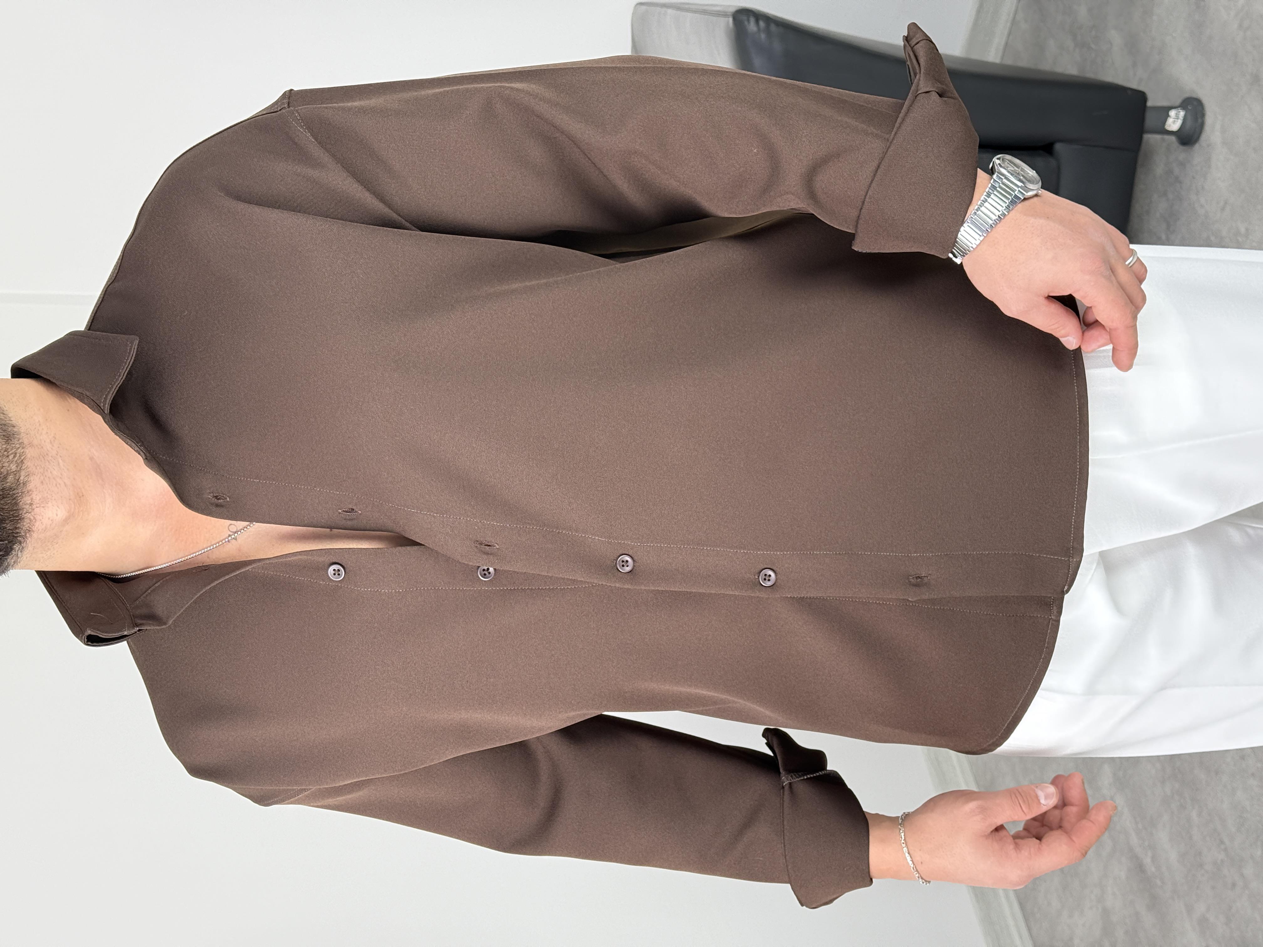 OVERSİZE DABIL İTHAL KUMAŞ GÖMLEK ACI KAHVE